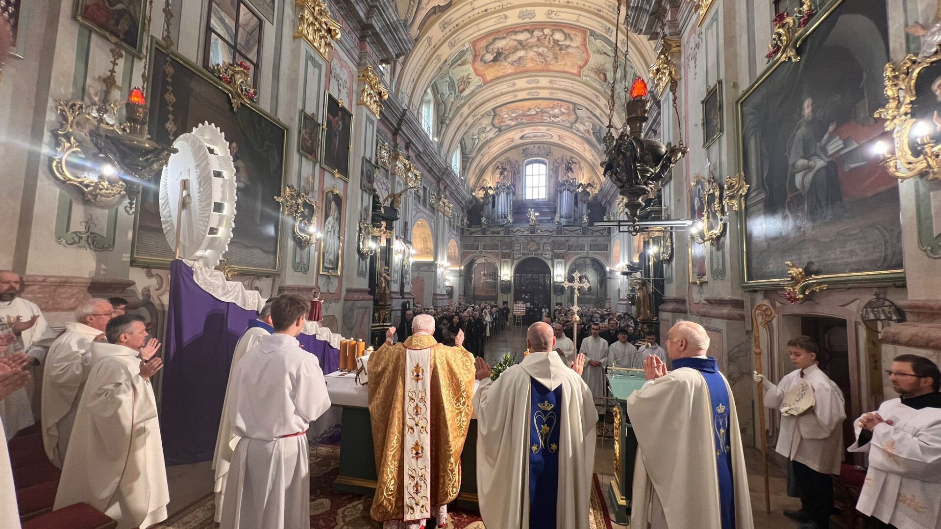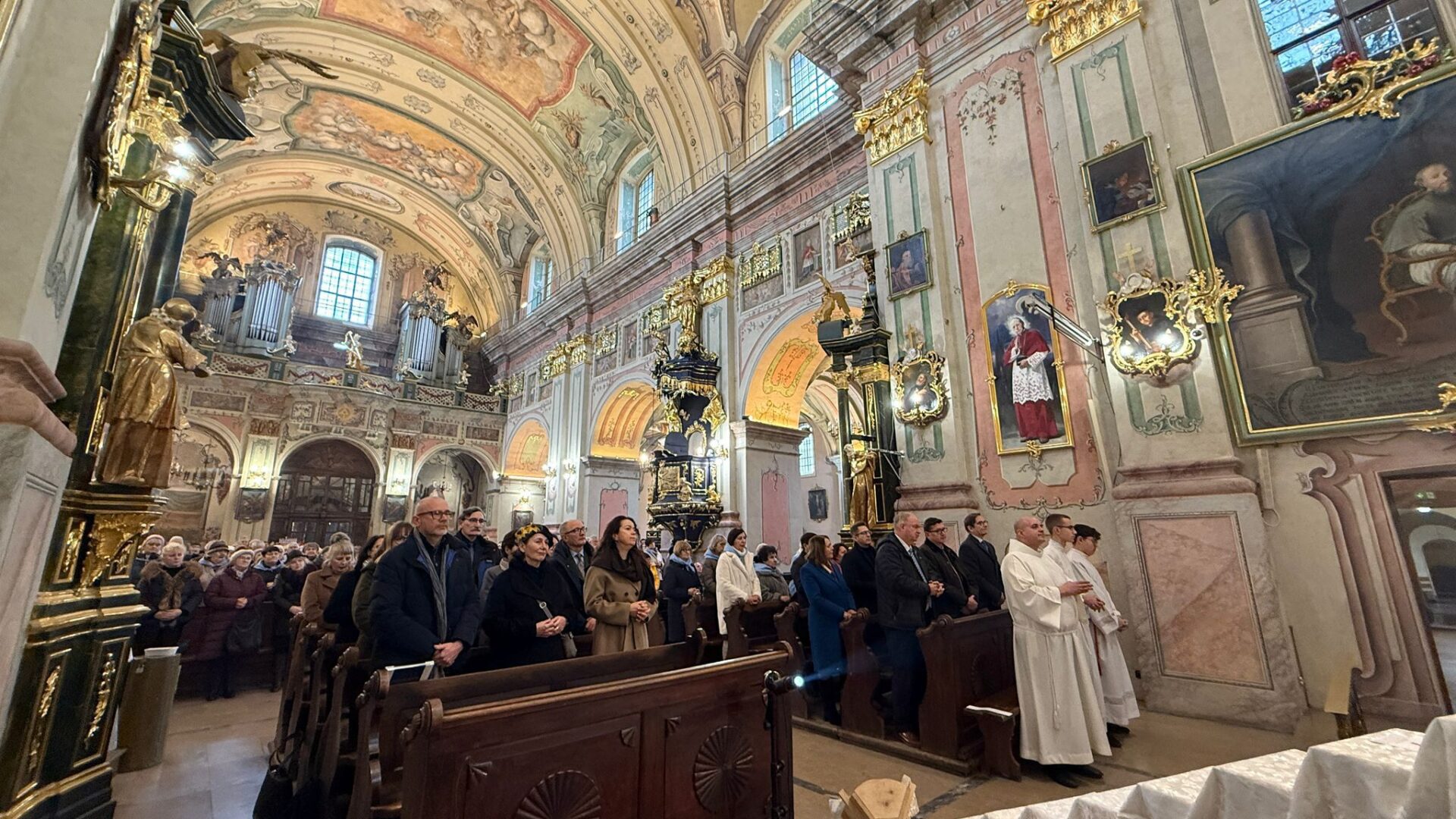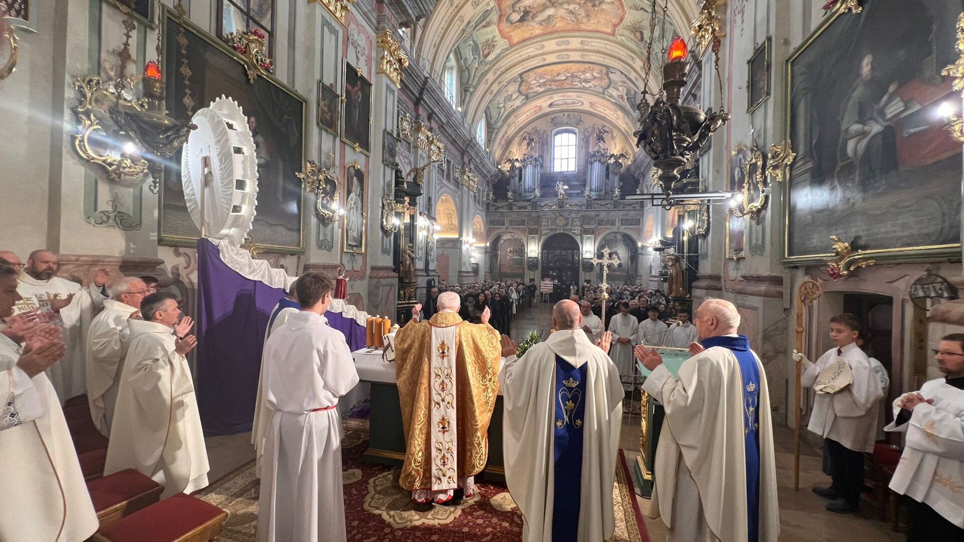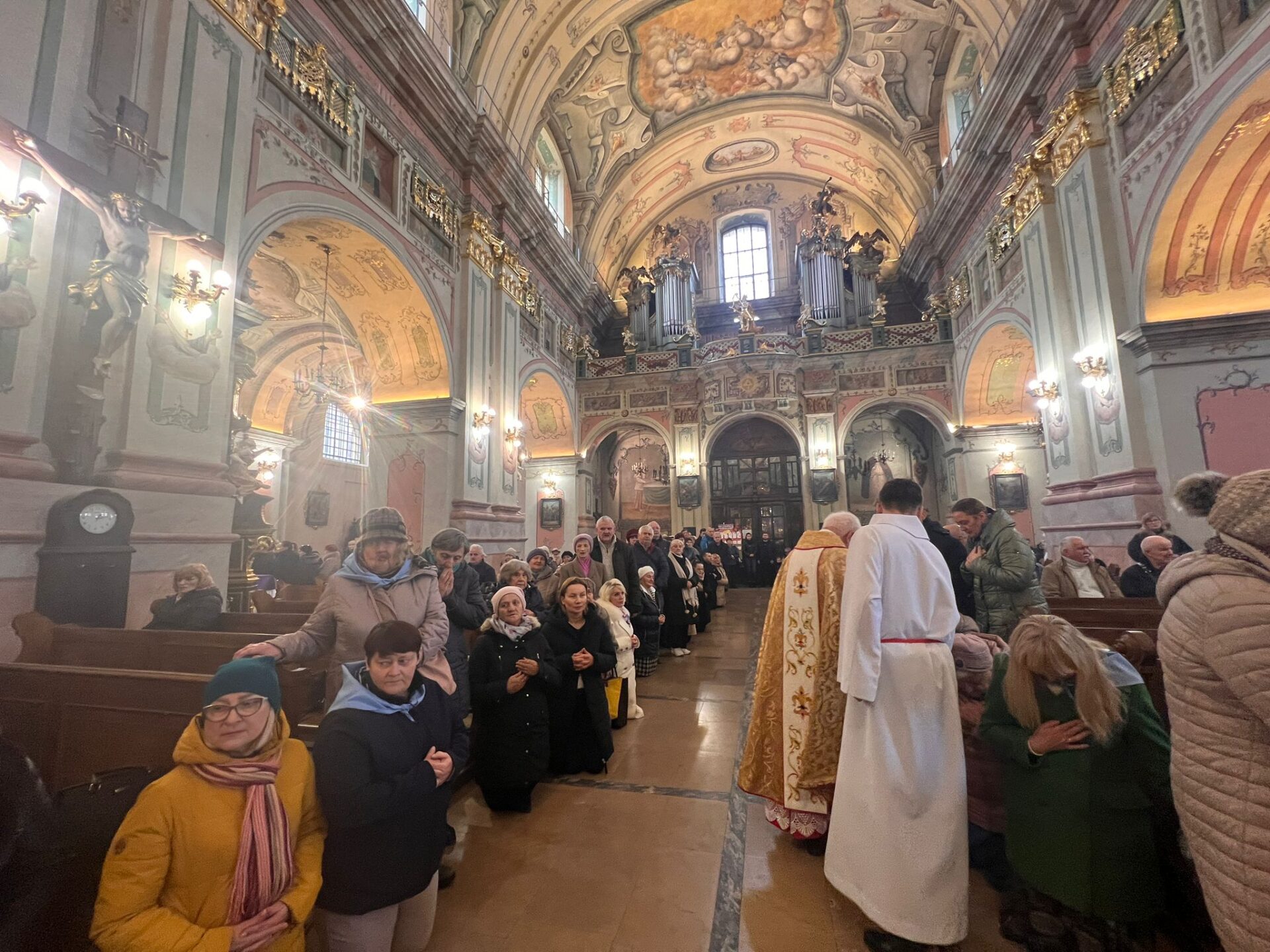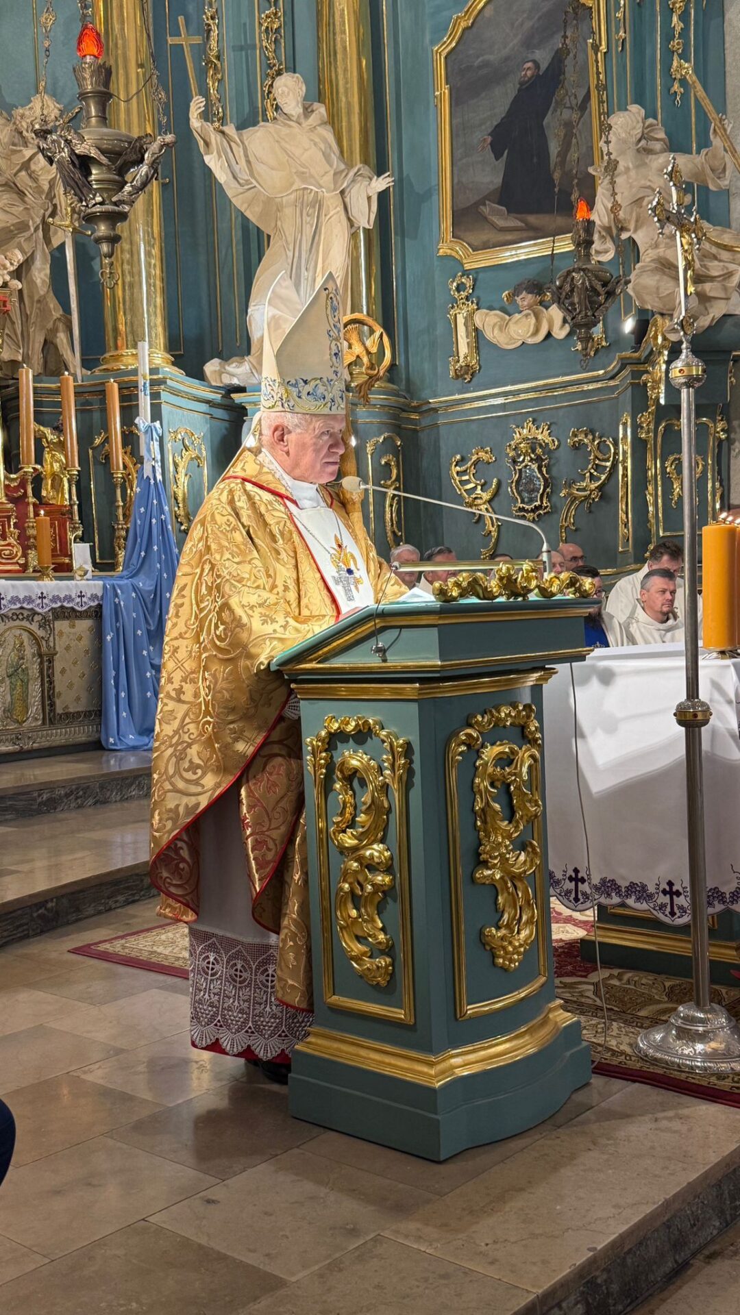 – Wszechmogący Boże, wysłuchaj naszych modlitw i spraw, abyśmy gromadzą się w tym domu wzrastali w świętości i dawali świadectwo wiary, nadziei i miłości – modlił się na początku Eucharystii metropolita przemyski i pokropił wodą święconą odnowiona polichromię zabytkowej świątyni, w której przechowywane są relikwie św. Wincentego – patrona Miasta Przemyśla.
