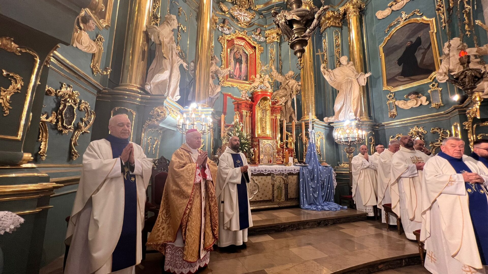 Na zakończenie w słowach wdzięczności o. Marcin Drąg, wikariusz Prowincji św. Antoniego i bł. Jakuba Strzemię Zakonu Braci mniejszych Konwentualnych, podziękował za trud i zaangażowanie w troskę o franciszkański kościół. – Wszystko ma sens, kiedy nasze życie chrześcijańskie, nasz Kościół, ten żywy, jest spójny z tym, co podziwiamy, z tym czym się zachwycamy – powiedział zakonnik. – Życzę wam wszystkim i sobie, byśmy, podziwiając to piękno, wierzyli w to, że to co widzimy choćby na tym sklepieniu wydarza się na ołtarzu. By te piękne polichromie, ołtarze, te wszystkie detale prowadziły nas do sensu Liturgii, czyli do tajemnicy ołtarza, tajemnicy sakramentów. Taka jest droga i za każdym razem, kiedy będziemy wchodzili do tej świątyni, na taką drogę wchodźmy – dodał.