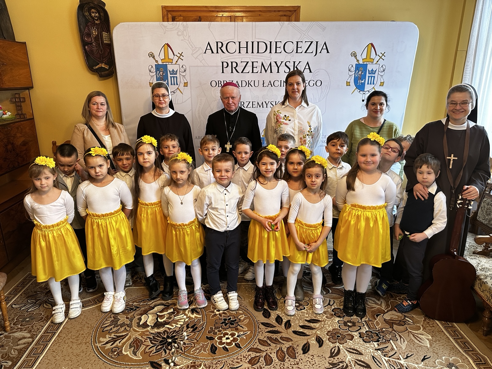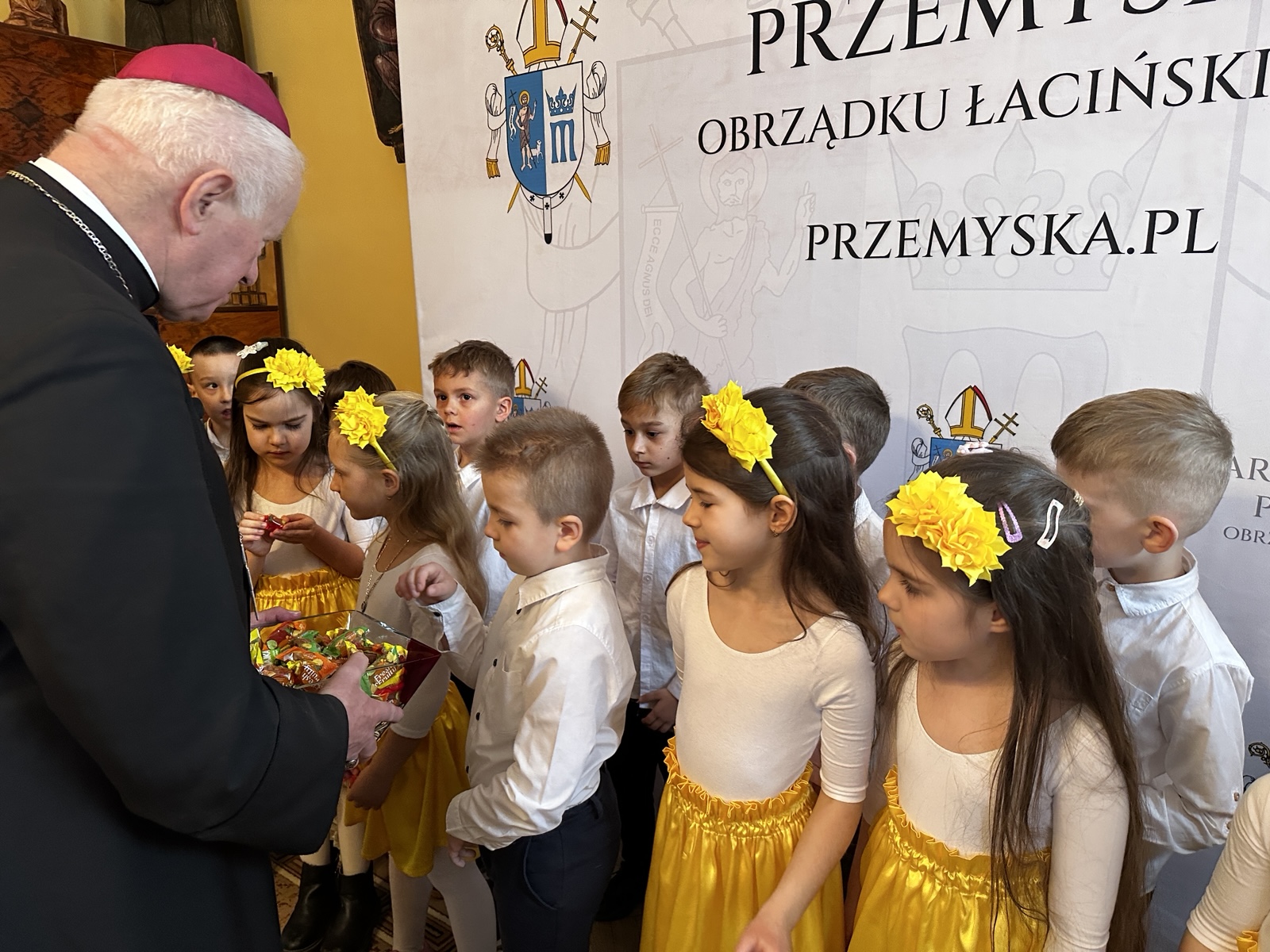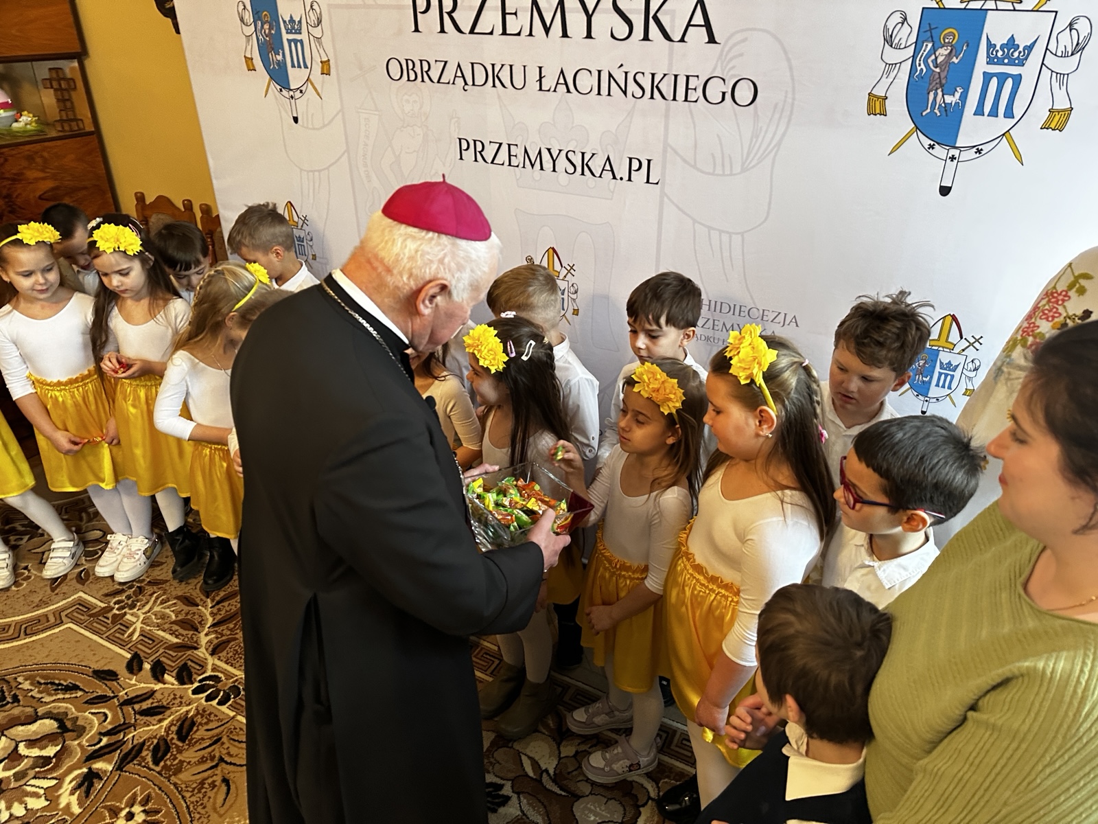 Tradycyjnie przed świętami wielkanocnymi dzieci z Publicznego Przedszkola Zgromadzenia Sióstr Felicjanek w Przemyślu przyszły z życzeniami do Metropolity Przemyskiego. – Módlmy się o pokój i o to, żeby na całym świecie była zgoda, bo Pan Jezus przyniósł ze sobą właśnie pokój, radość i miłość – powiedział abp Adam Szal. Bardzo radosne spotkanie było przepełnione śpiewem, wierszykami i życzeniami.