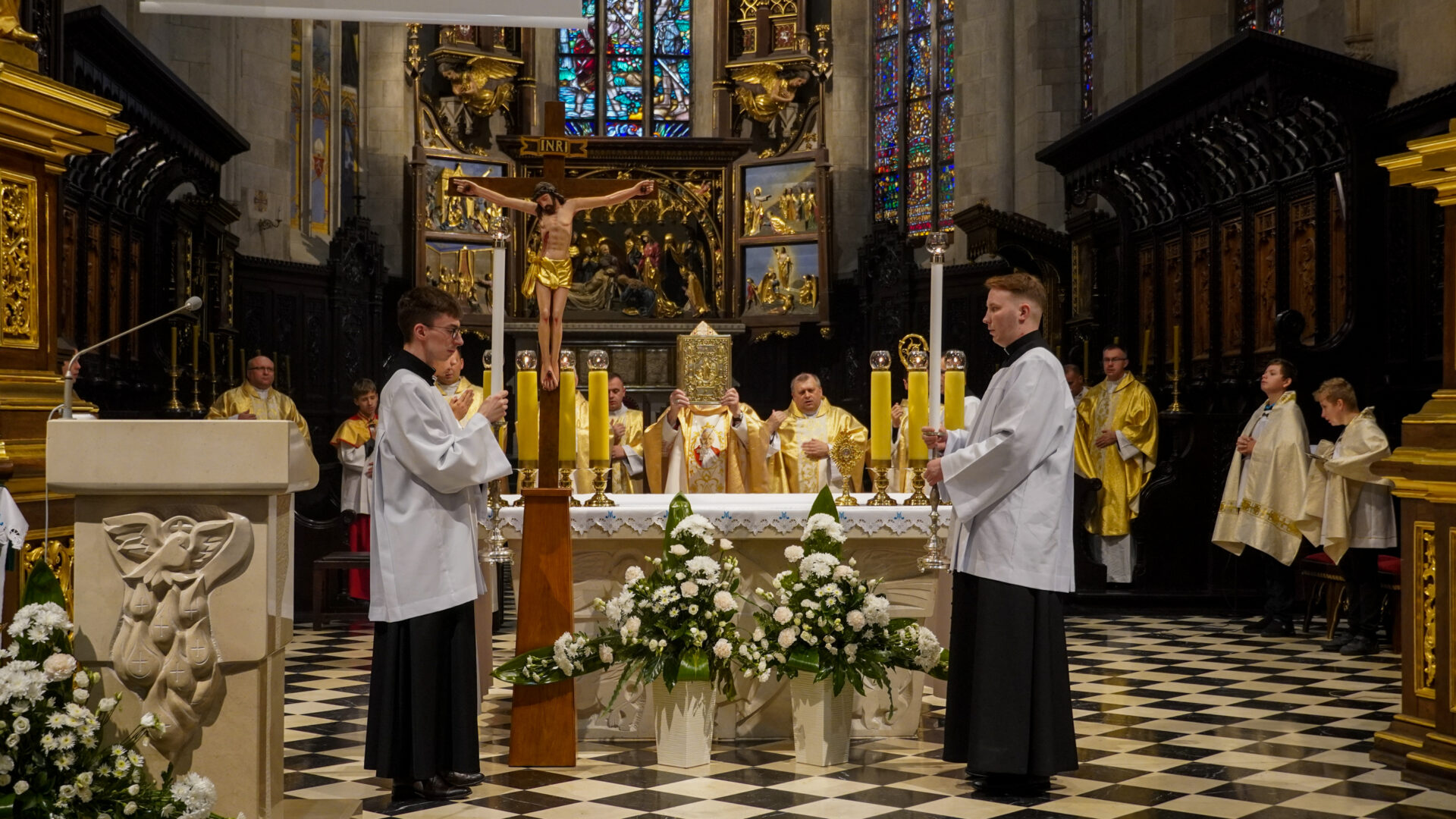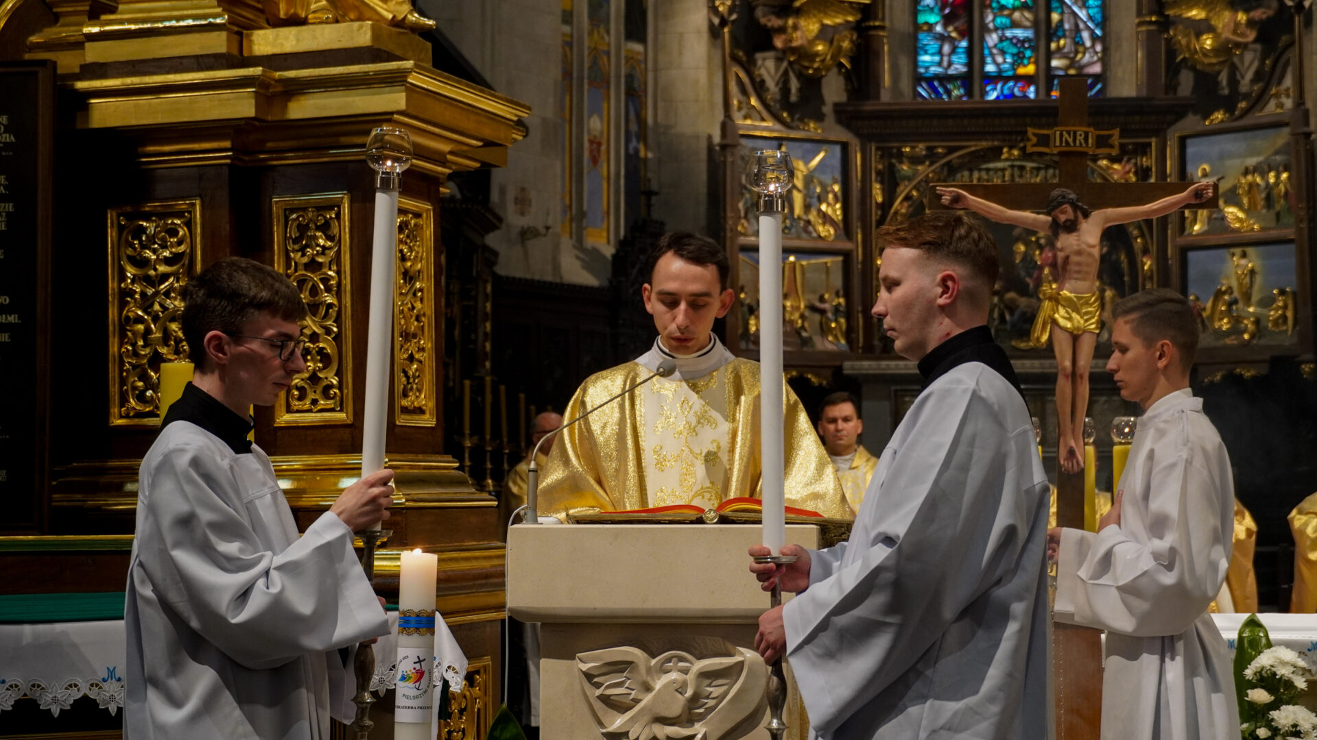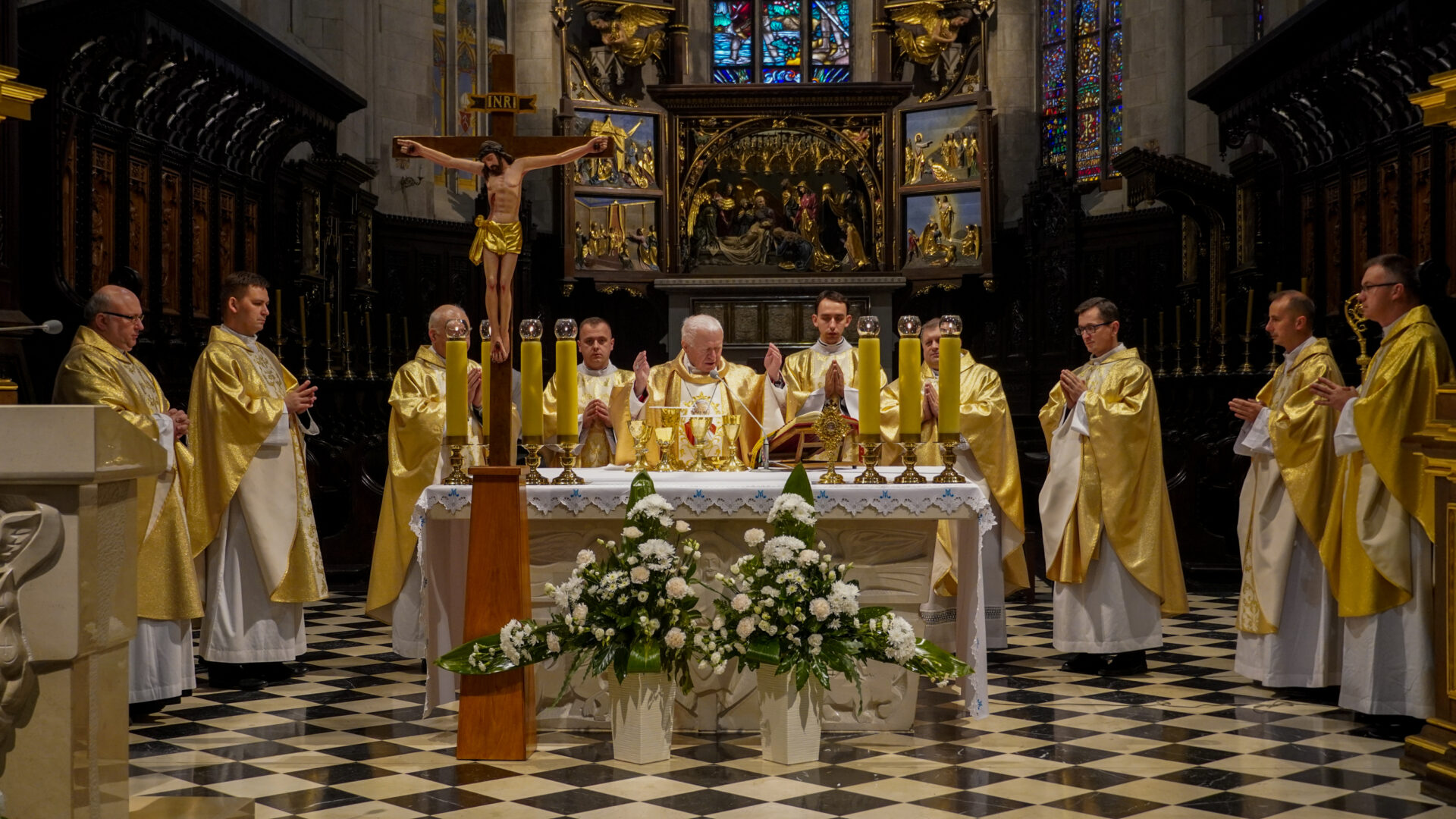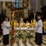 Uroczystej Eucharystii o godz. 11:30 przewodniczył abp Adam Szal. Czynnie w oprawę liturgiczną modlitwy włączyli się alumni Wyższego Seminarium Duchownego i przedstawiciele stypendystów Fundacji „Dzieło Nowego Tysiąclecia”, którzy pochodzą z terenu archidiecezji przemyskiej, a na co dzień korzystają ze wsparcia dla zdolnej młodzieży pochodzącej z ubogich rodzin.