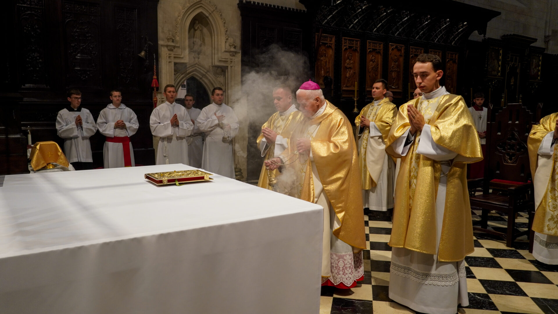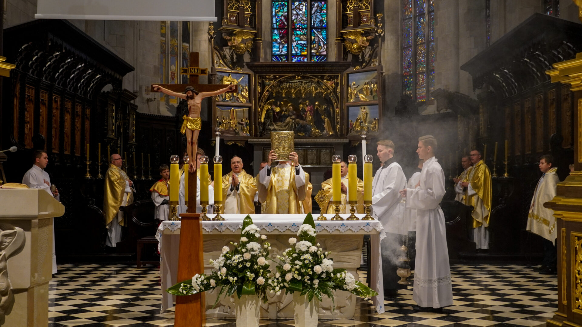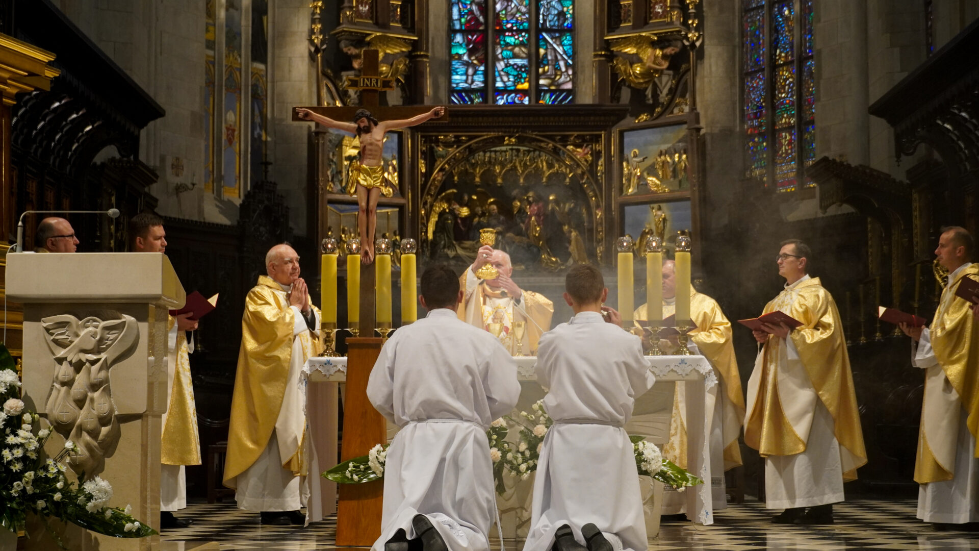Uroczystej Eucharystii o godz. 11:30 przewodniczył abp Adam Szal. Czynnie w oprawę liturgiczną modlitwy włączyli się alumni Wyższego Seminarium Duchownego i przedstawiciele stypendystów Fundacji „Dzieło Nowego Tysiąclecia”, którzy pochodzą z terenu archidiecezji przemyskiej, a na co dzień korzystają ze wsparcia dla zdolnej młodzieży pochodzącej z ubogich rodzin.