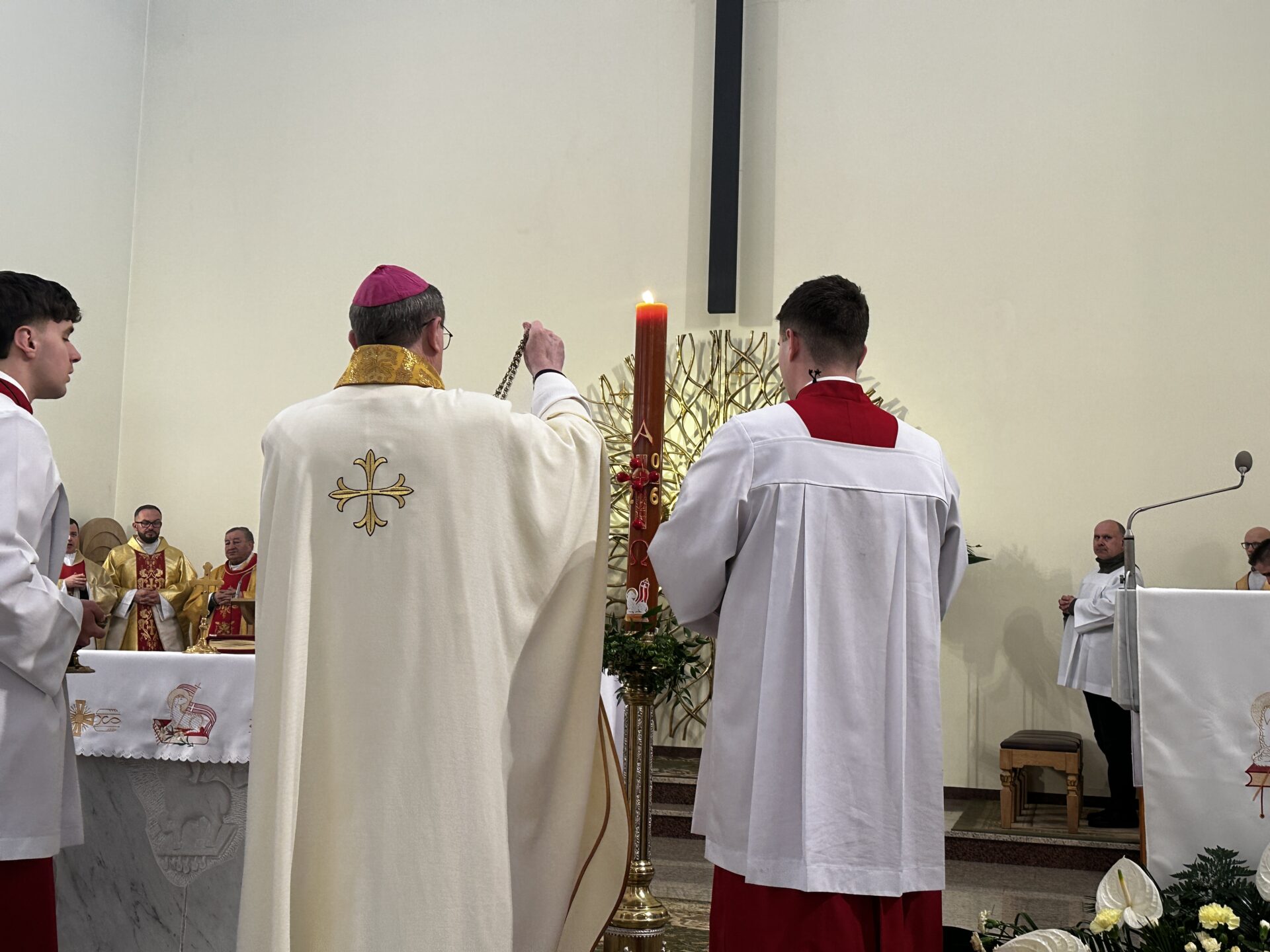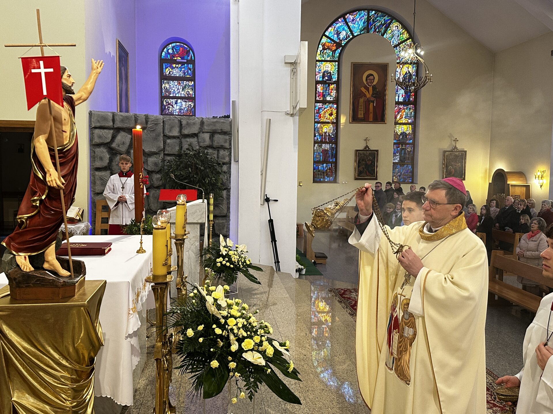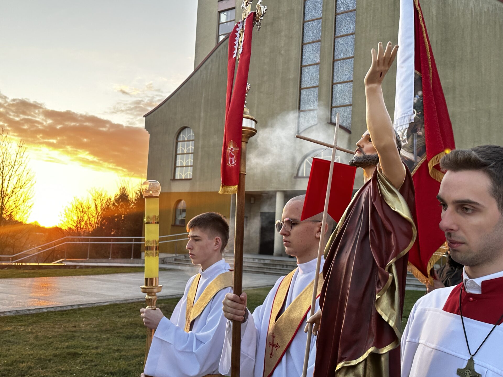 W Niedzielę Zmartwychwstania, 5 kwietnia 2026 r., bp Krzysztof Chudzio przewodniczył procesji rezurekcyjnej i porannej Eucharystii w parafii pw. św. Benedykta, Cyryla i Metodego w Przemyślu (osiedle Kazanów).