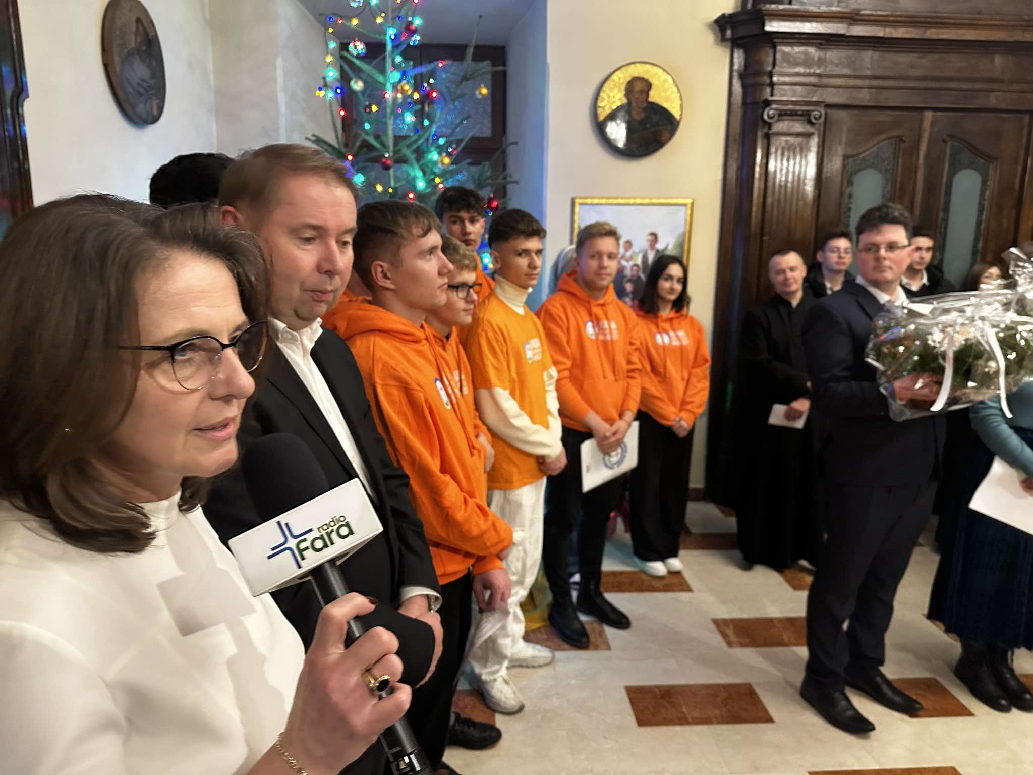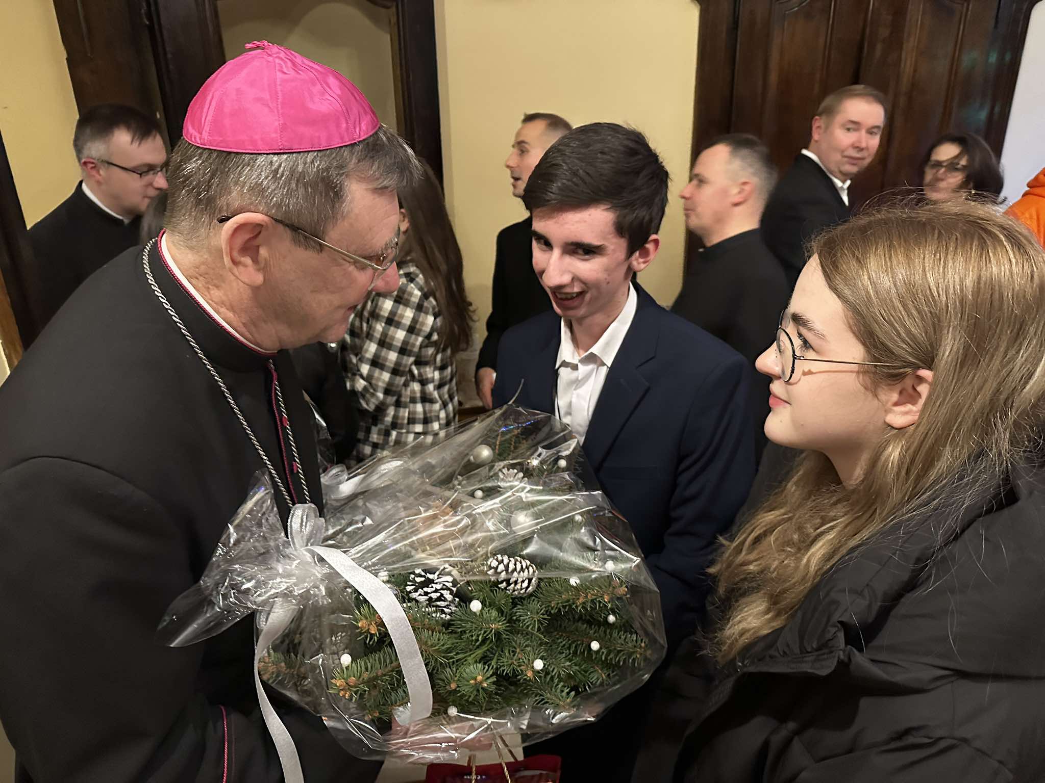 – Pochylając się nad Tajemnicą Słowa, które „stało się Ciałem i zamieszkało między nami” pragniemy w imieniu wszystkich młodych archidiecezji przemyskiej oraz reprezentujących tu kapłanów z ruchów, stowarzyszeń i wspólnot, złożyć najserdeczniejsze życzenia bożonarodzeniowe. Niech radość będzie najważniejszym motywem świętowania tegorocznego narodzenia Pana Jezusa, a w szczególności w liturgii w naszych świątyniach, gdy prawdziwy Bóg będzie się rodził dla nas w Eucharystii – mówił Sylwia Cwynar z Ruchu Czystych Serc. – W tych świątecznych dniach pamiętamy o naszej modlitwie i życzymy doświadczania tej radości, że Bóg narodził się pośród nas. W naszych sercach, w naszych rodzinach i w naszych wspólnotach. Niech nowonarodzone Dziecię Jezus, leżące w betlejemskim żłobie, będzie źródłem siły i mocy na pasterską posługę w nowym roku – dodał przedstawiciel RCS.
