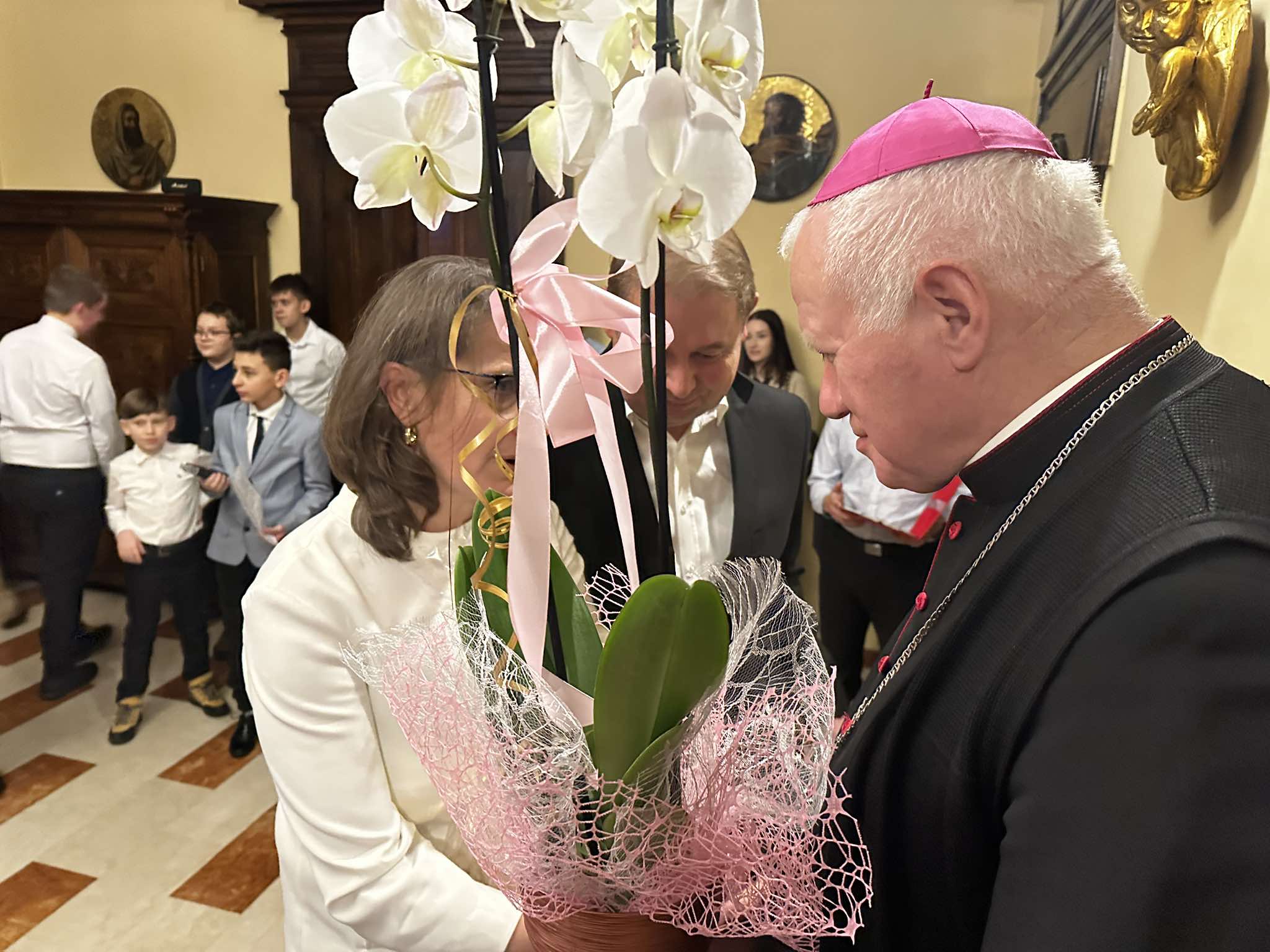 Na spotkaniu tradycyjnie już obecni byli przedstawiciele Domowego Kościoła, para diecezjalna – Danuta i Marek Polańscy. – Życzymy, abyście Żywego Boga nieśli każdemu człowiekowi, a przede wszystkim nam. I aby ten Żywy Bóg stawał się nadzieją na nasza wieczność. I aby ta nadzieja, którą daje to nowonarodzone Dziecię, umacniała wasze powołanie kapłańskie, i biskupie. Abyście całą mocą i miłością świadczyli o tej Miłości Bożej i tą Miłością zarażali nas, i naszą młodzież. Młodzież, która jest przyszłością naszego Kościoła – mówiła w życzeniach dla przemyskich biskupów Danuta Polańska.