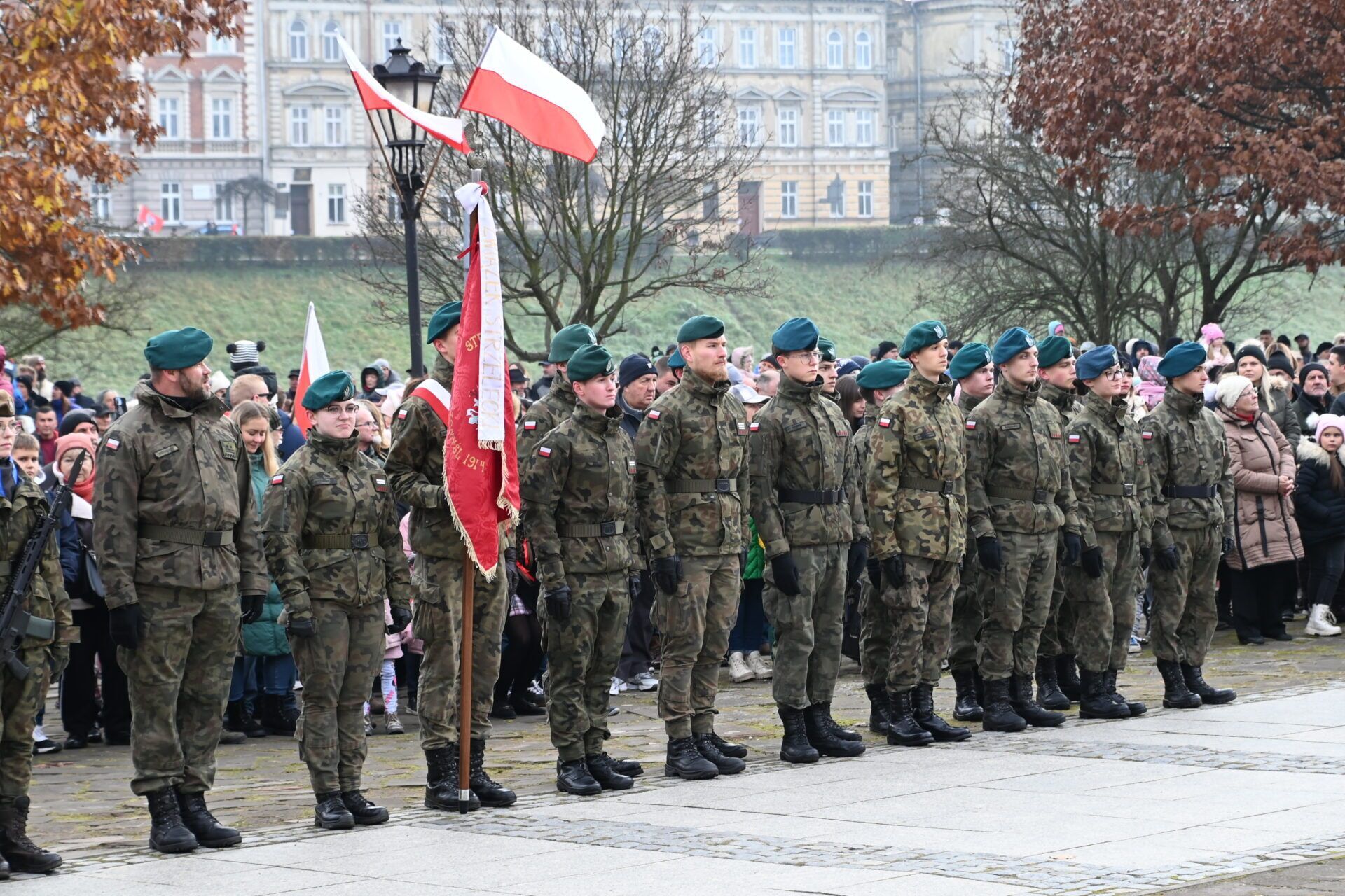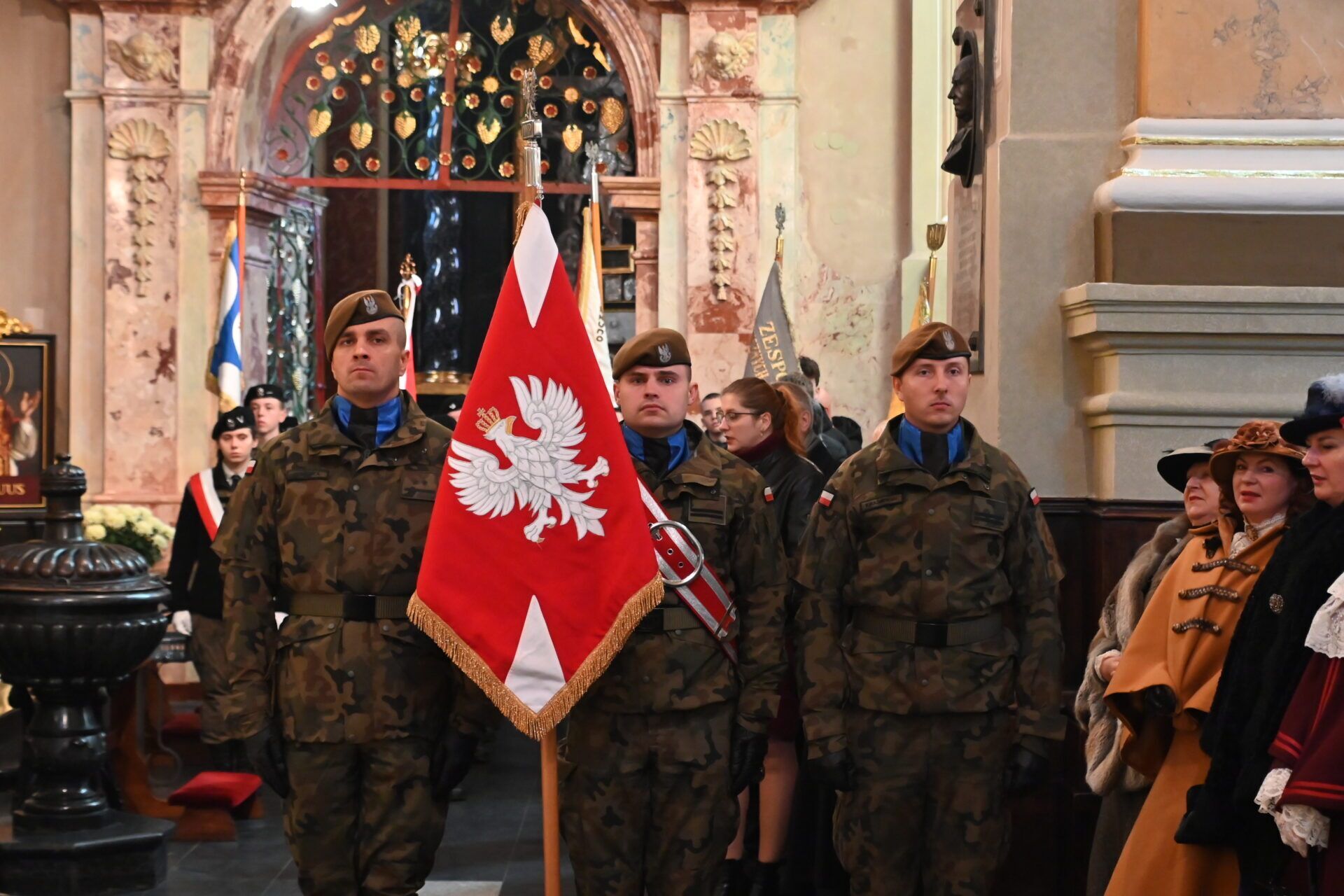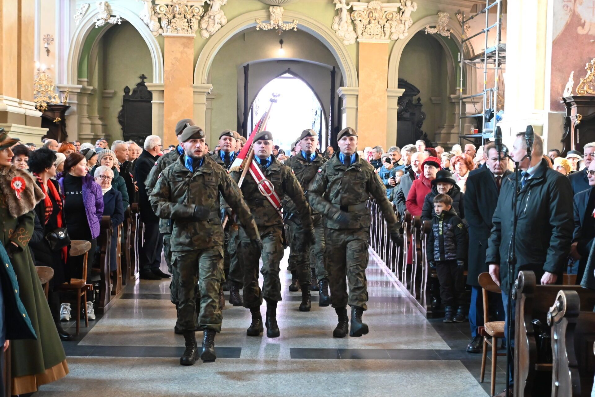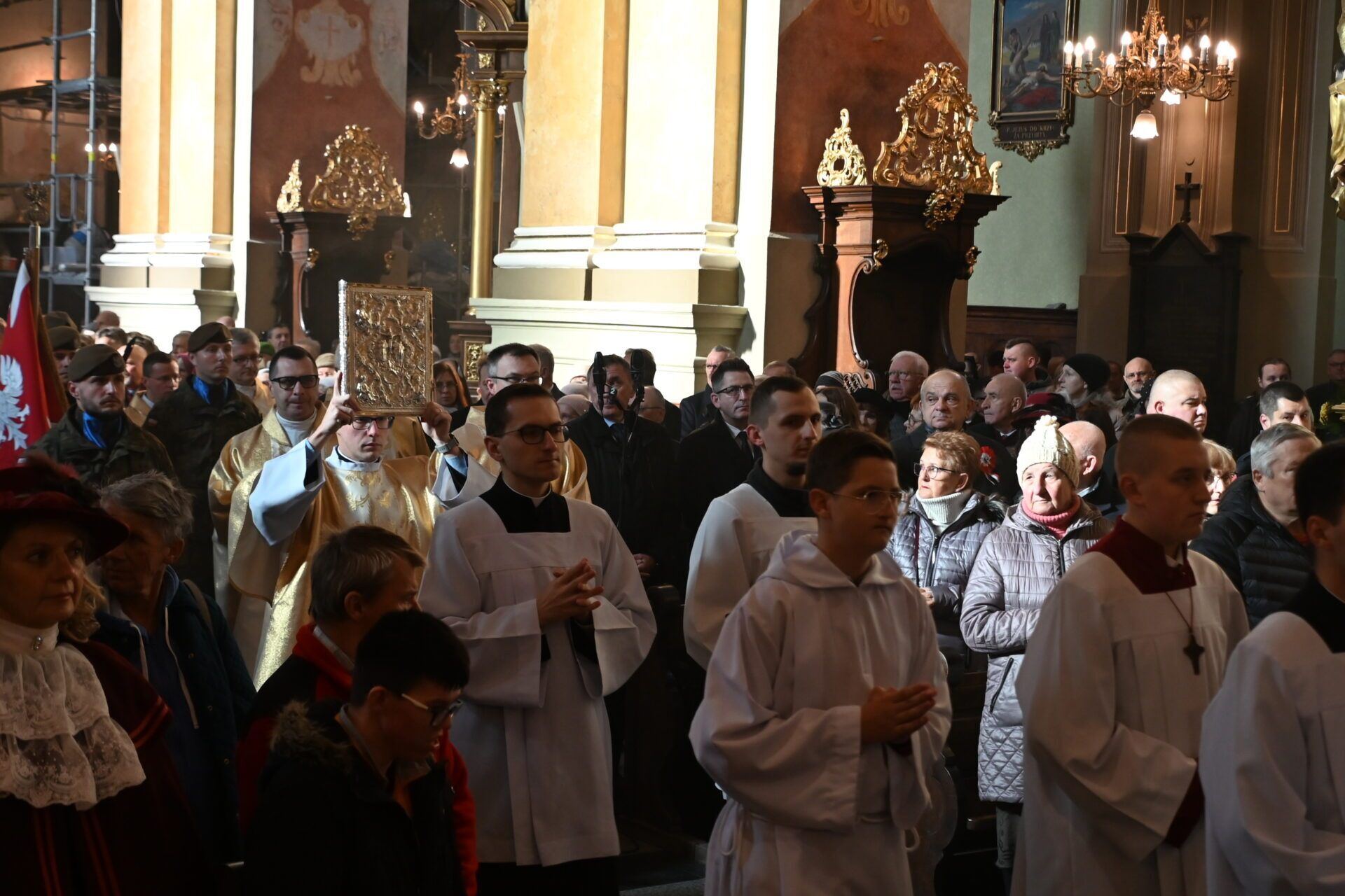 Okolicznościową homilię wygłosił ks. prał. Zbigniew Suchy, redaktor Niedzieli Przemyskiej, zachęcając do refleksji nad ważnością Narodowego Święta Niepodległości. – Chcemy dziś pochylić się nad pięknem, które odziedziczyliśmy po naszych przodkach. Tych pereł piękna jest bardzo wiele. Dotyczą najczęściej chlubnych kart naszej historii. Jest też piękno zrodzone z cierpienia, nie raz niewyobrażalnie wielkiego – mówił kaznodzieja. – Te perły rzuciliśmy na podeptanie przez tych, którzy na wiecach przedwyborczych domagali się, a teraz w Sejmie, zgody na zabijanie nienarodzonych dzieci. Pozwoliliśmy przejąć odpowiedzialność za tę pełną pereł Ojczyznę, ludziom głoszącym, że Polskość to nienormalność – mówił dobitnie kapłan.