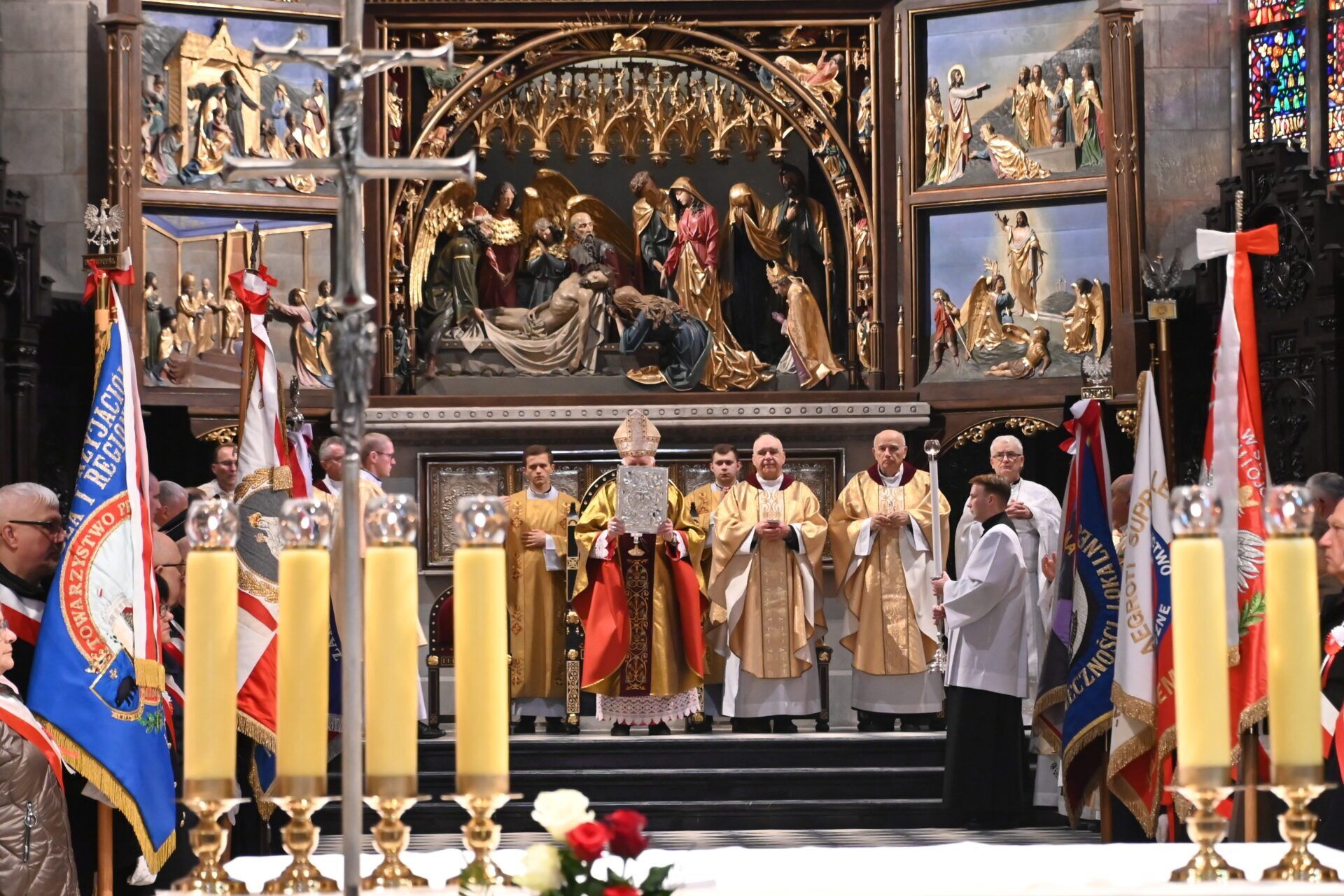 W słowie wprowadzenia do wspólnej modlitwy metropolita przemyski mówił, że przeszłością Polski jest jej bardzo bogata historia. – Dziękujemy za dar odzyskania niepodległości przez naszą Ojczyznę. Dziękujemy za córki i synów, którzy swoje życie oddali za Ojczyznę. Dziękujemy za mężów stanu, którzy na pierwszym miejscu stawiali Boga, Honor i Ojczyznę – mówił hierarcha. Patrząc na teraźniejszość, blaski i cienie zachęcał do modlitwy za przyszłość naszego kraju. – Modlimy się o to, aby Ojczyzna nasza była zjednoczona przez wstawiennictwo Maryi, która w Bazylice Archikatedralnej odbiera cześć jako Matka Boża Jackowa i zachęca nas, abyśmy nie zapominali o Jej Synu, o Chrystusie, w naszej wędrówce przez życie – dodał.