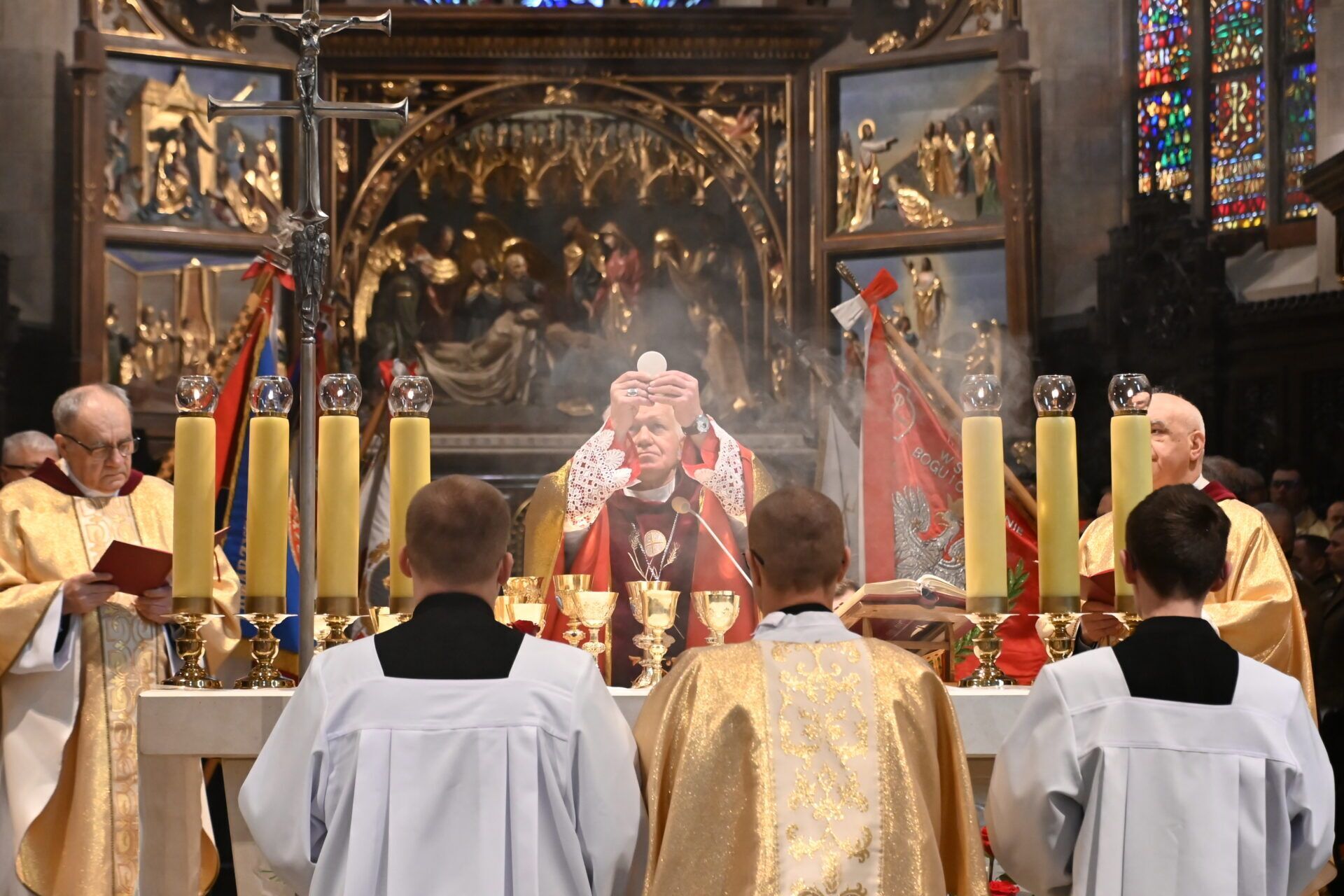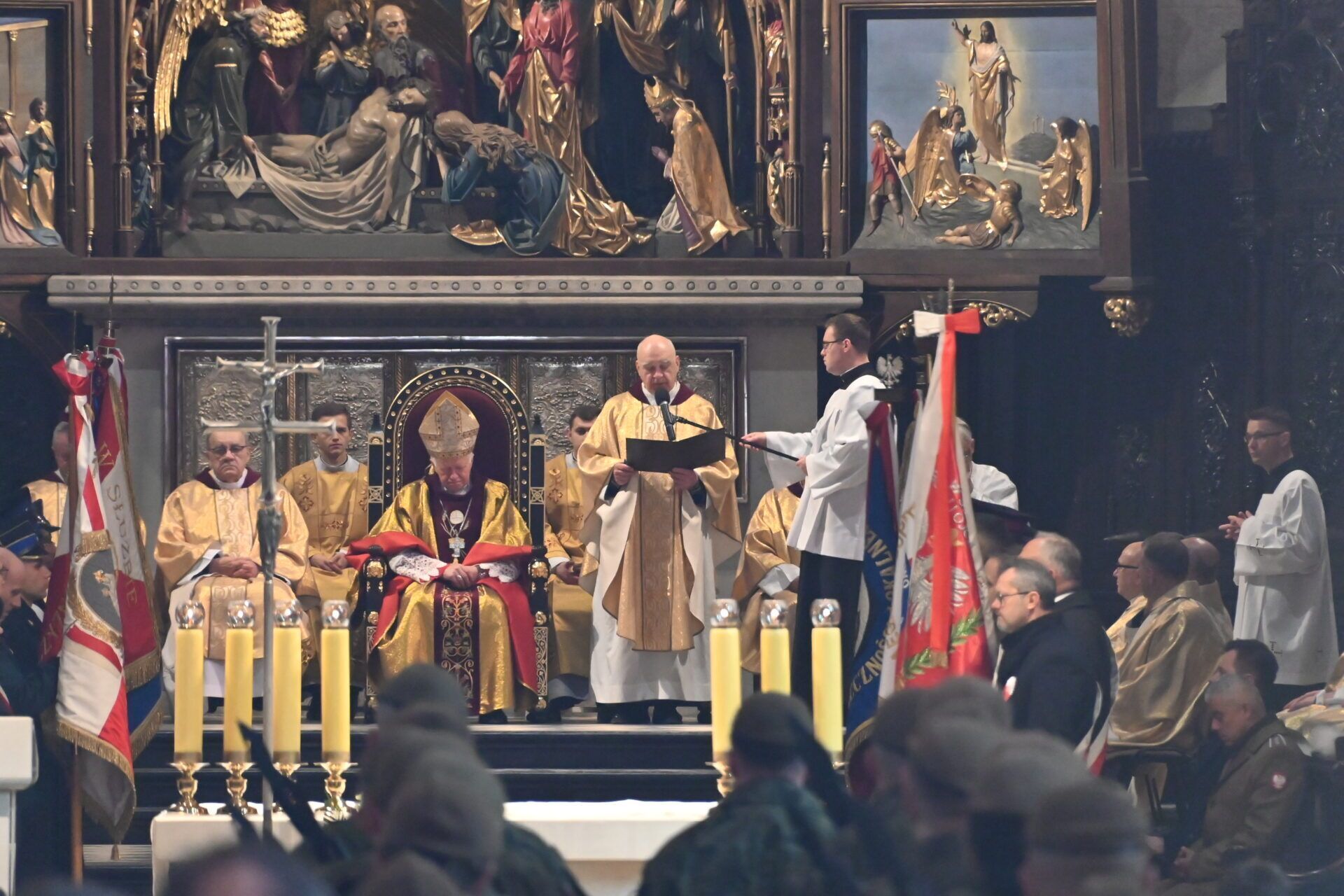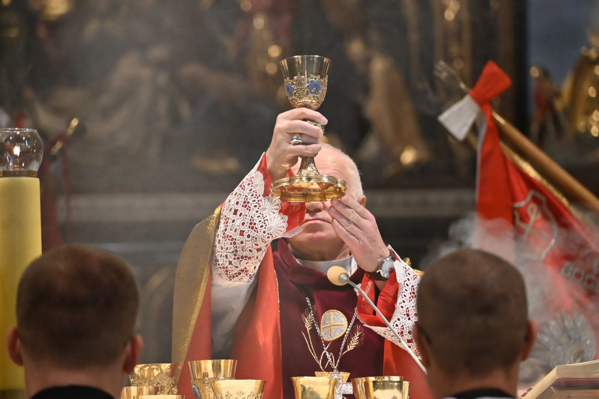 Ks. Suchy zachęcał do zastanowienia się, jak do tego doszło. – Stojąc nad popieliskiem tych pereł, które zostały zniszczone, którymi pogardzono, jak chociażby obrazami św. Maksymiliana, Rodziny Ulmów czy Rotmistrza Pileckiego, zastanawiamy się jak to się mogło stać, że naród tak bogaty w perły bohaterstwa, ale także odważny i wytrwały w cierpieniach, dał spalić, dał spopielić swoje perły – powiedział kaznodzieja.