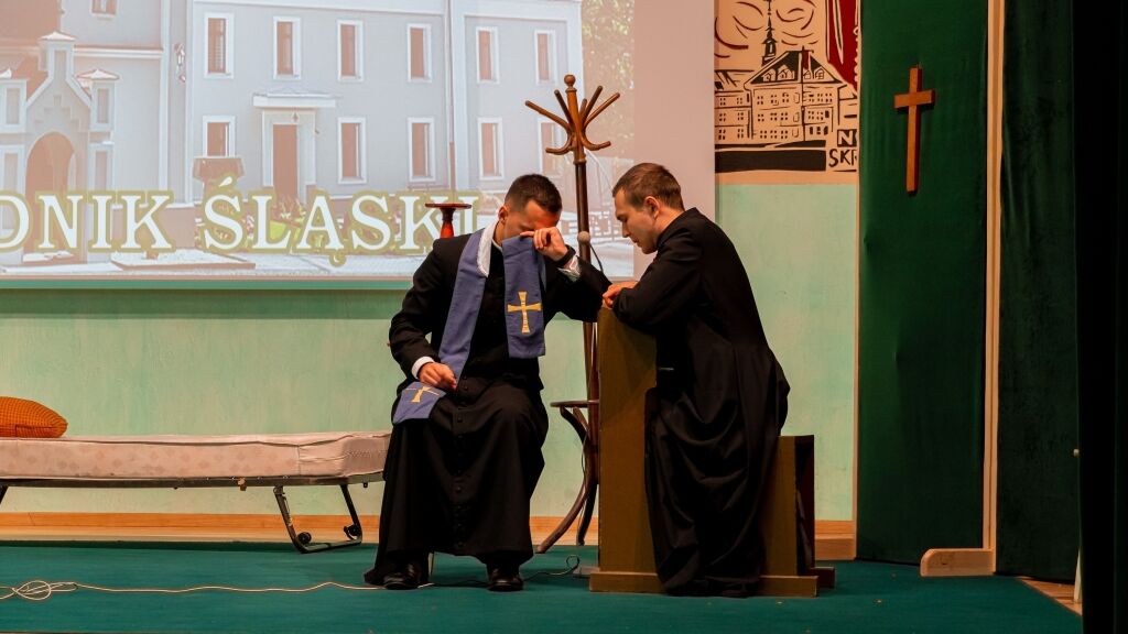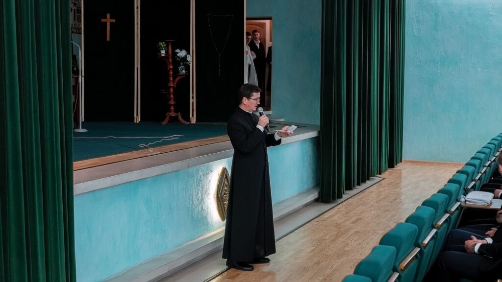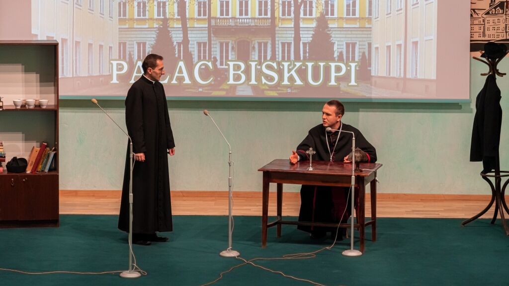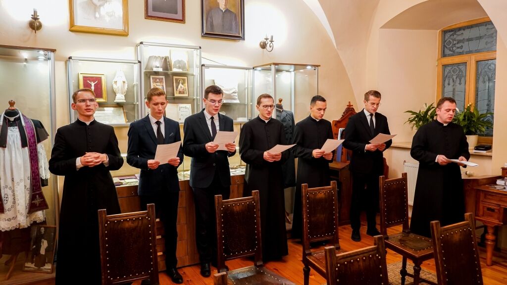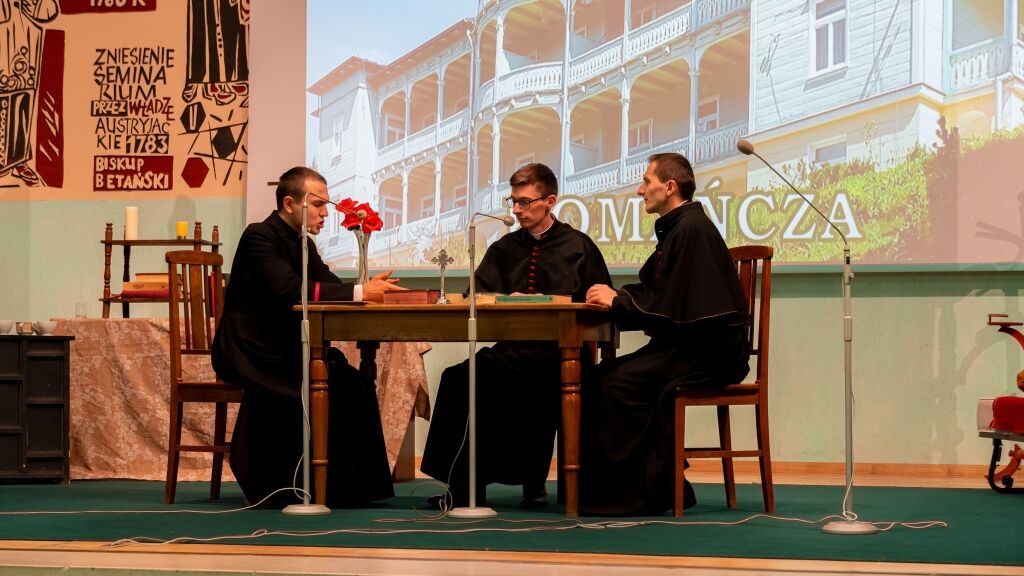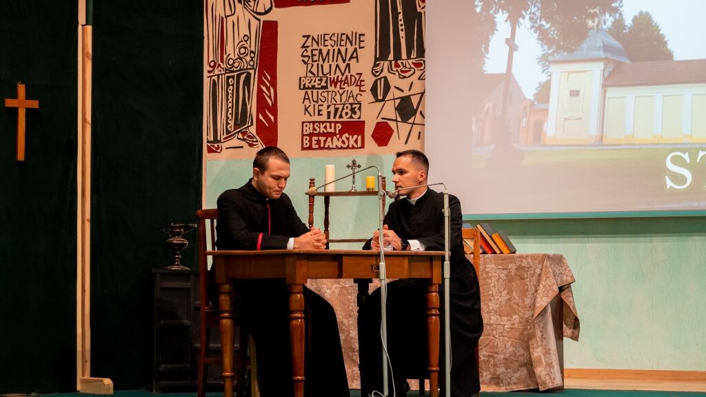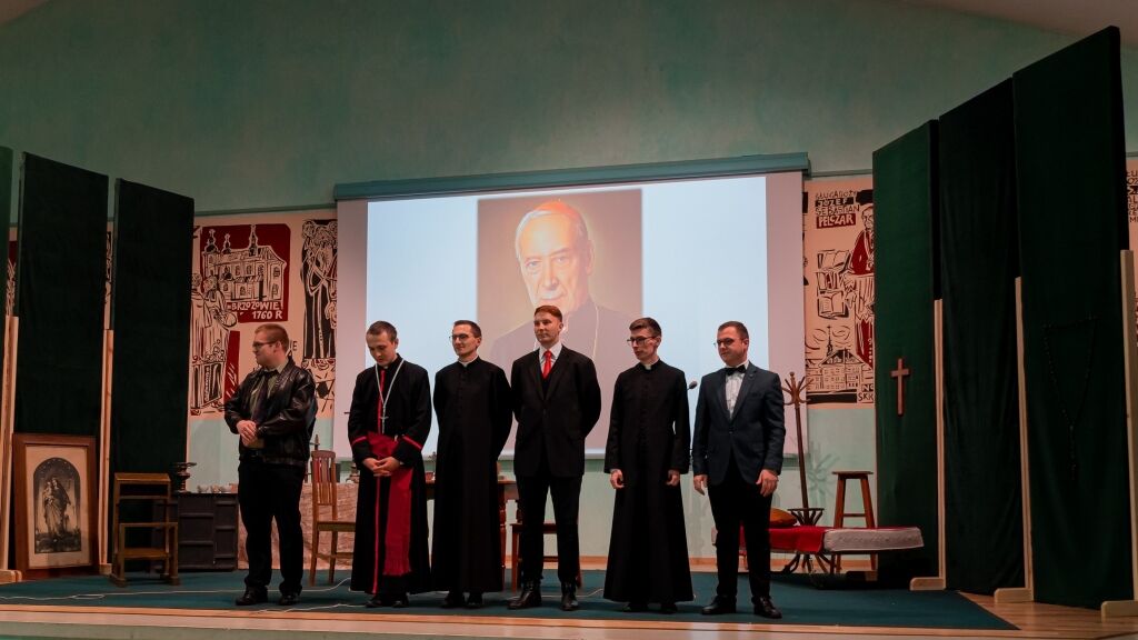 Następnym punktem programu było spotkanie wszystkich Członków w budynku Instytutu Teologicznego przy Wyższym Seminarium Duchownym. Po zakończonym poczęstunku rektor WSD ks. dr Konrad Dyrda, rektor, powitał wszystkich przybyłych gości oraz zaprosił do obejrzenia sztuki teatralnej, przygotowanej przez alumnów IV i V kursu, pt. „Moc milczenia”, przybliżającej historię internowania bł. Stefana kard. Wyszyńskiego w latach 1953-1956.
