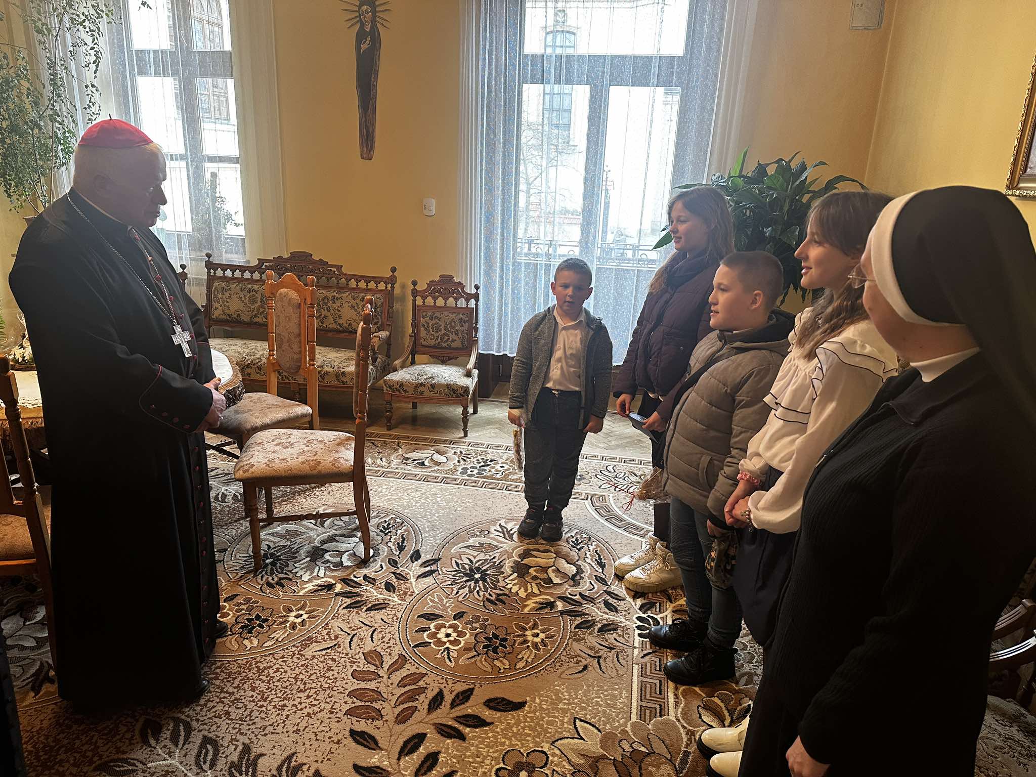 Radosne spotkanie miało miejsce w piątek, 20 grudnia 2024 r., w Kurii Metropolitalnej w Przemyślu. Dzieci spotkały się z metropolitą przemyskim, aby na jego ręce złożyć świąteczne życzenia przemyskim biskupom.