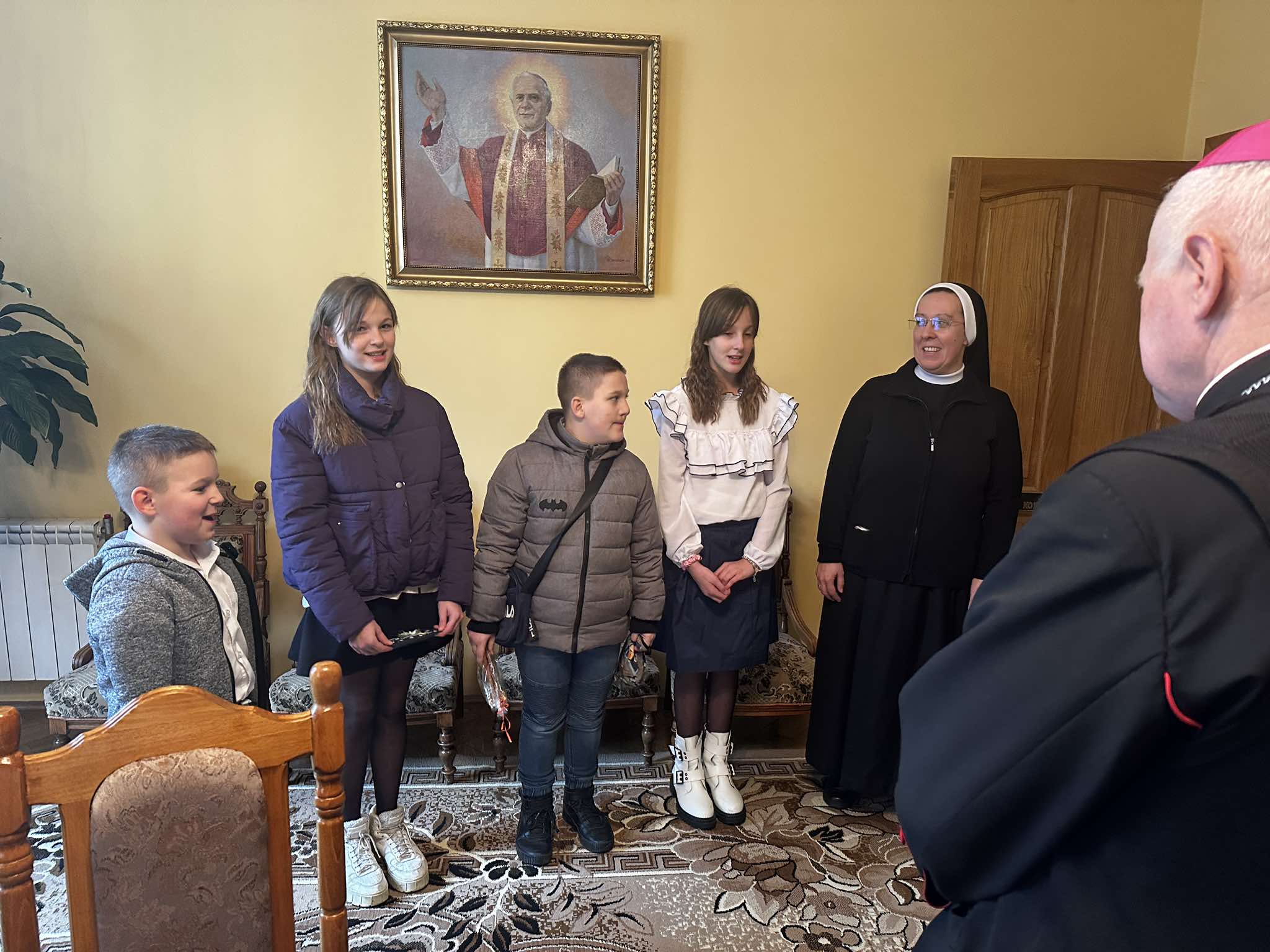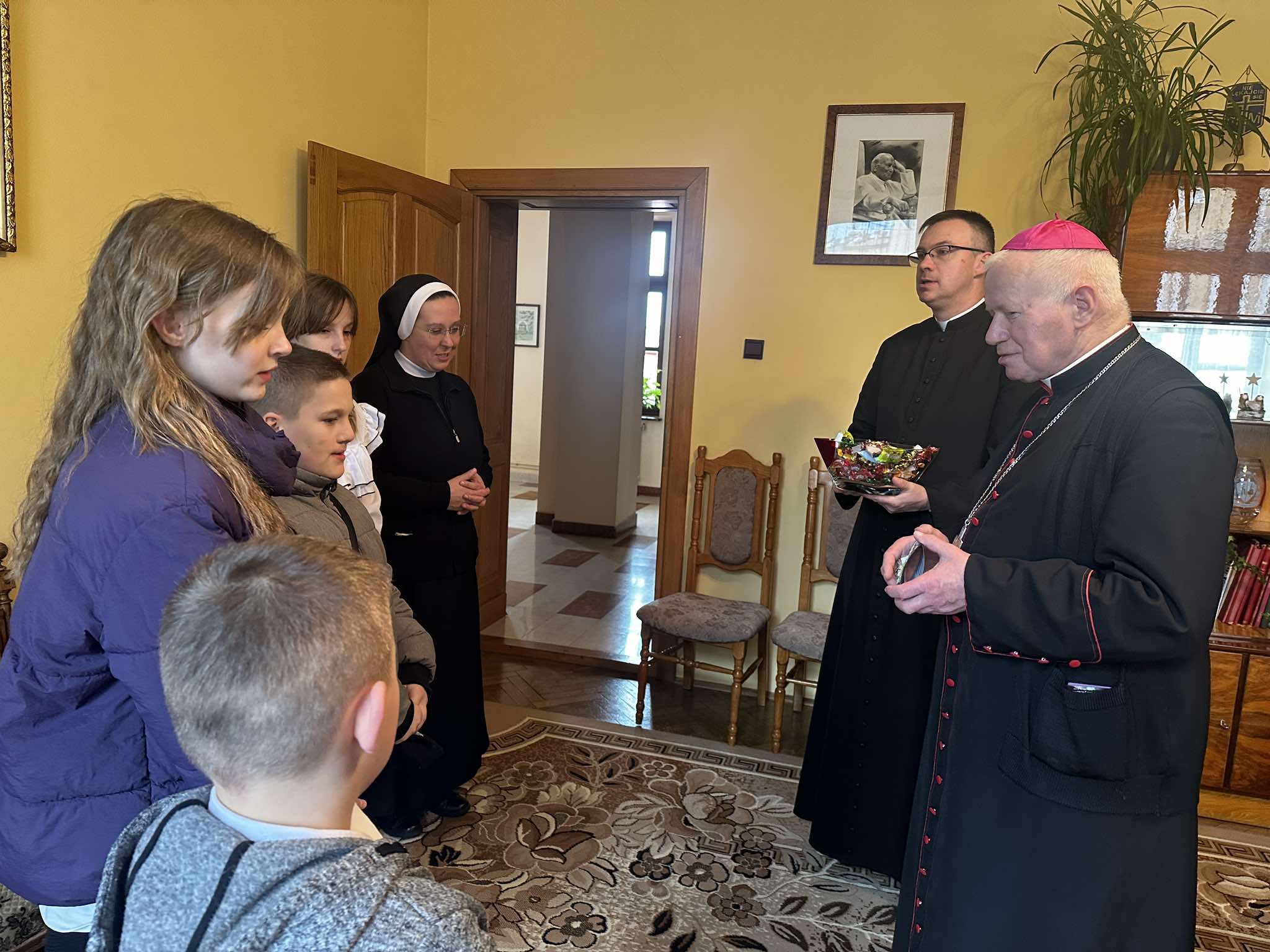Dzieci zaśpiewały świąteczną piosenkę, złożyły życzenia i posłuchały krótkiej katechezy metropolity przemyskiego. Hierarcha podziękował s. Ewie za to, że przyprowadziła dzieci do Kurii Metropolitalnej w Przemyślu. – Można powiedzieć, że siostra jest taka gwiazdą, która doprowadziła do Pana Jezusa – mówił arcybiskup.