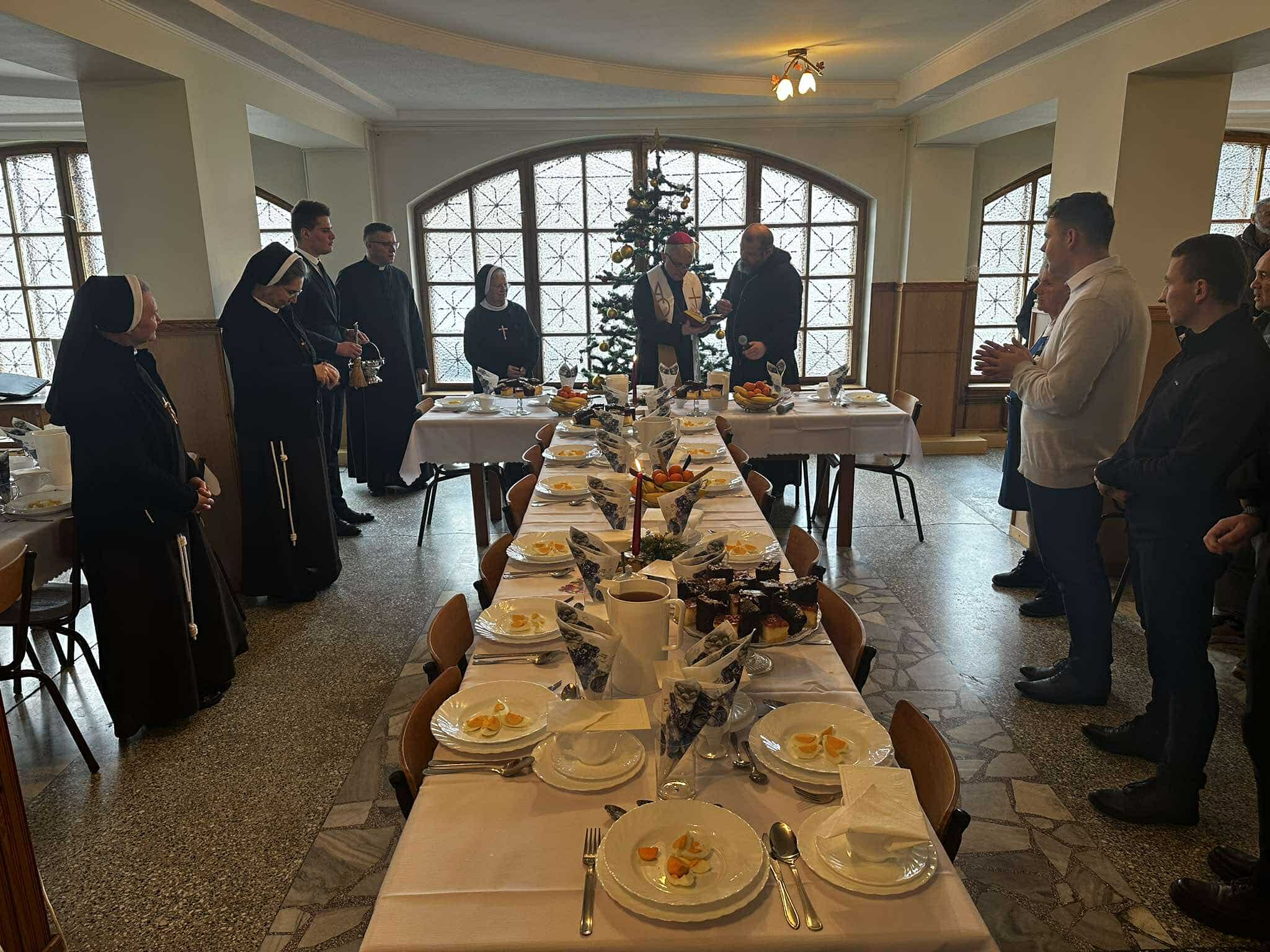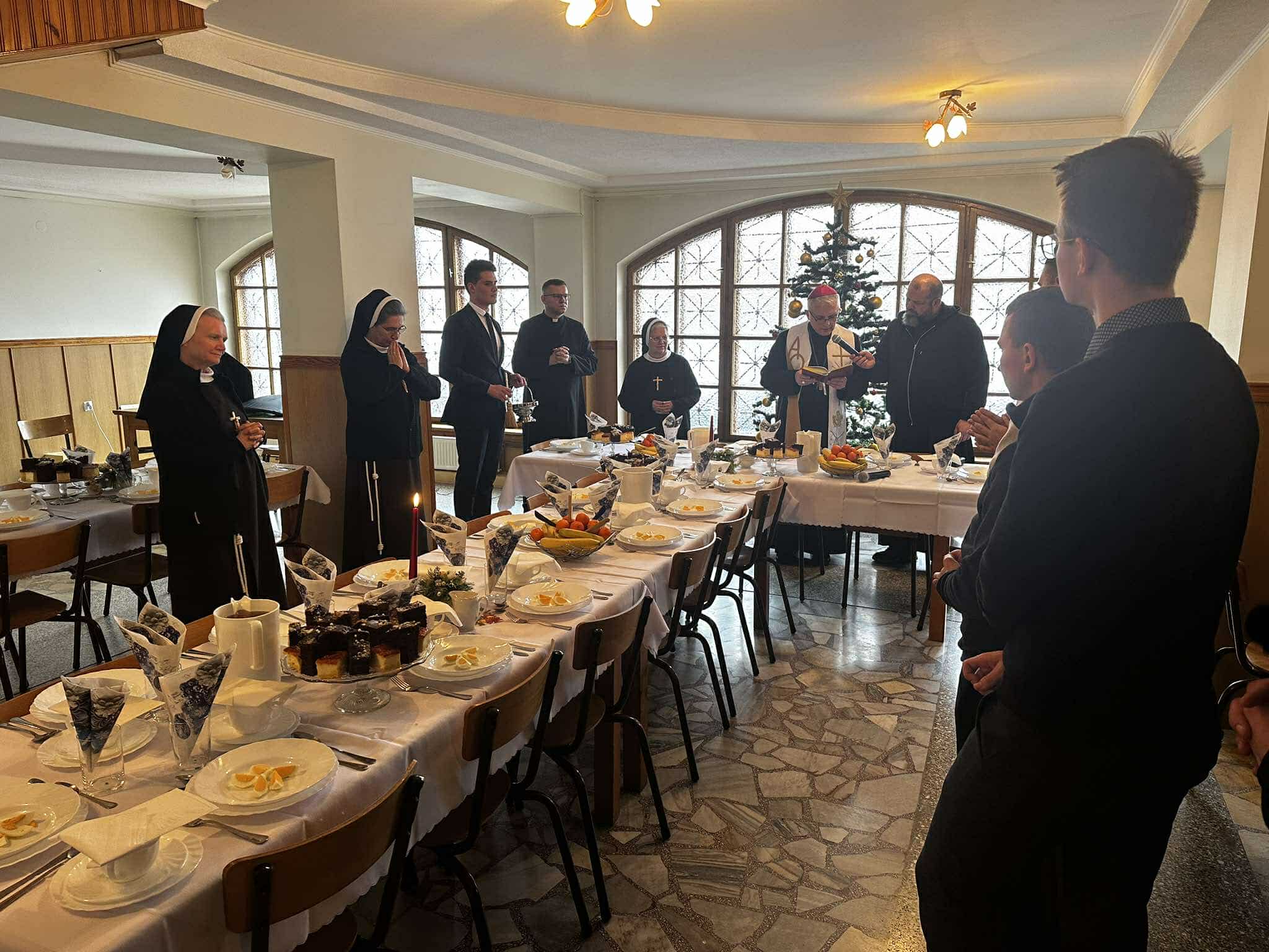 Po Eucharystii wszyscy przeszli na refektarz, aby spotkać się przy świątecznym stole. – Dzieląc radość z przyjścia Jezusa na ziemię, życzę wraz ze wspólnotą Sióstr Felicjanek, by święta Bożego Narodzenia były czasem pokoju. Niech Dziecię Jezus, Książe Pokoju, udziela pełni swoich darów. Jego moc niech opromienia rzeczywistość. Niech otwiera serca na przyjęcie Jezusa w Jego Słowie i Eucharystii. Niech Królestwo miłości pokoju, jedności będzie w naszych sercach i w naszych rodzinach. Bądźmy dla siebie nawzajem zwiastunami Dobrej Nowiny i świadkami nadziei – mówiła s. Amadeus Czesława Pacławska, Przełożona Prowincjalna.