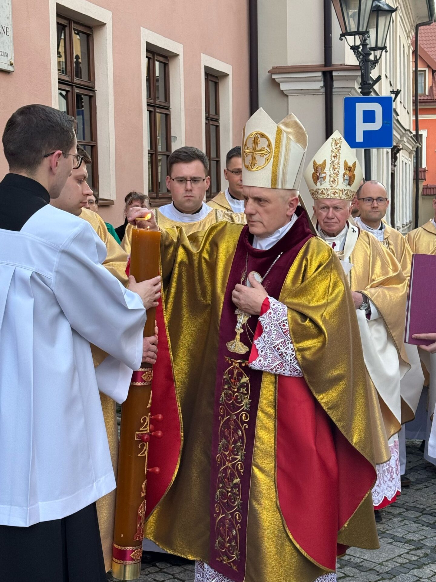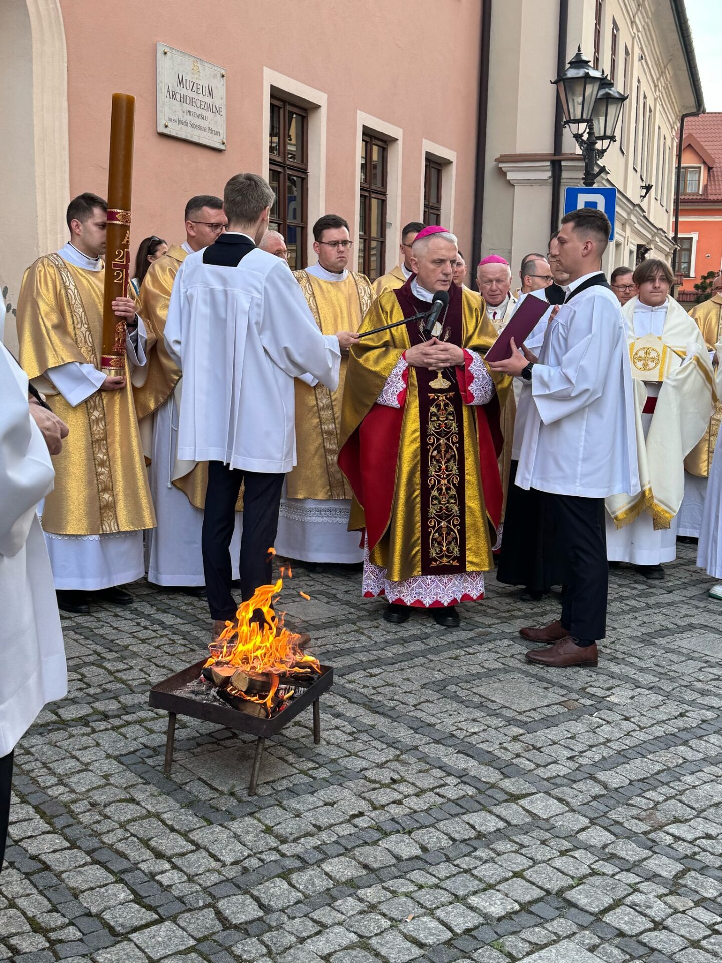 Hierarcha nawiązał do jednego z symbolów Wigilii Paschalnej, czyli do ognia, od którego zapalony zostaje paschał. – Świeca daje światło, zarazem sama spalając się. Daje światło, równocześnie dając siebie. Ten obraz pięknie ukazuje tajemnice paschalną Chrystusa, który daje siebie i daje nam światło.
