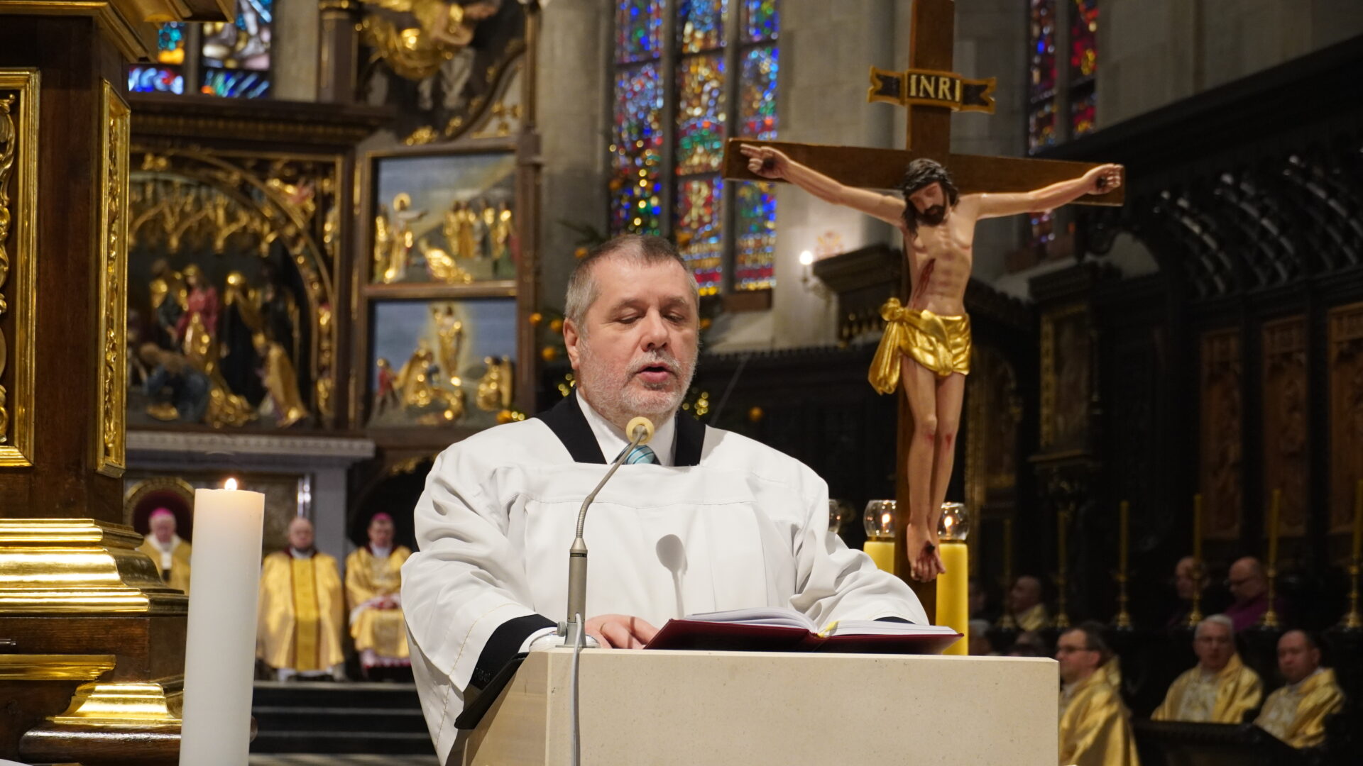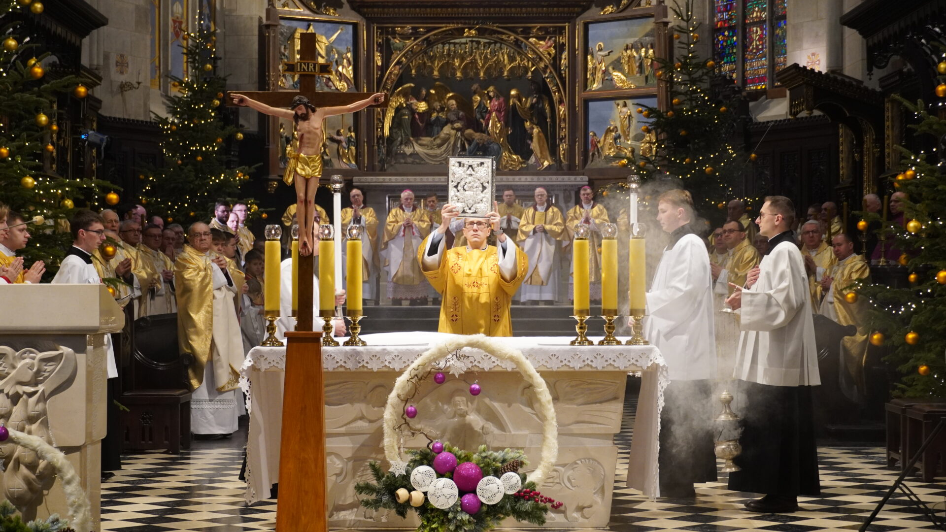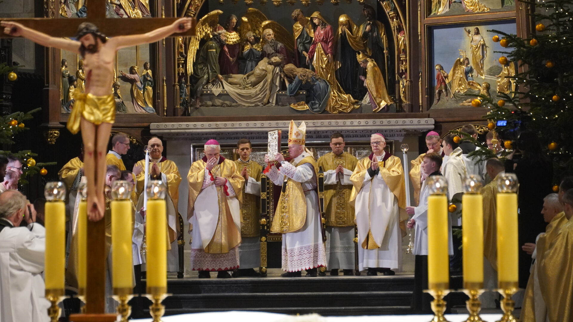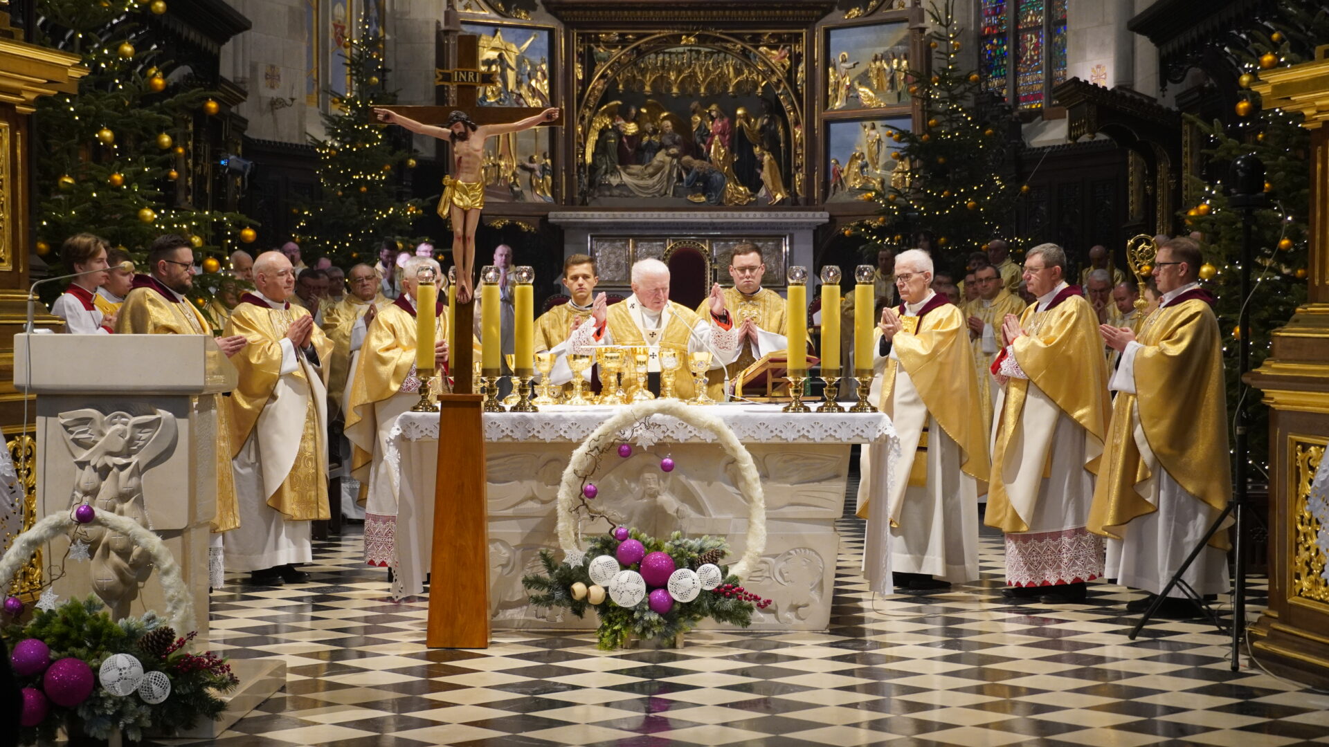 W drzwiach archikatedry abp Szal wezwał do modlitwy „Witaj krzyżu Chrystusa, jedyna nadziejo nasza”, na co wszyscy uczestnicy odpowiedzieli „Ty jesteś naszą nadzieją, nie doznamy zawodu na wieki”. Wtedy procesja weszła do wnętrza świątyni, arcybiskup pobłogosławił wodę i pokropił nią wiernych. Następnie rozpoczęła się Eucharystią, którą wraz z arcybiskupem przemyskim koncelebrował abp Józef Michalik, bp Stanisław Jamrozek, bp Krzysztof Chudzio oraz kapłani diecezjalni i zakonni.