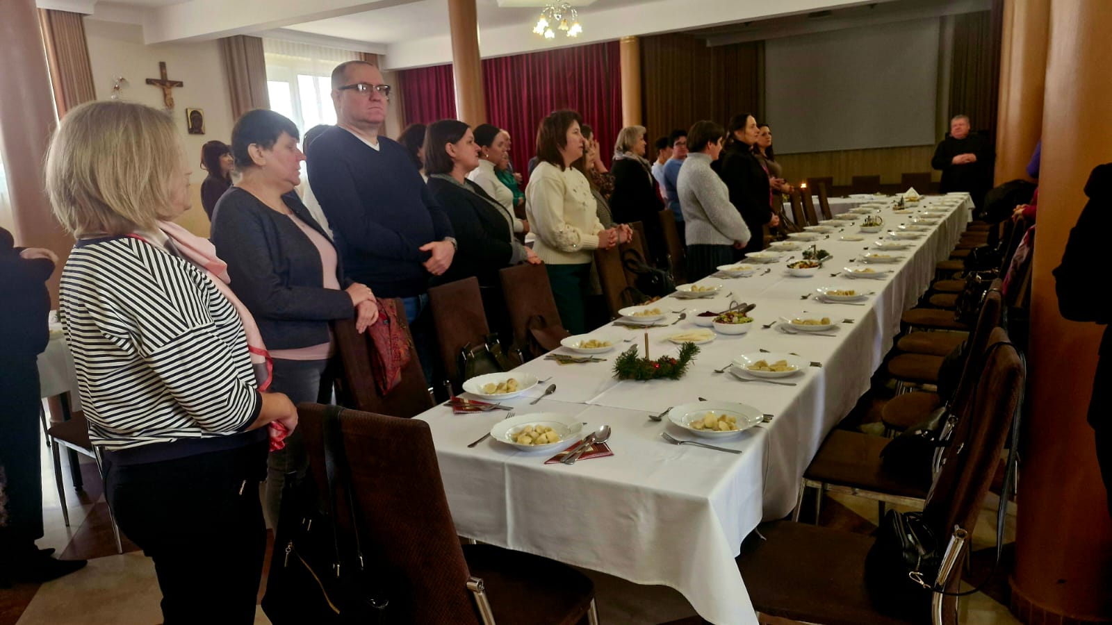 Ostatnim punktem spotkania stała się opłatkowa agapa, czyli spotkanie przy stole w Domu Parafialnym przy kościele pw. NSPJ w Radymnie. Tam nie zabrakło dzielenia się opłatkiem, wspólnych życzeń oraz rozmów o codzienności katechetów świeckich.