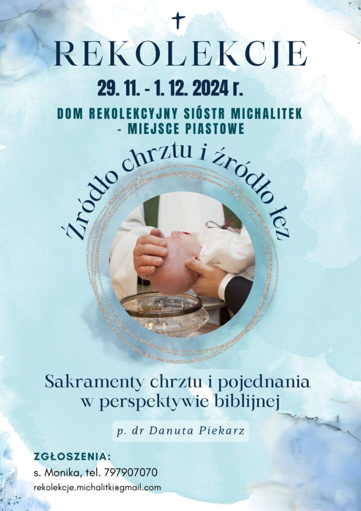 Siostry Michalitki zapraszają na rekolekcje “Źródło chrztu i źródło łez – sakrament chrztu i pojednania w perspektywie biblijnej”.