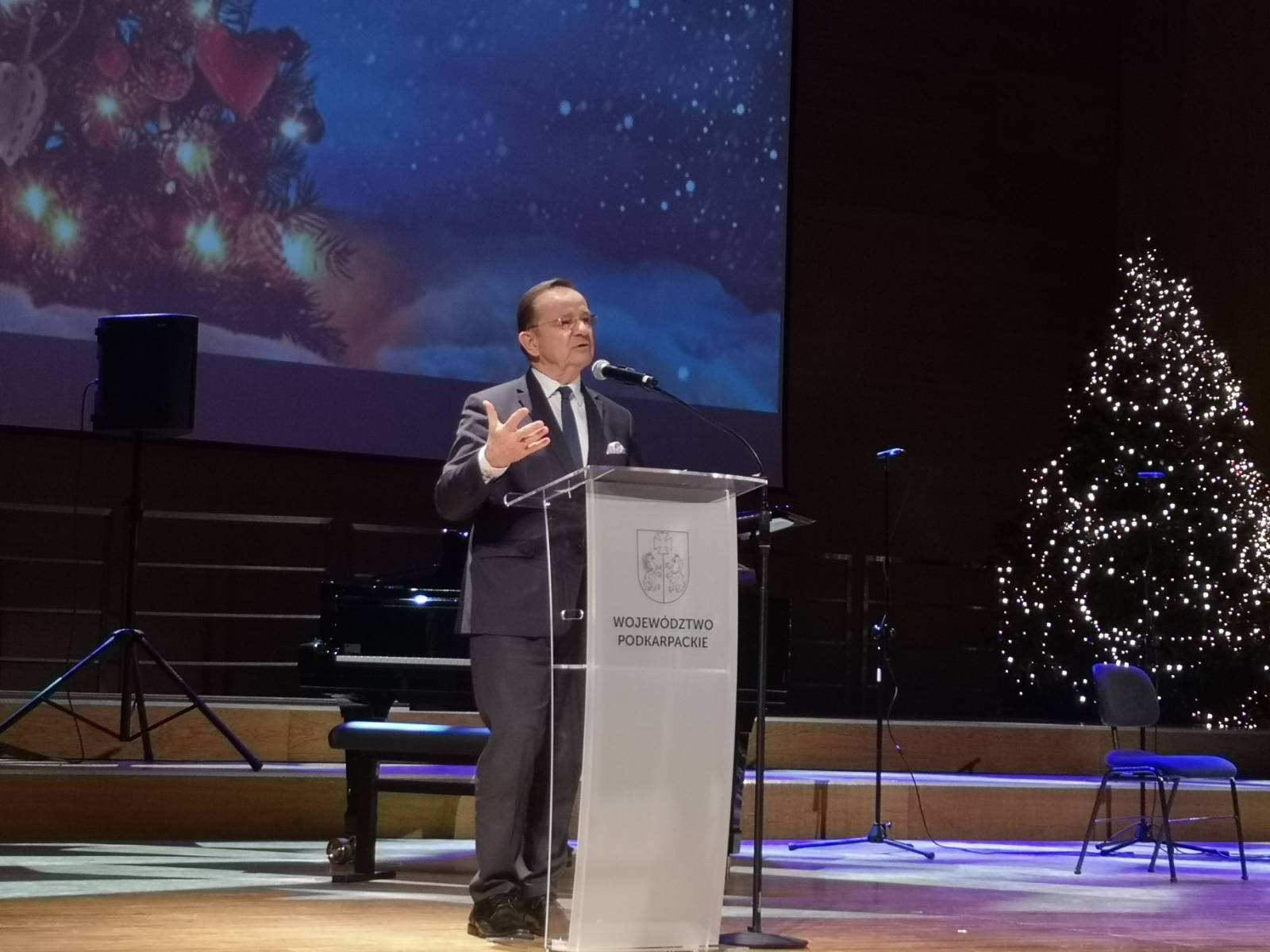 W Spotkaniu Opłatkowym Samorządowców z Podkarpacia uczestniczyli wójtowie, burmistrzowie, prezydenci miast, starostowie oraz radni z całego regionu. Wyjątkową, świąteczną atmosferę spotkania dopełnił koncert przygotowany przez społeczność Państwowej Szkoły Muzycznej I stopnia im. Zygmunta Mycielskiego w Strzyżowie.