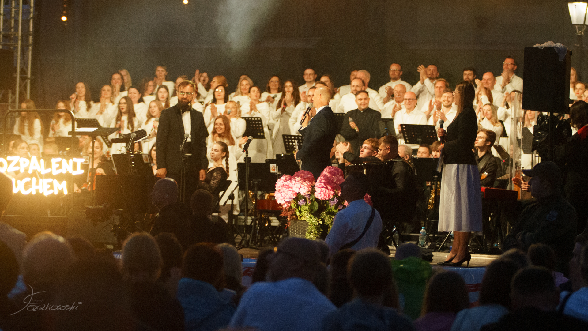 – Koncert „Rozpaleni Duchem” był wołaniem o Ducha Świętego, który buduje Kościół od ponad 2000 lat. Dlatego chcemy, żeby na nowo budował także dziś każdego z nas, nasze rodziny, całe społeczeństwa i nasz kraj – podkreśla ks. Dominik Długosz, pomysłodawca i organizator wydarzenia. – Bo w dzień Zesłania Ducha Świętego nadal mogą się dziać niezwykłe rzeczy, ale pierwsze trzeba Go zaprosić do siebie. Dlatego był to czas, kiedy chcieliśmy wyjść z naszych kościołów, żeby bardzo mocno zamanifestować swoją wiarę i wołać o nią w ten niezwykły muzyczny sposób dla tych, którzy jej nie mają. Bo muzyka wzrusza, dotyka naszą wrażliwość, daje radość, a nawet kruszy twarde serca – dodaje i zaznacza, że ten koncert był zrywem przeciwko złu i świadectwem życia chrześcijańskimi wartościami.