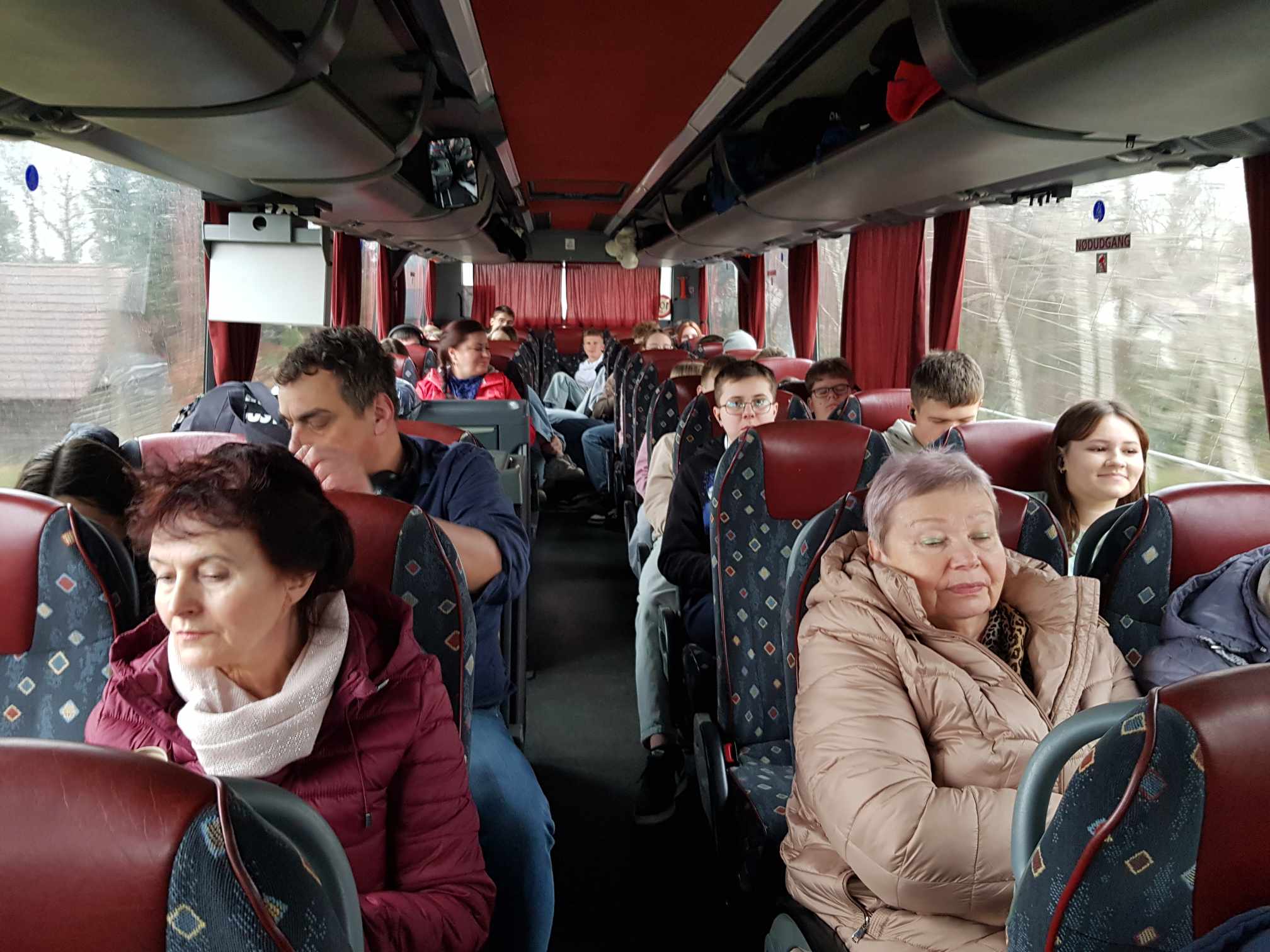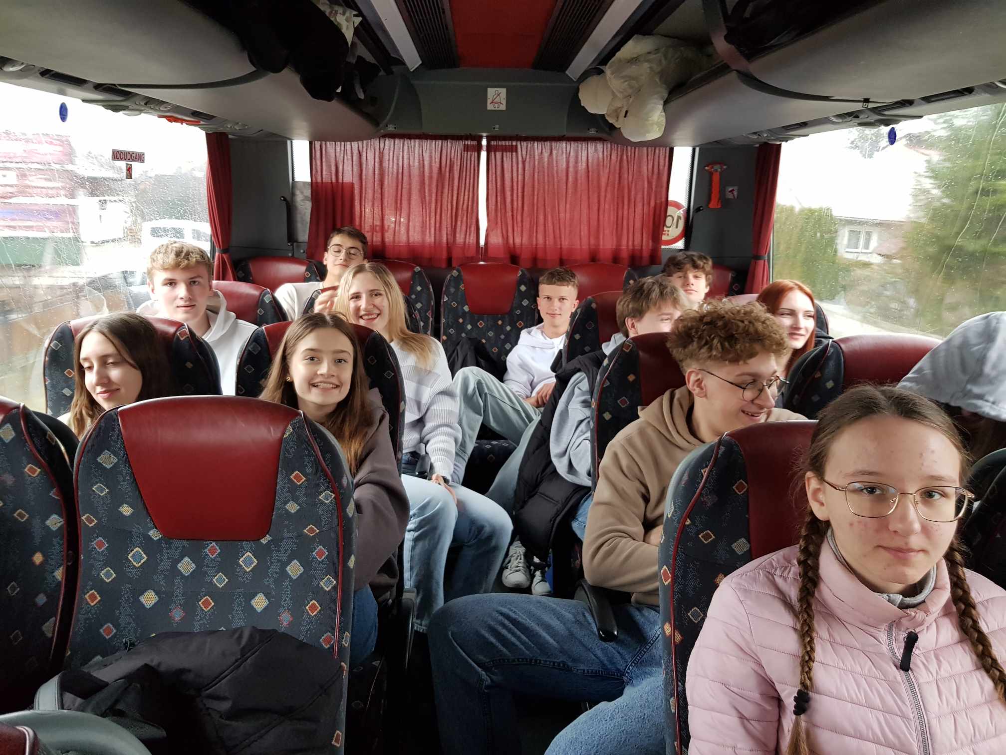 Wyjazd zaczął się od małego „przedstawienia” poza sceną – podczas pakowania scenografii autokar postanowił zafundować nam dodatkową atrakcję i ugrzązł w błocie. Na szczęście, jak to w teatrze, każdy zna swoją rolę! Jedni pchali, drudzy mobilizowali, a reszta kibicowała z boku. Z pomocą dobrych ludzi i solidnej dawki determinacji udało się wyjechać. Można powiedzieć, że zaczęliśmy od „żywej sceny współpracy”, która była świetnym wstępem do naszego artystycznego weekendu.