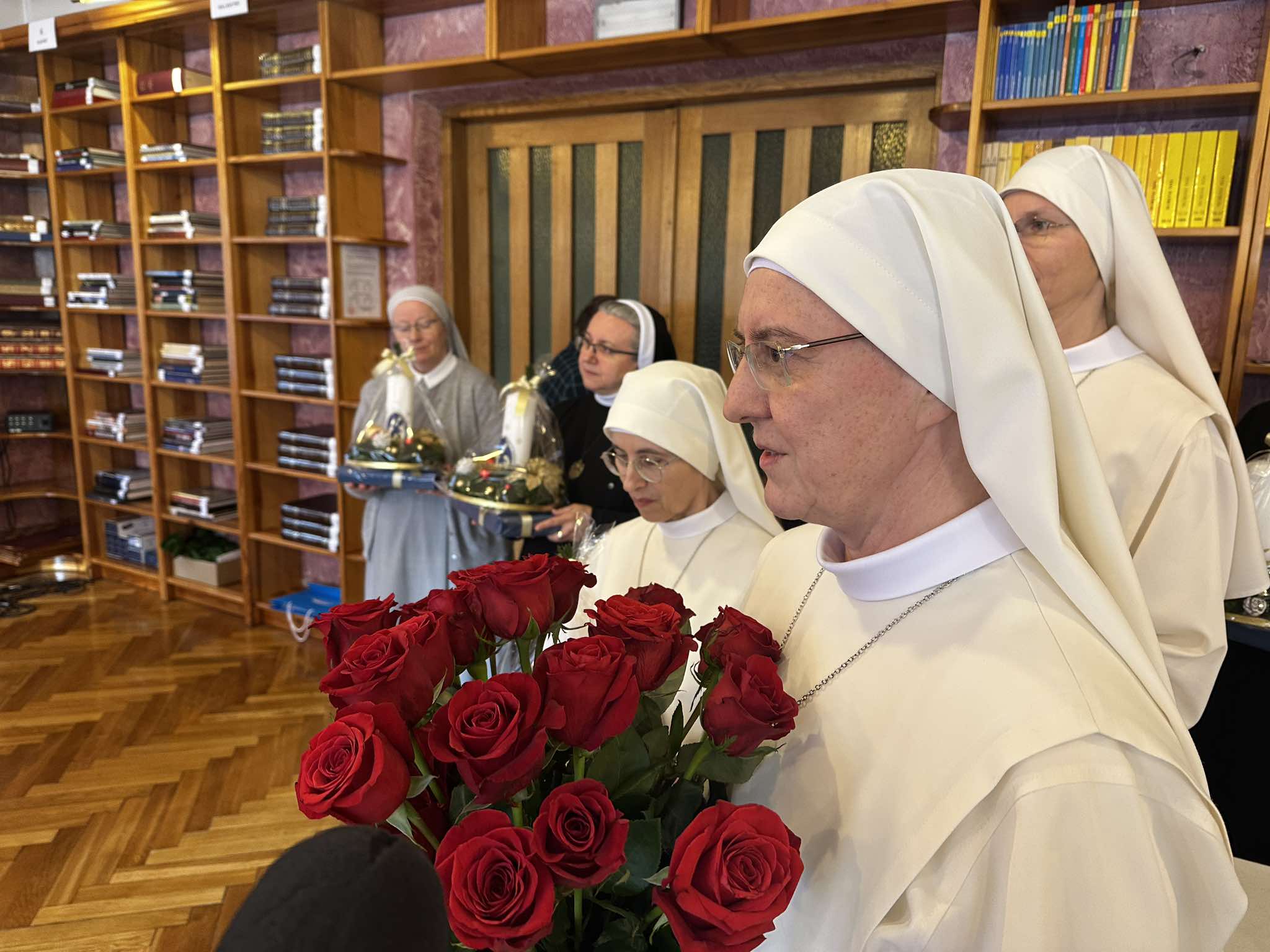W tym roku życzenia składała delegacja ze Wspólnoty Sióstr Niepokalanej Matki Wielkiego Zawierzenia z Bliznego. – Dziękujemy za to, że nasi pasterze w taki pewny sposób prowadzą nas zawsze tam, gdzie jest miejsce osoby konsekrowanej, do Najświętszego Serca Pana Jezusa. Po to, żeby Serce mogło przemawiać do serca. Dziękujemy, że czynicie to przez swoją posługę, przez nauczanie, przez inicjatywy duszpasterskie, przez świadectwo życia i przez własne serce, które na każdym kroku nam okazujecie – mówiła siostra zawierzanka. – Dziękuję, że prowadząc nas do Serca Pana, które jest kresem wszystkich serc, jednocześnie idziecie wespół z nami w tej pielgrzymce nadziei – dodała zaznaczając, że to daje pewność pełnej jedności z całą wspólnotą Kościoła pod przewodnictwem papieża.