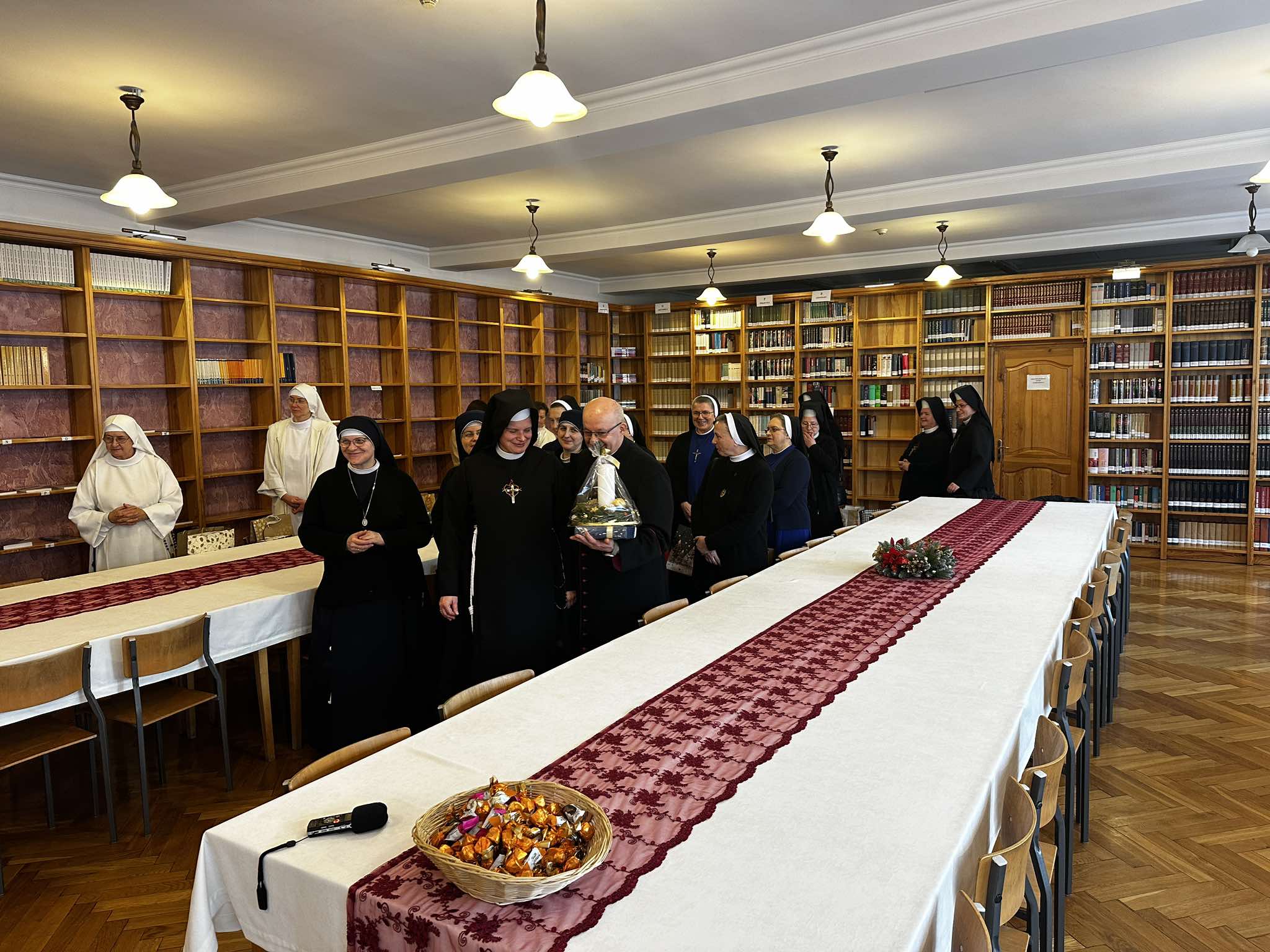 W sobotę, 21 grudnia 2024 r., w czytelni Wyższego Seminarium Duchownego w Przemyślu odbyło się świąteczne spotkanie przemyskich biskupów z delegacjami żeńskich zgromadzeń zakonnych. – Dziękuję, że prowadząc nas do Serca Pana, które jest kresem wszystkich serc, jednocześnie idziecie wespół z nami w tej pielgrzymce nadziei – mówiła w życzeniach siostra zawierzanka z Bliznego.
