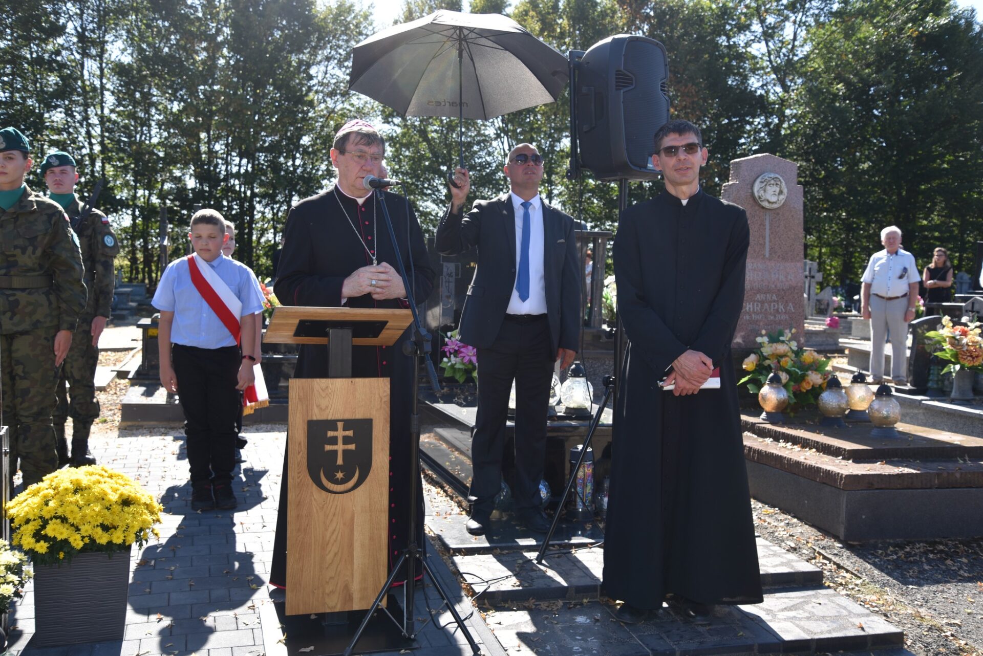 Po zakończeniu Eucharystii uczestnicy przeszli w uroczystym pochodzie na cmentarz parafialny. Tam odbyła się oficjalna część obchodów. Głos zabrali: Wójt Gminy Przeworsk Daniel Krawiec, Poseł na Sejm RP Tadeusz Chrzan, Dyrektor Biura Senatora Mieczysława Golby Marcin Malinowski oraz Asystent Biura Posła do Parlamentu Europejskiego Bogdana Rzońcy – Szymon Gruszka. W swoich wystąpieniach podkreślili znaczenie pielęgnowania pamięci historycznej i przekazywania jej kolejnym pokoleniom jako podstawy budowania wspólnej tożsamości narodowej.