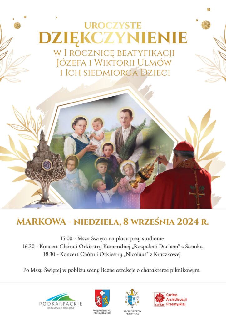 Uroczystości Dziękczynne w Pierwszą Rocznicę beatyfikacji odbędą się w niedzielę, 8 września 2024 roku w Markowej, w miejscu beatyfikacji, a więc przy miejscowym stadionie sportowym.