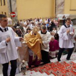 Natomiast w homilii abp Szal nawiązał do hasła Roku Jubileuszowego „pielgrzymi nadziei”. – Dzisiejsza uroczystość Bożego Ciała zachęca nas do udziału w szczególnym pochodzie, jakim jest nie tylko wędrówka z Najświętszym Sakramentem przez ulicę naszego pięknego miasta Przemyśla, ale także zachęca nas do tego, aby popatrzeć na wędrówkę całej ludzkości, na wędrówkę człowieka, bo przecież wiemy, że jest to szczególna wędrówka – powiedział kaznodzieja. – W dzisiejszej procesji pragniemy iść jako pielgrzymi nadziei, zgodnie z hasłem bieżącego roku duszpasterskiego. Idziemy w pielgrzymce, uzmysławiając sobie, że wędrówką jest życie człowieka – dodał.