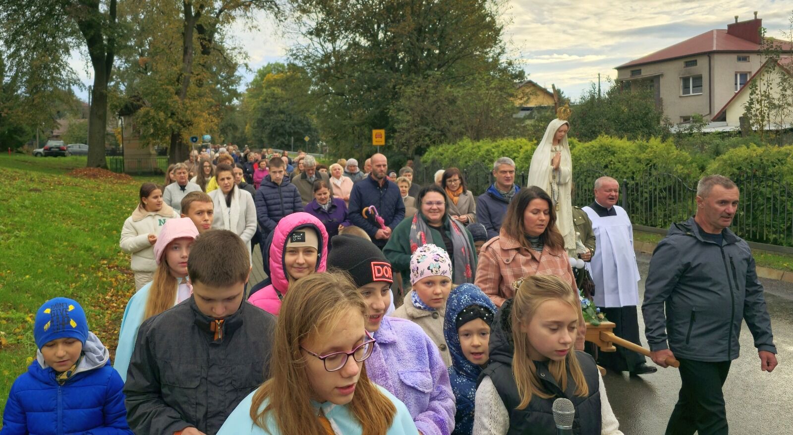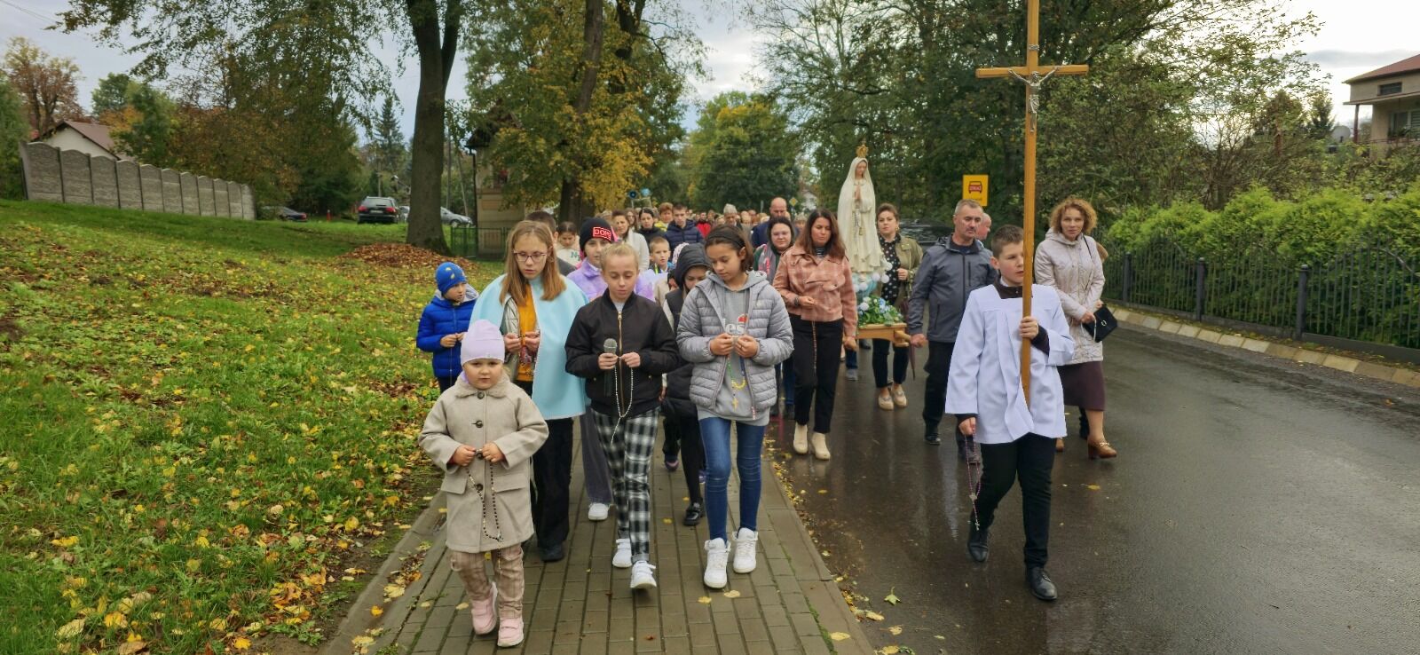 Dzieci z kolei prowadząc modlitwę wzięły udział w procesji różańcowej, która zgromadziła wiele rodzin z całej wspólnoty parafialnej, w której duszpasterską troskę podejmuje ks. Jan Gołąb, proboszcz parafii.