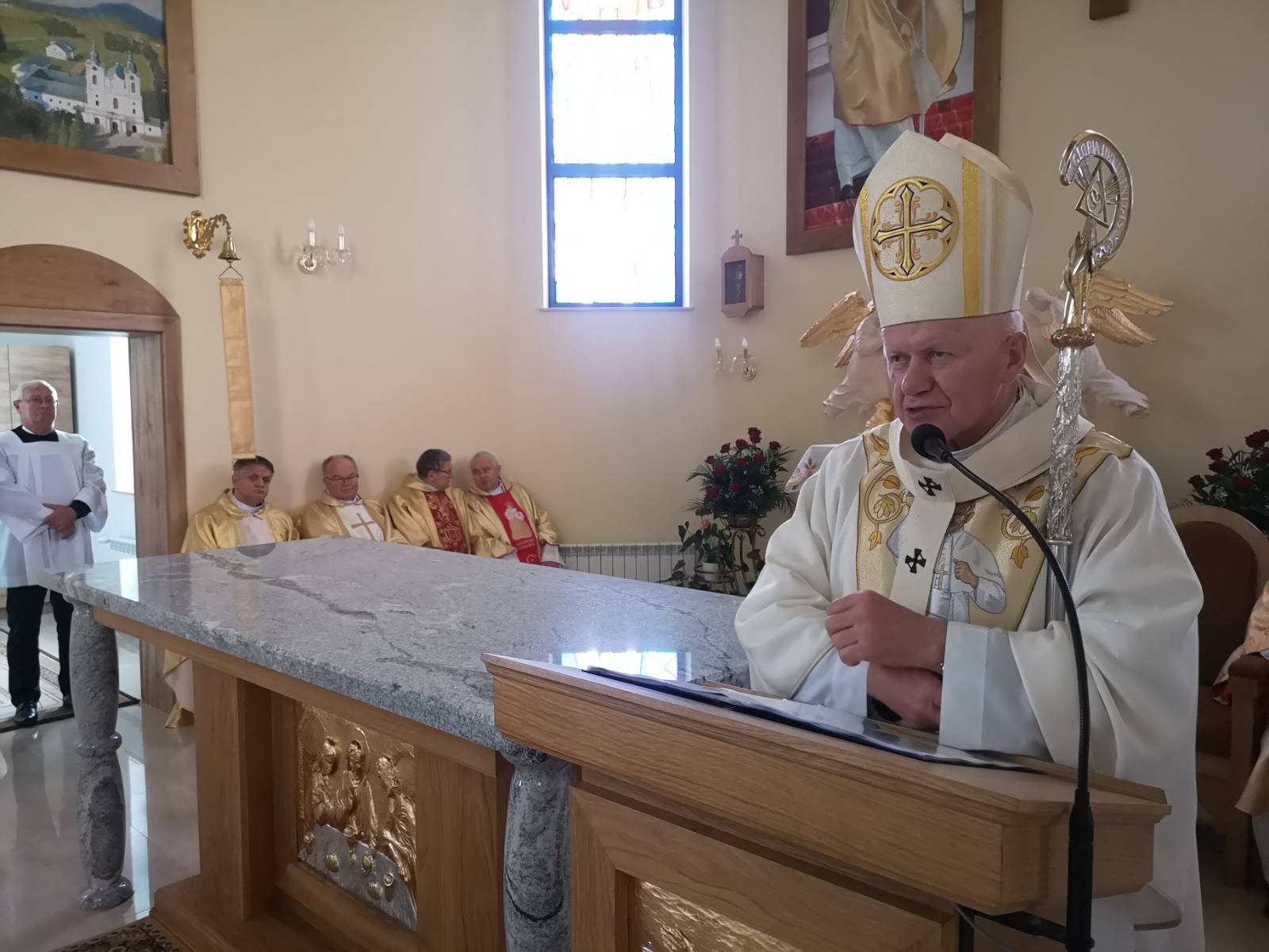 Metropolita przemyski zaznaczył, że świątynia jest Domem Boga, który „chce nas pokrzepić przez Słowo Boże, przez sakramenty święte”. – Także przez stworzenie tej przestrzeni, do której przychodzimy, w którą wchodzimy, modląc się, odmawiając różaniec, odmawiając koronkę do Bożego Miłosierdzia – powiedział hierarcha i cytował znanego polskiego kaznodzieję, ks. Piotra Skargę: „ci, którzy Panu Bogu kościoły widome budują, pierwej kościół serdeczny w sobie zbudowali”. – Ktoś to zbudował kościół ten zewnętrzny, materialny, powinien budować kościół w swoim sercu. Mamy budować tę świątynię właśnie w naszych duszach, w naszych sercach, po to, aby tam zamieszkał Pan – dodał.