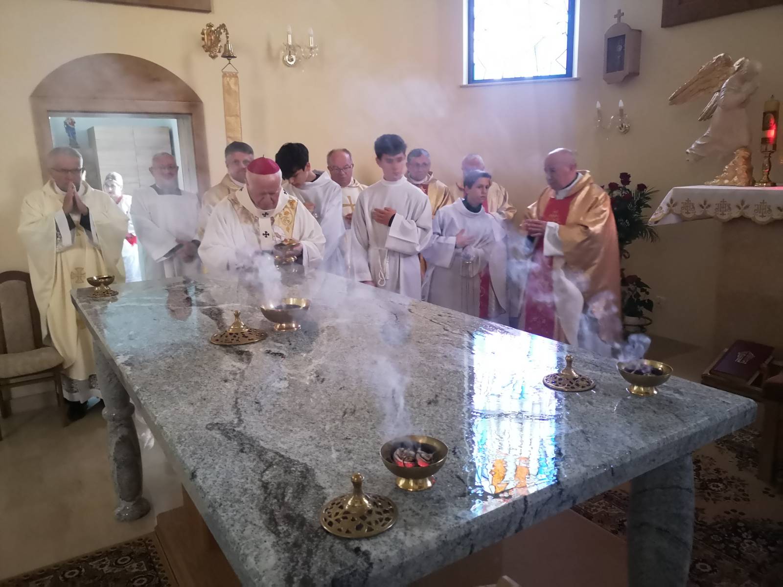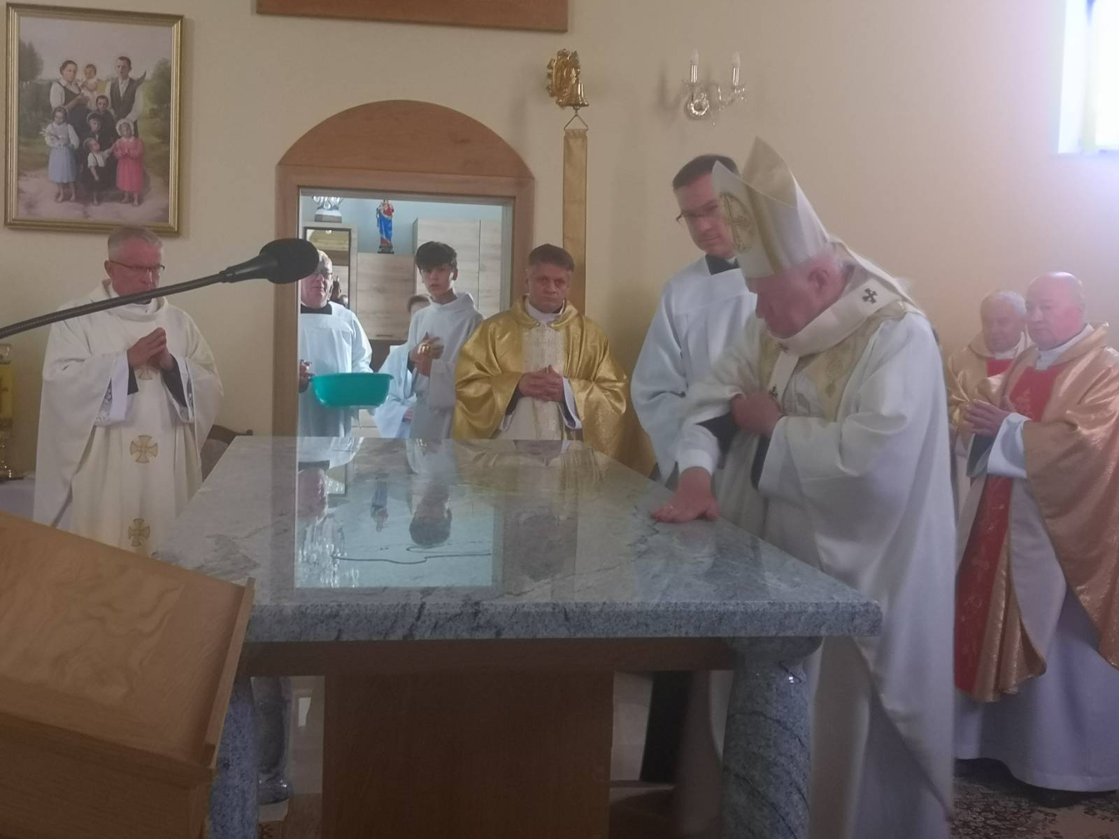 Metropolita przemyski zaznaczył, że nie wystarczy wybudować świątyni materialnej, ale należy ją przekazać Bogu poprzez akt konsekracji, namaszczając ołtarz i ściany olejem Krzyżma świętego. Arcybiskup przypomniał, że obrzęd konsekracji „ma ukazać świątynię jako dom zbawienia i łaski, miejsce oddawania czci Bogu oraz wzrastania w miłości, wierze i nadziei”. – My też zostaliśmy namaszczeni Krzyżmem świętym w czasie chrztu świętego, a większość spośród nas otrzymując sakrament bierzmowania również została namaszczona Krzyżmem świętym. Ten obrzęd jest włączeniem nas na nowo do Kościoła, który do wiecznego miasta Jeruzalem – powiedział abp Szal.