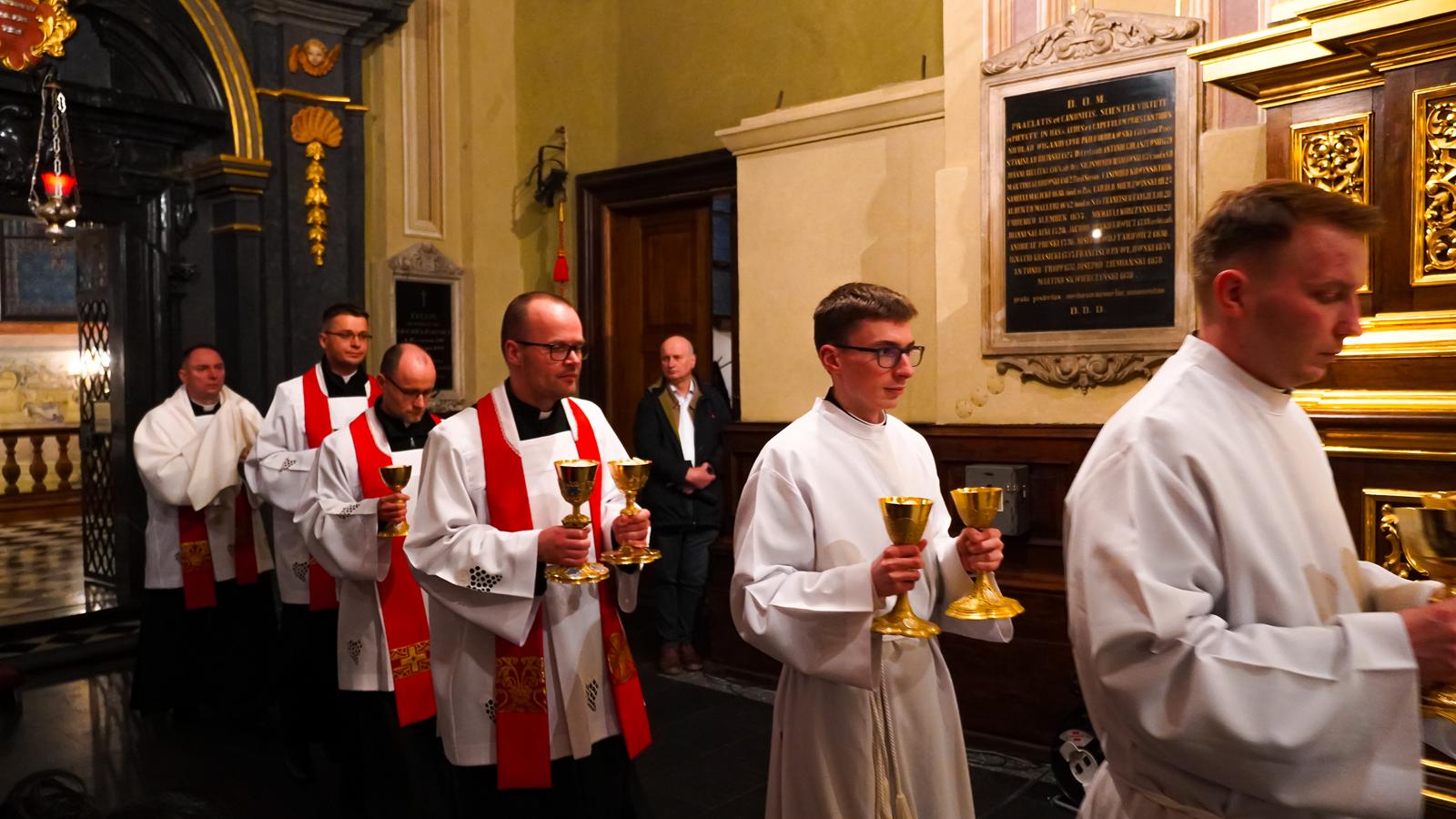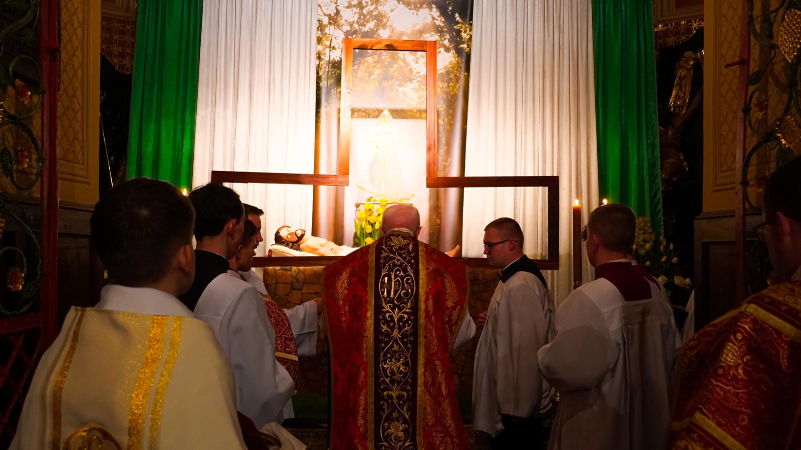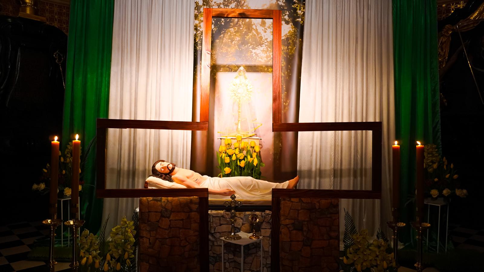 Ostatnią częścią liturgii Wielkiego Piątku była procesja do Grobu Pańskiego. Na ołtarzu umieszczonym przy Grobie lub na specjalnym tronie wystawiono Najświętszy Sakrament w monstrancji okrytej białym przejrzystym welonem – symbolem całunu, w który owinięto ciało zmarłego Chrystusa.