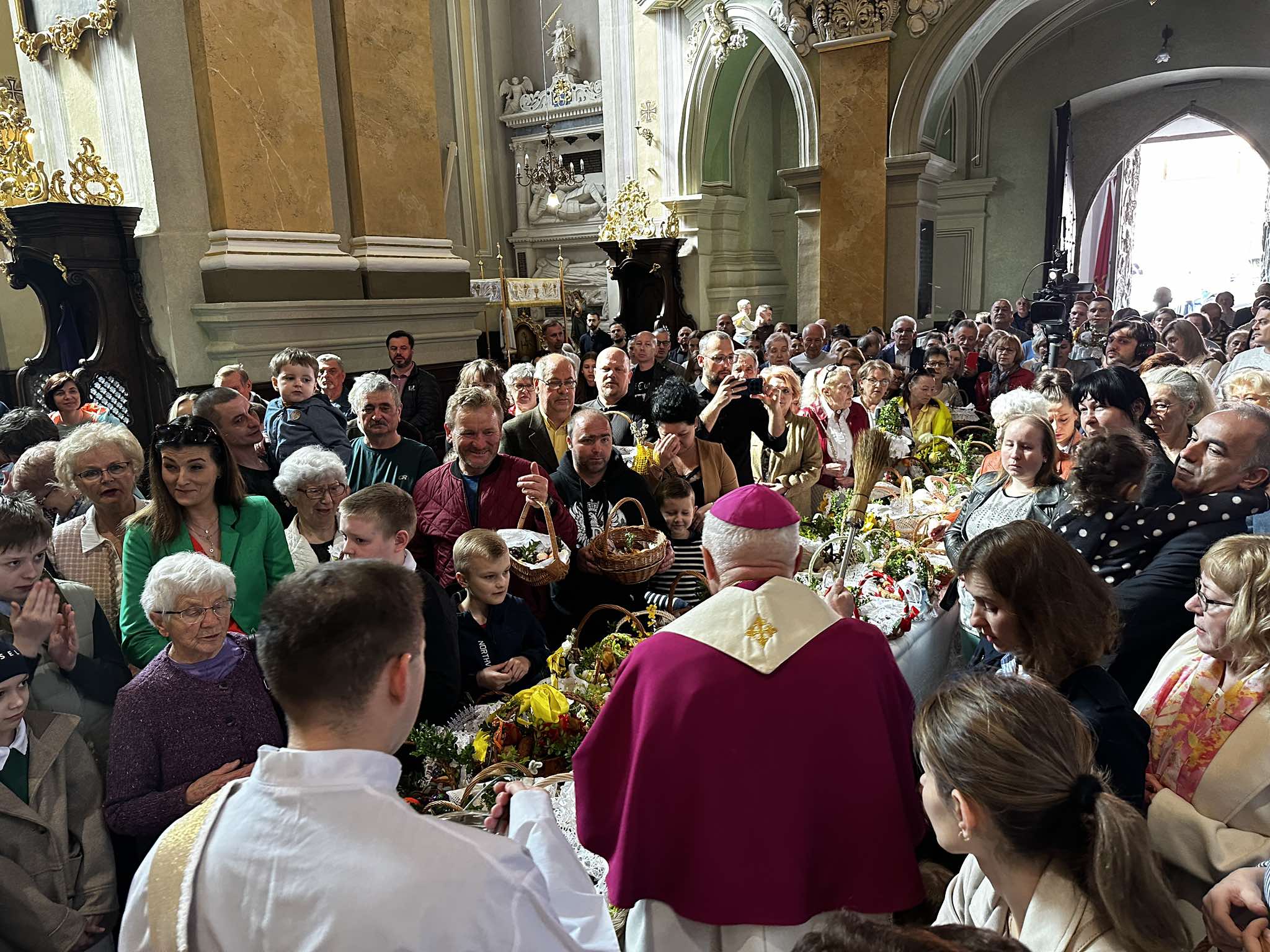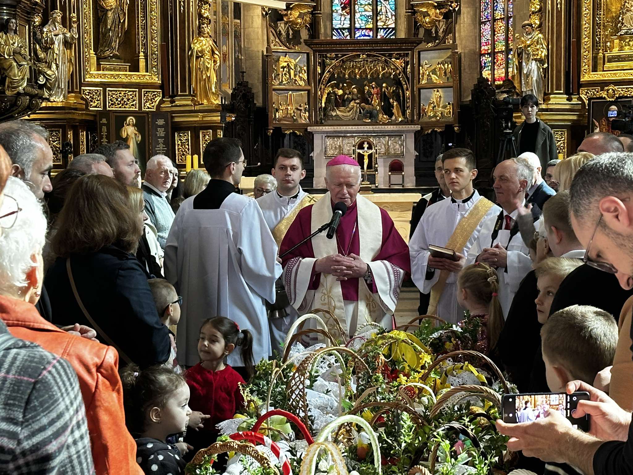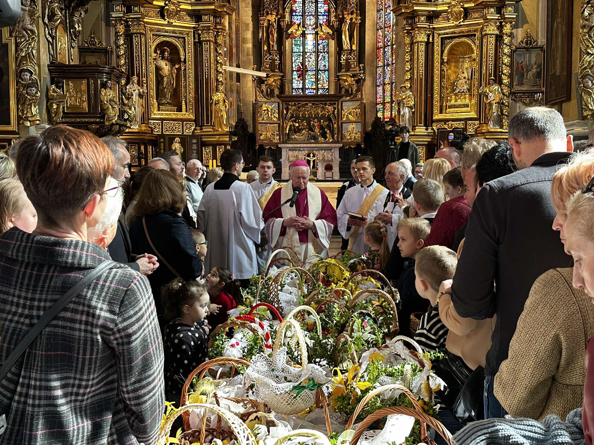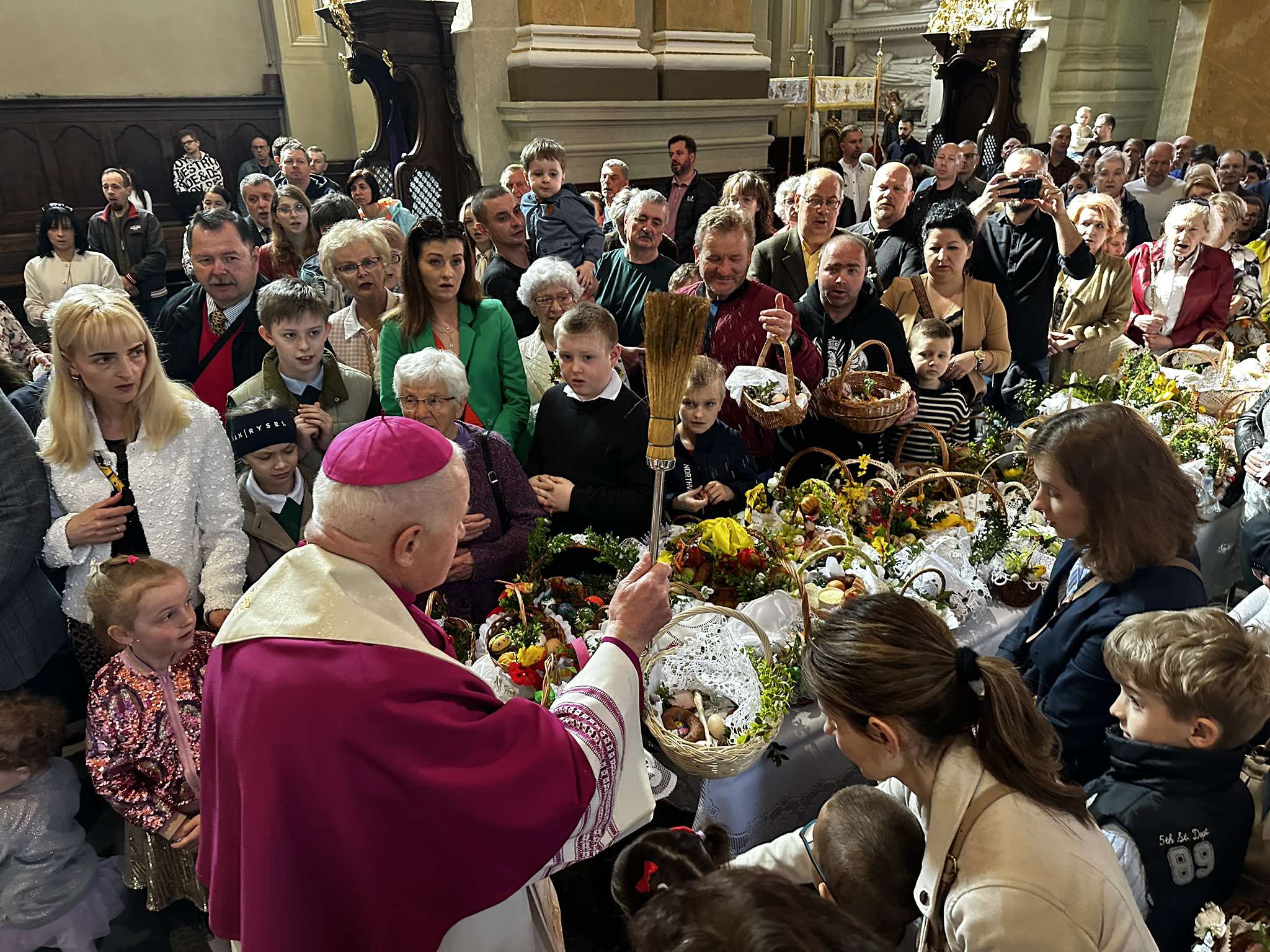 Po modlitwie i pokropieniu pokarmów abp Adam Szal złożył wiernym świąteczne życzenia. –Życzę, aby te święta były takim pielgrzymowaniem. I do świątyni na Eucharystię, na to wspólne świętowanie w ramach swojej parafii, ale też życzę, aby było w nas dużo takiego zamiłowania do pielgrzymowania do swojej rodziny, do tej z którą żyjemy na co dzień. Żebyśmy mieli czas dla dzieci. Żebyśmy także mieli czas do odwiedzenia swoich rodziców, starszych lub młodszych. Żebyśmy mieli czas i siłę do odwiedzenia starych i chorych, którzy są osamotnieni. Do odwiedzenia naszych sąsiadów. Nawet przez telefon, przez życzenia wysłane pocztą elektroniczną – zachęcał abp Szal. – Tego życzę, aby te święta były pełne pokoju i radości, bo te dary przyniósł Pan Jezus Zmartwychwstały – dodał.