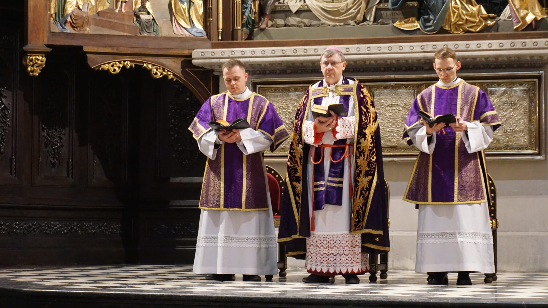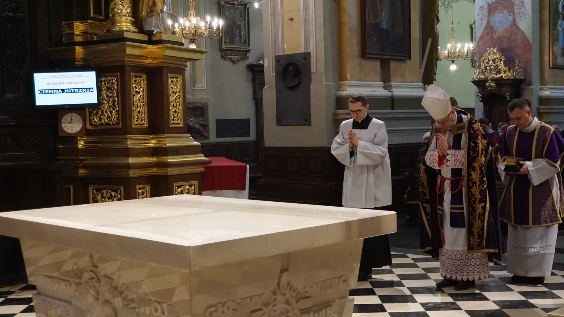 Wielka Sobota to czas ciszy i adoracji Chrystusa w Grobie. O poranku, 4 kwietnia 2026 r., Ciemnej Jutrzni w Bazylice Archikatedralnej w Przemyślu przewodniczył bp Krzysztof Chudzio. W modlitwie uczestniczył abp Adam Szal, bp Stanisław Jamrozek, członkowie Przemyskiej Kapituły Metropolitalnej, Księża Przełożeni i Profesorowie Wyższego Seminarium Duchownego w Przemyślu, siostry zakonne, świeccy oraz członkowie Ruchu Światło-Życie Archidiecezji Przemyskiej, którzy przeżywają w czasie Triduum Paschalnego swoje rekolekcje zamknięte w Collegium Marianum.