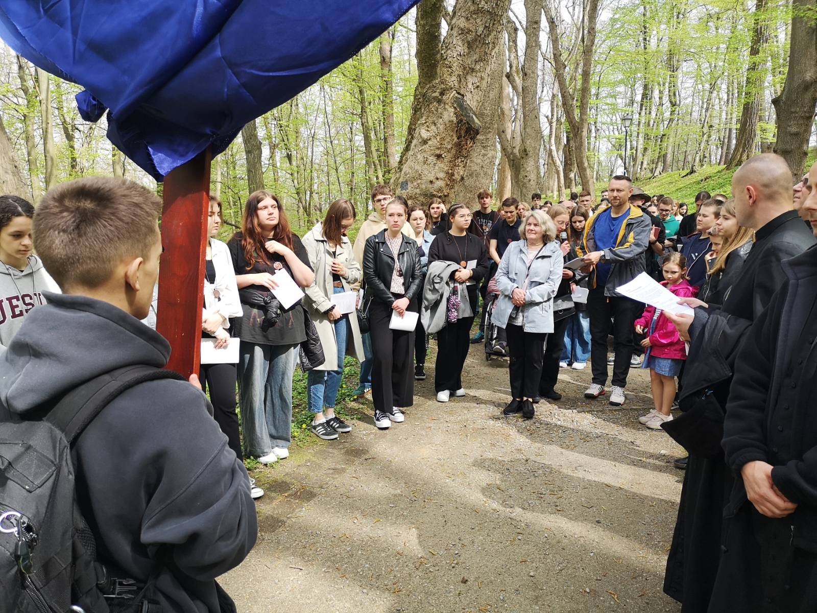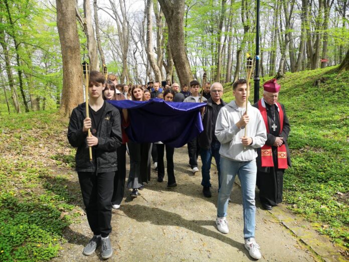 W nabożeństwie pasyjnym wzięli udział uczestnicy Triduum Paschalnego w formie rekolekcji, które odbywają się w Centrum Formacji Ruchu Światło-Życie Archidiecezji Przemyskiej Collegium Marianum.