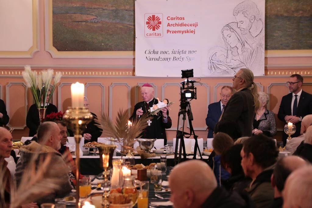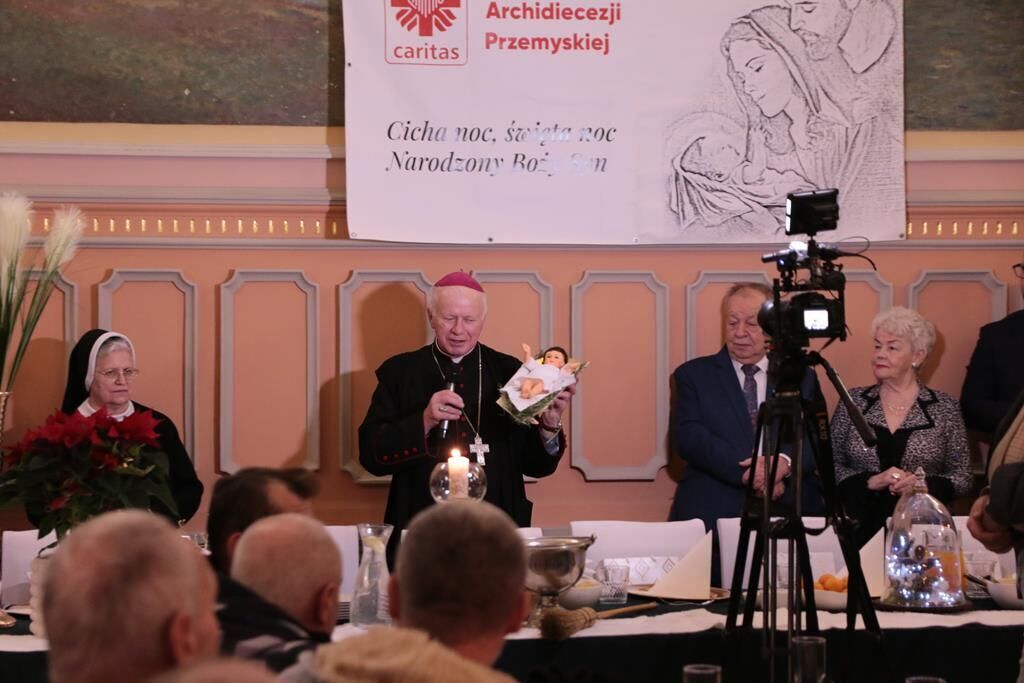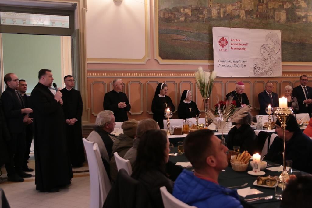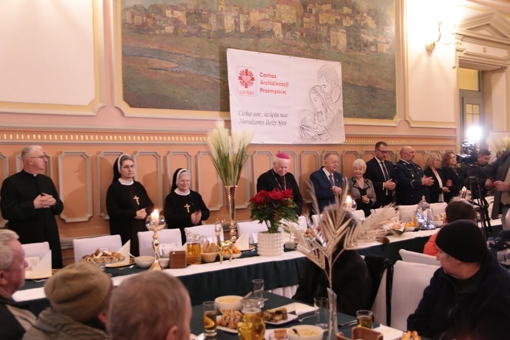 Tradycyjnie 23 grudnia, przemyska Caritas po raz kolejny zorganizowała wigilijną kolację dla ludzi ubogich, bezdomnych i samotnych. Spotkanie zostało przygotowane w restauracji „Perła” mieszczącej się na Dworcu PKP w Przemyślu. Spotkanie rozpoczęło słowo powitania Dyrektora Caritas – ks. prał. Artura Jańca, który wszystkim obecnym złożył świąteczne życzenia. Następnie Abp Adam Szal pozdrowił zgromadzonych, przewodniczył modlitwie, pobłogosławił opłatki oraz przygotowane posiłki. Tradycyjnie też zebrani podzieli się opłatkiem i złożyli sobie świąteczne życzenia.