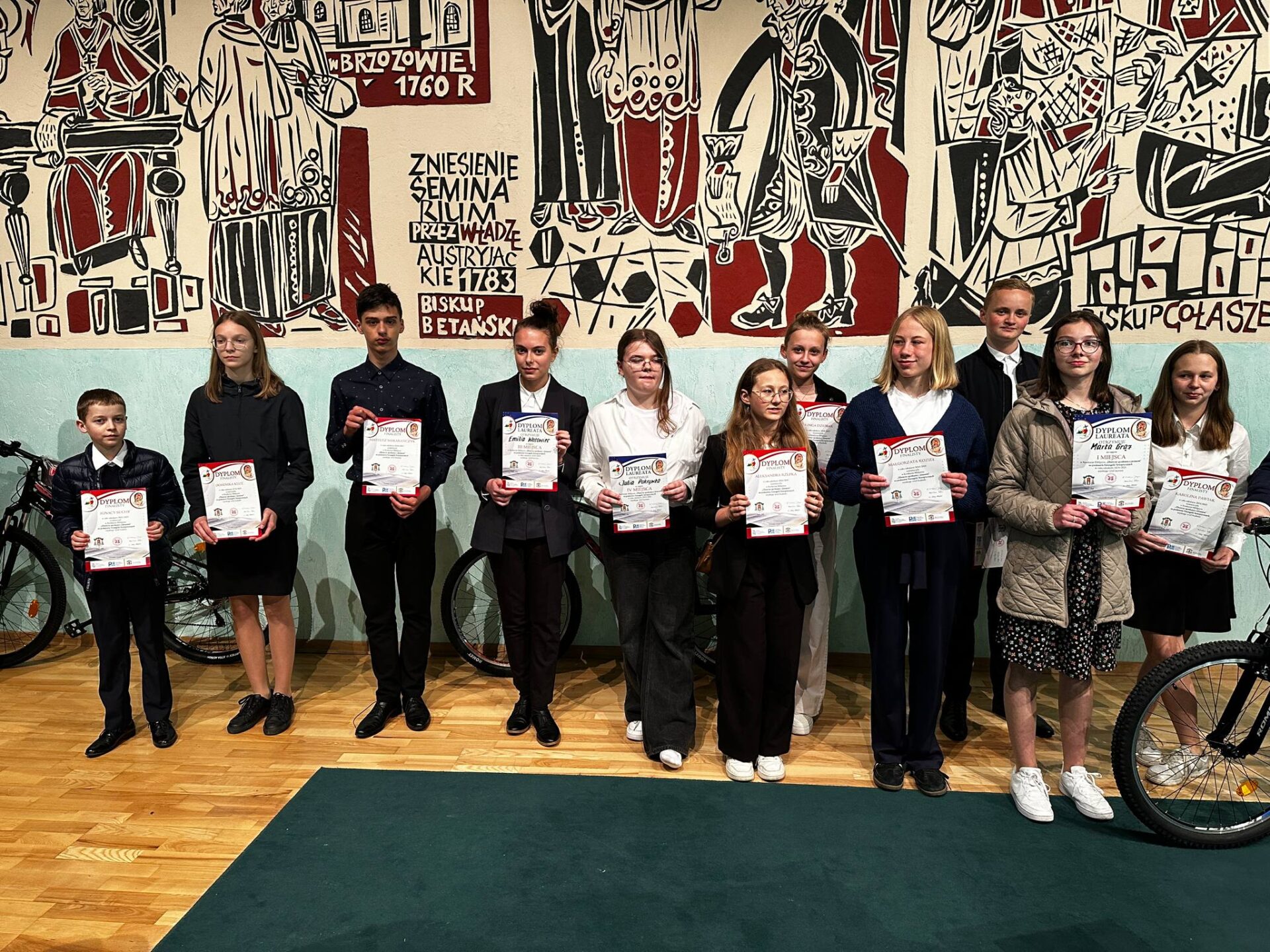 Marta GRĄZ – laureatka I miejsca – uczennica klasy siódmej Zespołu Szkół im. Eugeniusza Kujana w Wierzawicach, katecheta: ks. Mariusz Niemiec, Marta zdobyła 63 punkty na możliwe do zdobycia w finale: 64 punkty