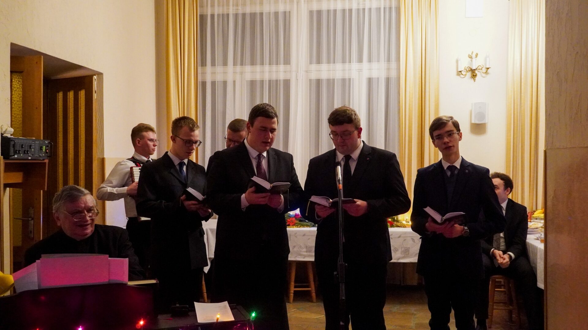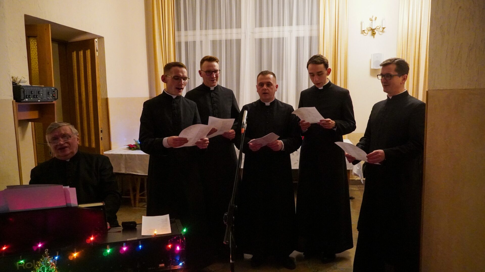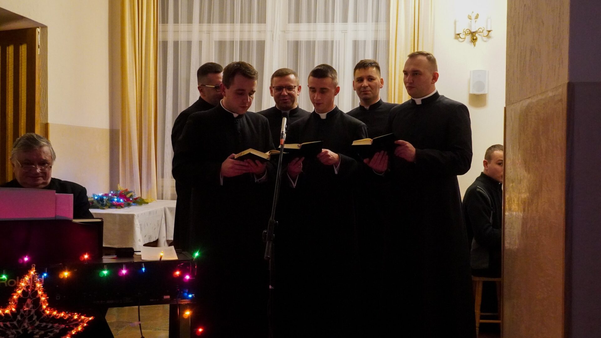 Na zakończenie, alumni pragnąc podtrzymać radosną atmosferę świąt, udali się z kolędą do księży przełożonych i profesorów, by także z nimi dzielić się radością z Narodzenia Pańskiego.