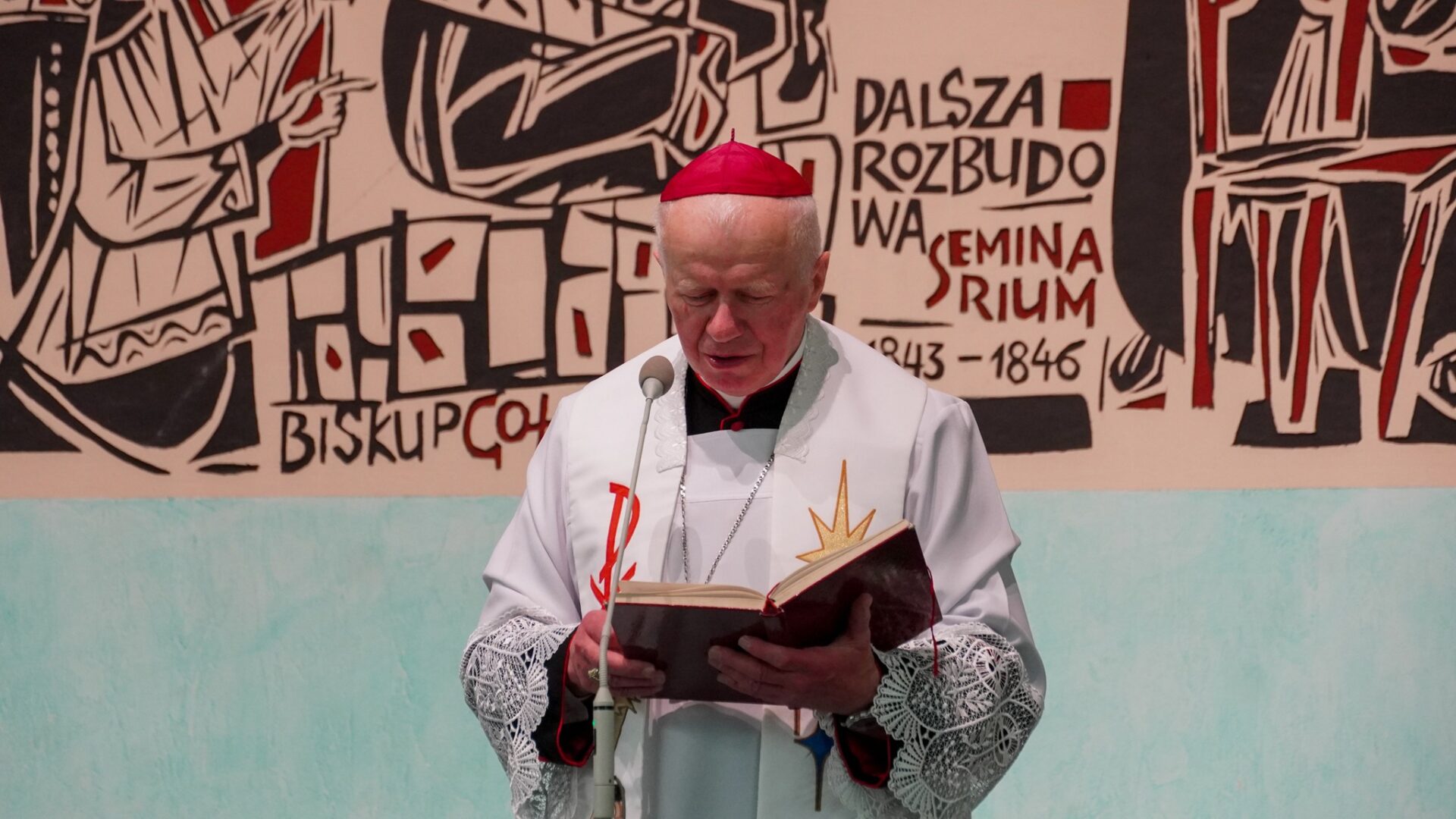 Spotkanie świąteczne rozpoczęły jasełka, które tradycyjnie przygotowują alumni kursu VI. Następnie metropolita przemyski odsłonił na ścianie auli Instytutu Teologicznego w Przemyślu wizerunek, który w symboliczny sposób ukazuje niektóre wydarzenia z życia diecezji przemyskiej – posługę abp. Józefa Michalika i abp. Adama Szala oraz kanonizację św. Jana z Dukli i beatyfikację bł. Rodziny Ulmów z Markowej.