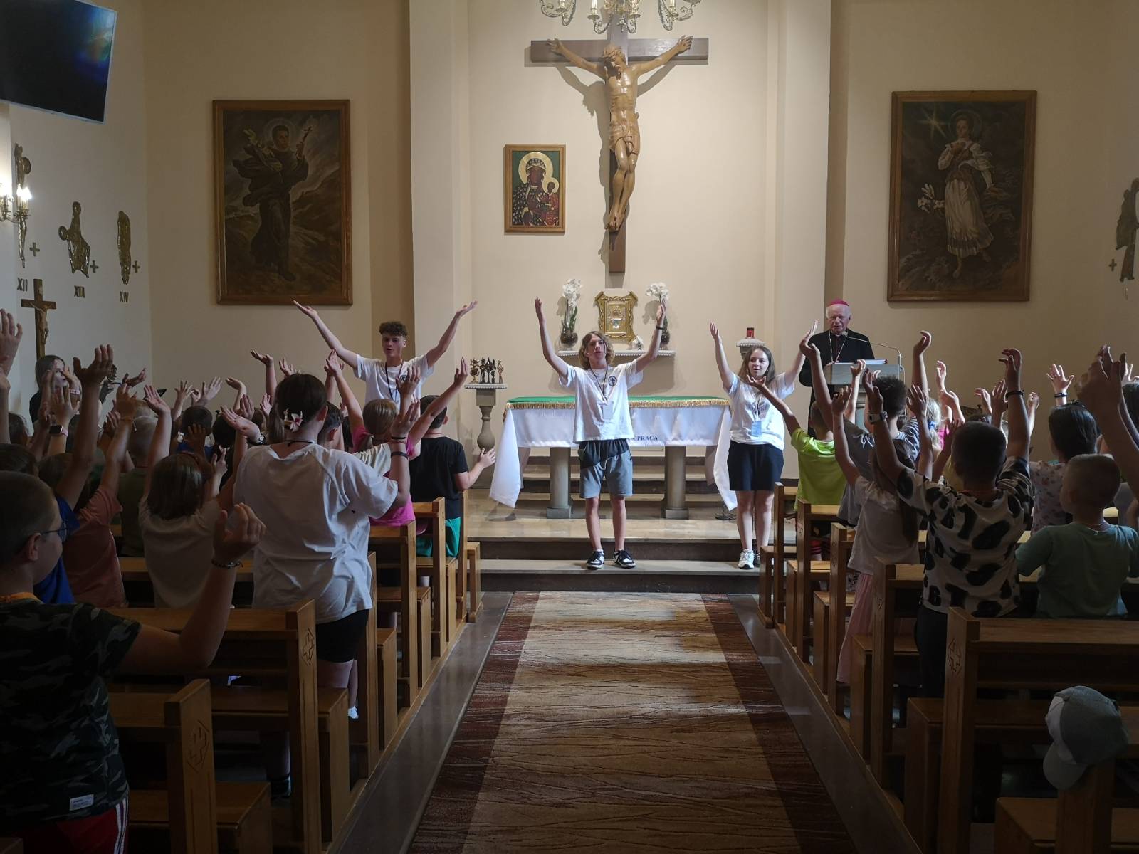 Arcybiskup życzył dzieciom, żeby były radosne, szczęśliwe i żeby pobyt na rekolekcjach zaowocował „rozpaleniem ducha apostolskiego”. Hierarcha też podziękował kapłanom, moderatorom świeckim i animatorom, że poświęcają swój czas na formowanie młodego pokolenia podczas rekolekcji wakacyjnych. – Życzę też wam, żebyście wrócili z taką siłą wewnętrzną do waszych domów i rodzin. Apostoł to ten, który się modli wieczór, czyta Słowo Boże, prasę katolicką, ogląda telewizję katolicką, czy także ogląda filmiki katolickie w sieci – dodał i wyraził dumę, że tyle chłopców i dziewczynek zechciało pozytywnie odpowiedzieć na propozycję wakacyjnych rekolekcji.