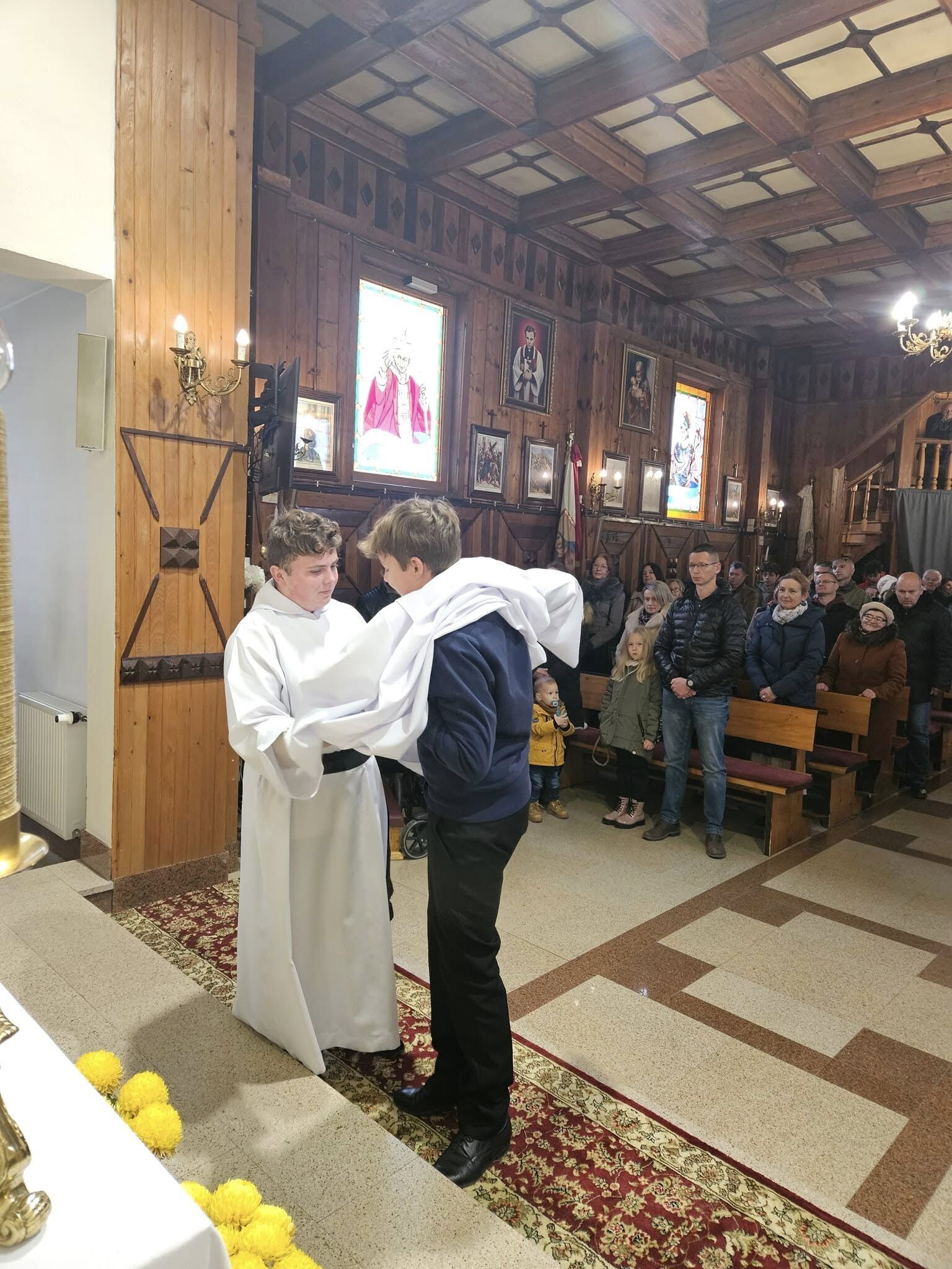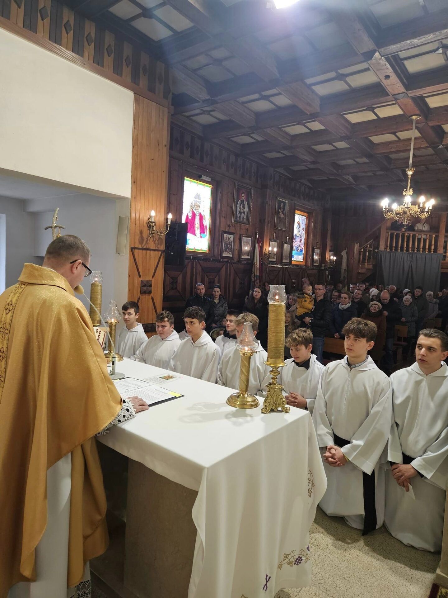 Chłopcy i dziewczynki zostali odpowiednio przygotowani do tej wzniosłej uroczystości. Na twarzach dzieci widać było poruszenie oraz emocje, że będą należeć do liturgicznej służby ołtarza oraz scholii. Mszy świętej przewodniczył ojciec proboszcz Karol Bucholc OMI. Wygłosił homilię: pt. „Głos Królestwa Bożego w naszej Wspólnocie”. W czasie przygotowania dzieci usłyszały opowiadanie o młodym kapłanie, który zwierzał się Sercu Bożemu. Po święceniach kapłańskich jego matka powiedziała mu tak: „Tylko pamiętaj synu, masz być pasterzem, a nie pastuchem. Bo pasterz wykonuje swoje zajęcia z miłością, a pastuch z obowiązku. Przy ołtarzu stajecie się pasterzami, którzy z miłością posługują dla Pana”.