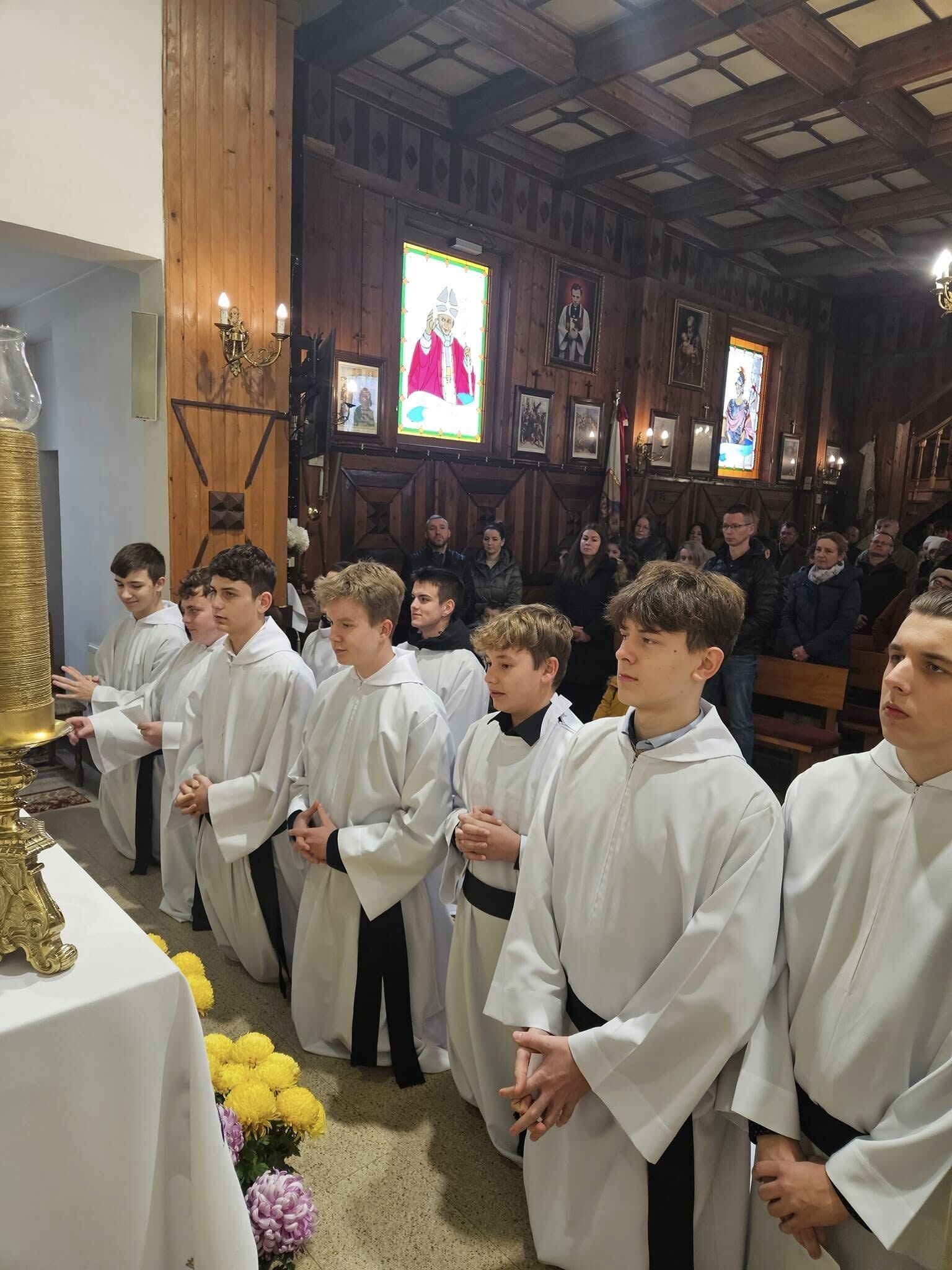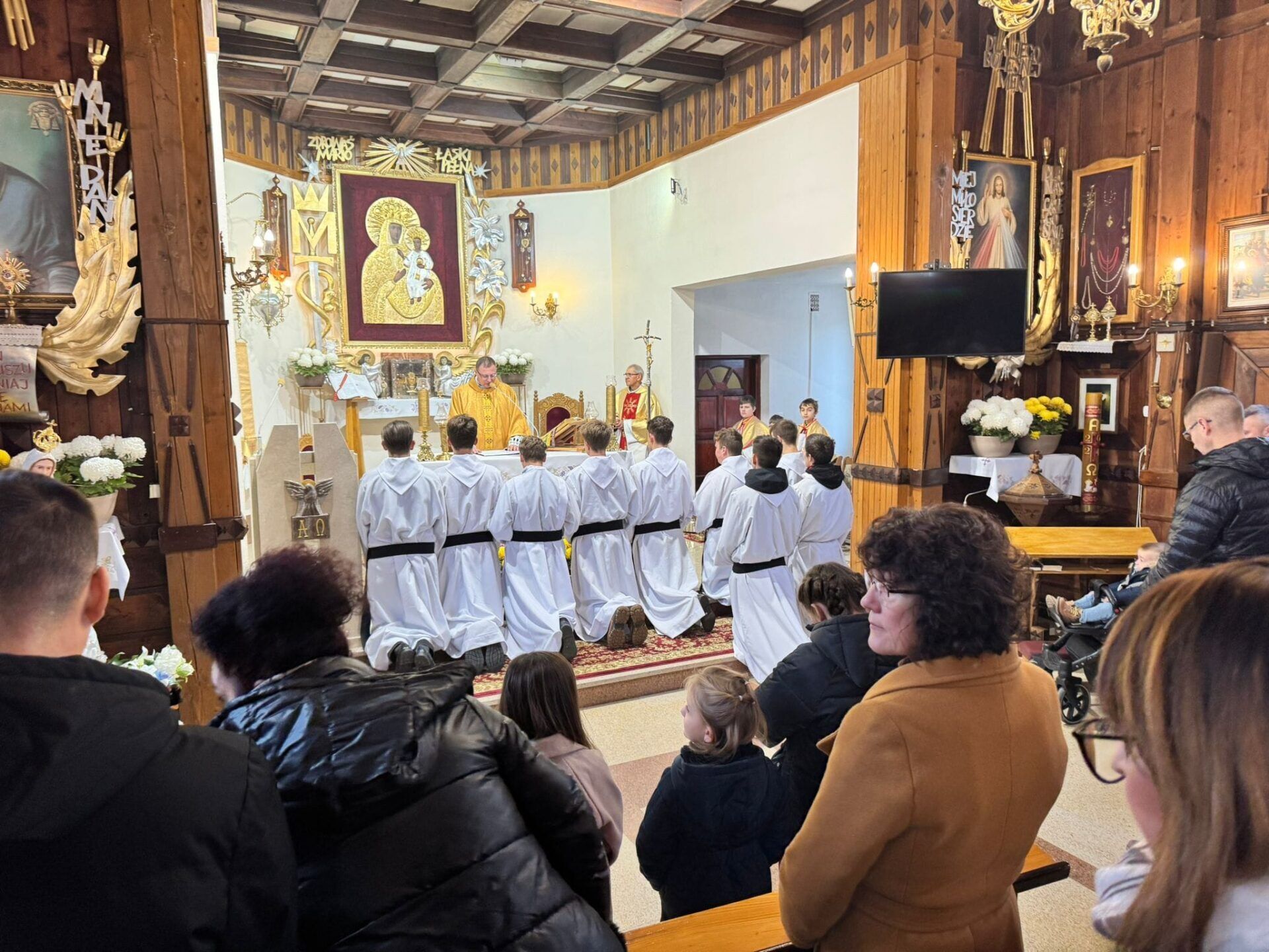 W niedzielę, 24 listopada 2024 r., w parafii pw. Matki Bożej Królowej Polski w Zahutyniu do grona ministrantów, lektorów oraz scholanek zostali przyjęci nowi członkowie.