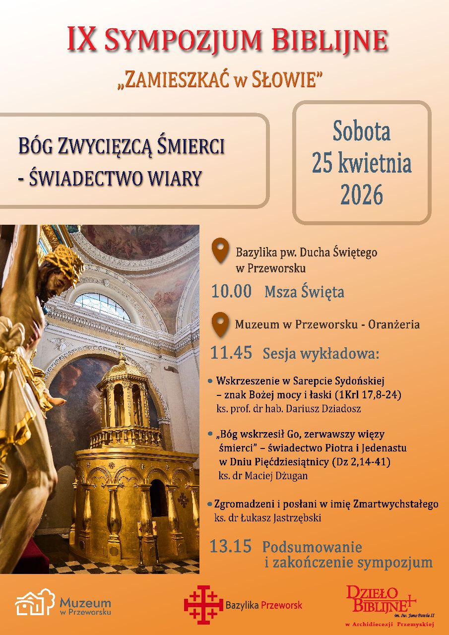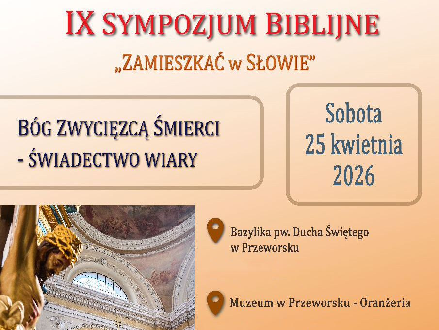Dzieło Biblijne im. św. Jana Pawła II, Przeworska Kapituła Kolegiacka i Muzeum w Przeworsku, serdecznie zapraszają na IX sympozjum biblijne „Zamieszkać w Słowie” . W tym roku poświęcone jest ono tematowi: Bóg Zwycięzcą Śmierci – świadectwo wiary.