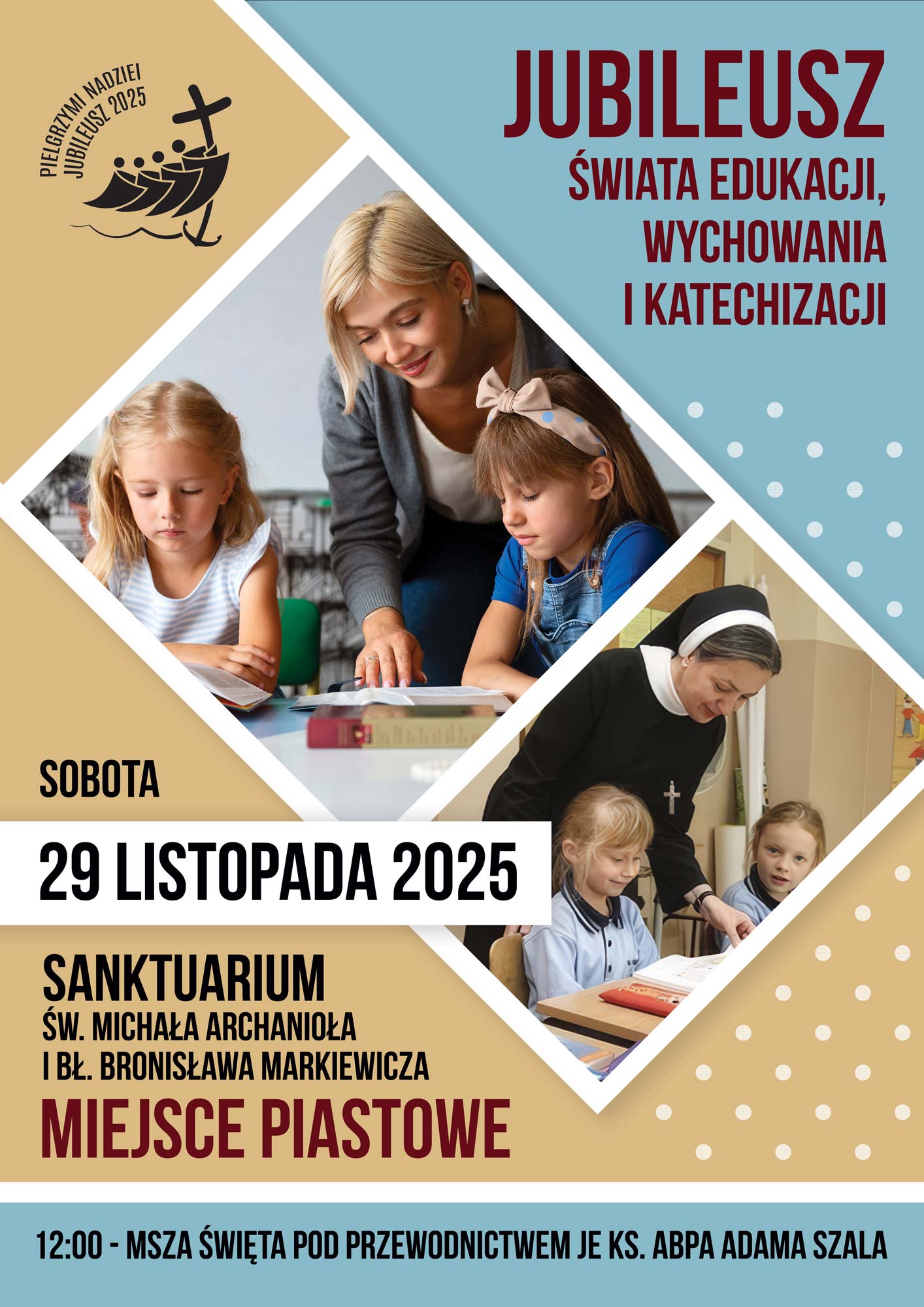 Wydział Nauki Katolickiej Kurii Metropolitalnej w Przemyślu serdecznie zaprasza wszystkich pracowników oświaty na Jubileusz Świata Edukacji, Wychowania i Katechizacji, który odbędzie się 29 listopada 2025 r., (sobota) w sanktuarium św. Michała Archanioła i bł. ks. Bronisława Markiewicza.