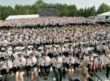 9.00 – ustawienie orkiestr, zestrojenie („Bobolówka”) rozśpiewka chórów i scholi (kościół)