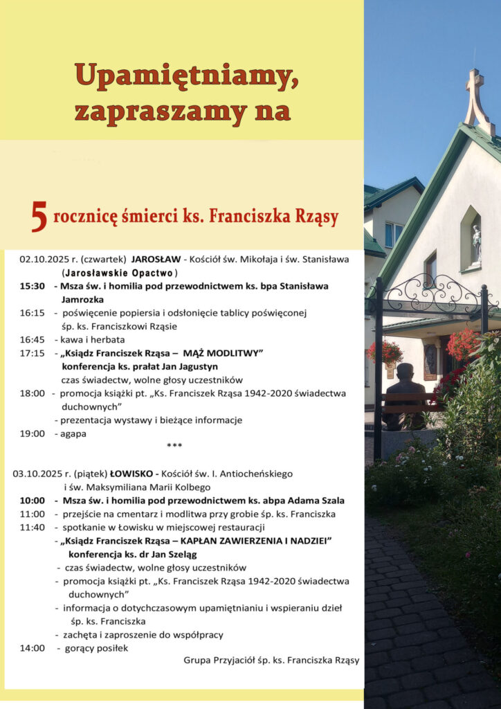 18:00 – promocja książki pt. „Ks. Franciszek Rząsa 1942-2020 świadectwa duchownych” – prezentacja wystawy i bieżące informacje