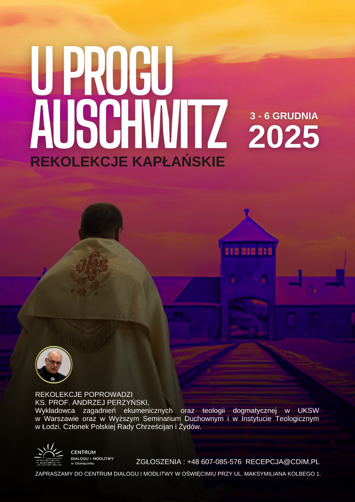 Centrum Dialogu i Modlitwy w Oświęcimiu zaprasza na “Rekolekcje kapłańskie u progu Auschwitz”, które odbędą się w dniach 3-6 grudnia 2025 r., w Oświęcimiu przy ul. Maksymiliana Kolbego 1.