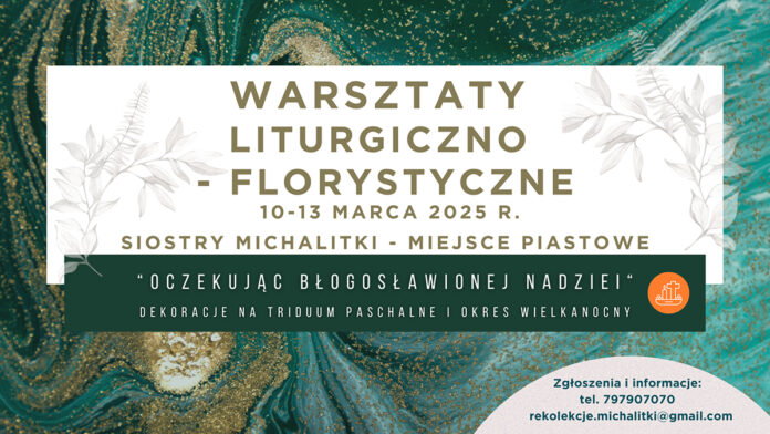 Siostry Michalitki zapraszają na Warsztaty Liturgiczno-Florystyczne, które odbędą się w dniach 10-13 marca 2025 r., w Domu Rekolekcyjnym Sióstr Michalitek w Miejscu Piastowym. Tym razem towarzyszy im hasło: „”Oczekując Błogosławionej Nadziei” dekoracja na Triduum Paschalne i okres wielkanocny”.